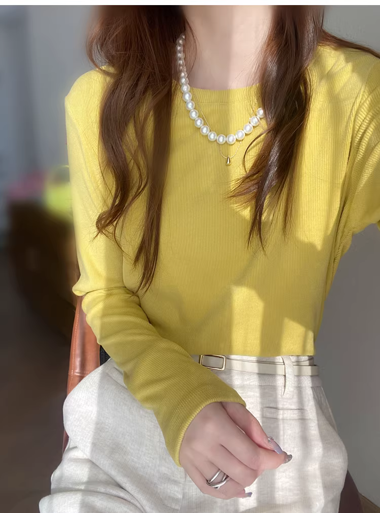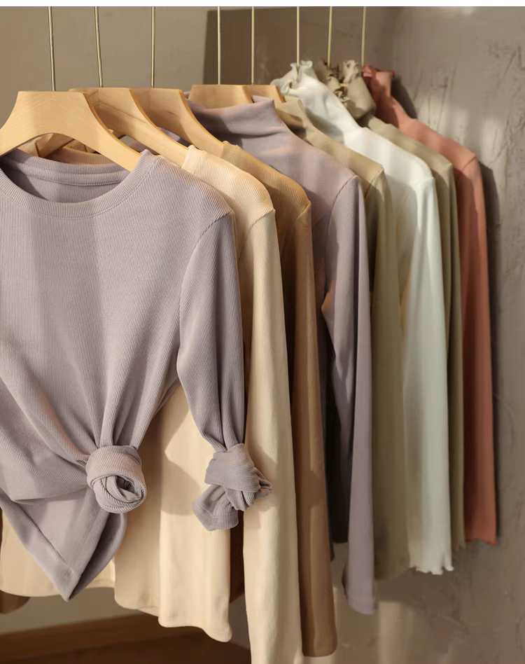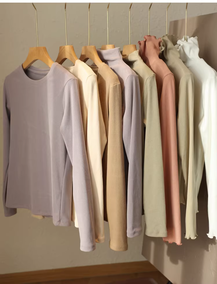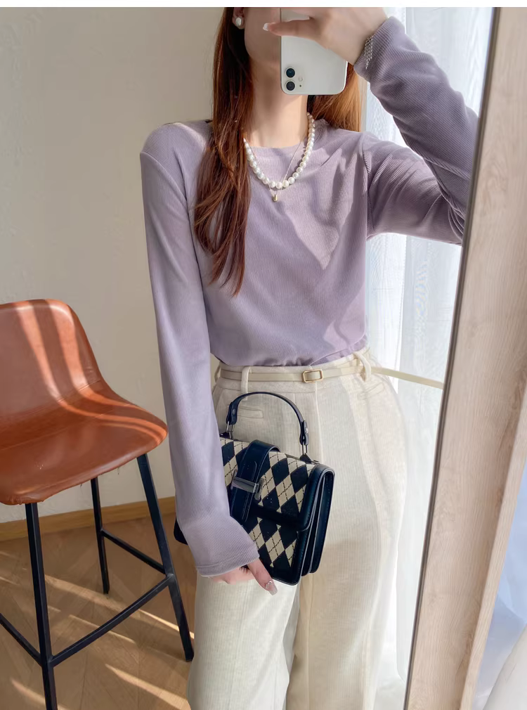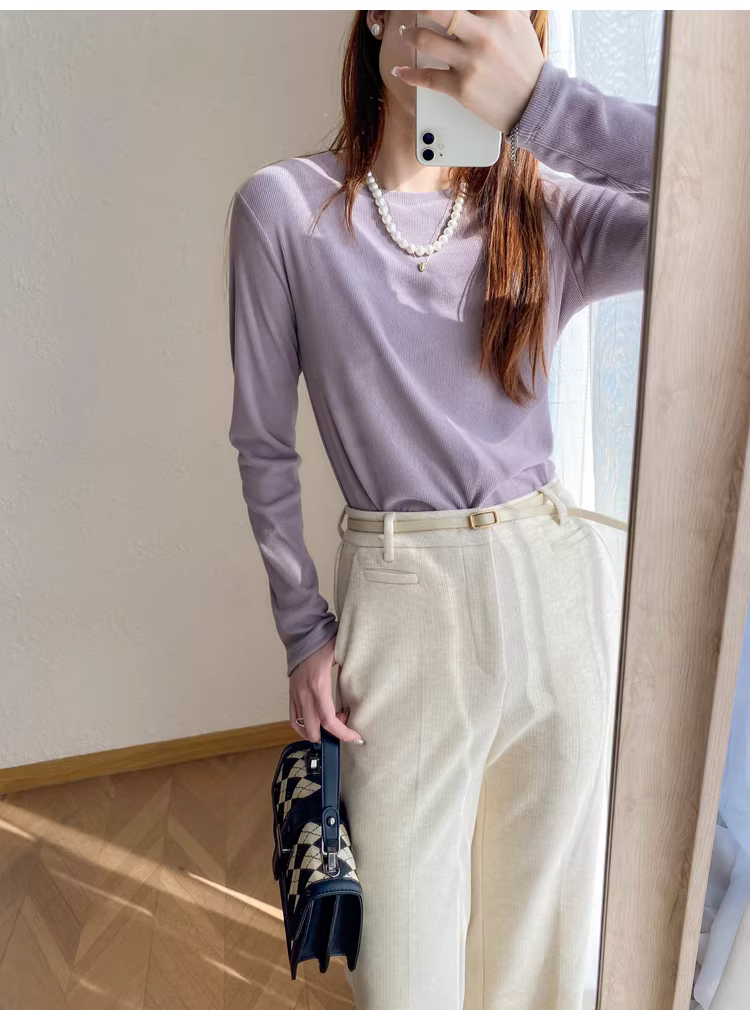 - 【2 chiếc với giá 99】Áo thun dài tay có lớp lót lông cừu giữ nhiệt bằng protein lụa công nghệ cao dành cho nữ, mùa thu đông