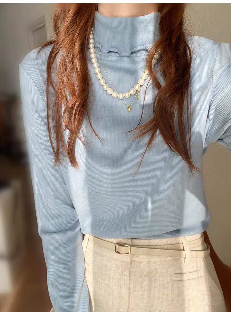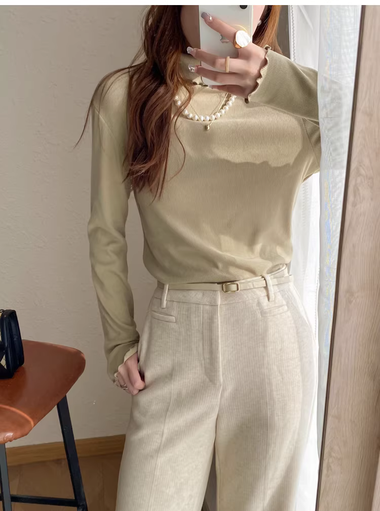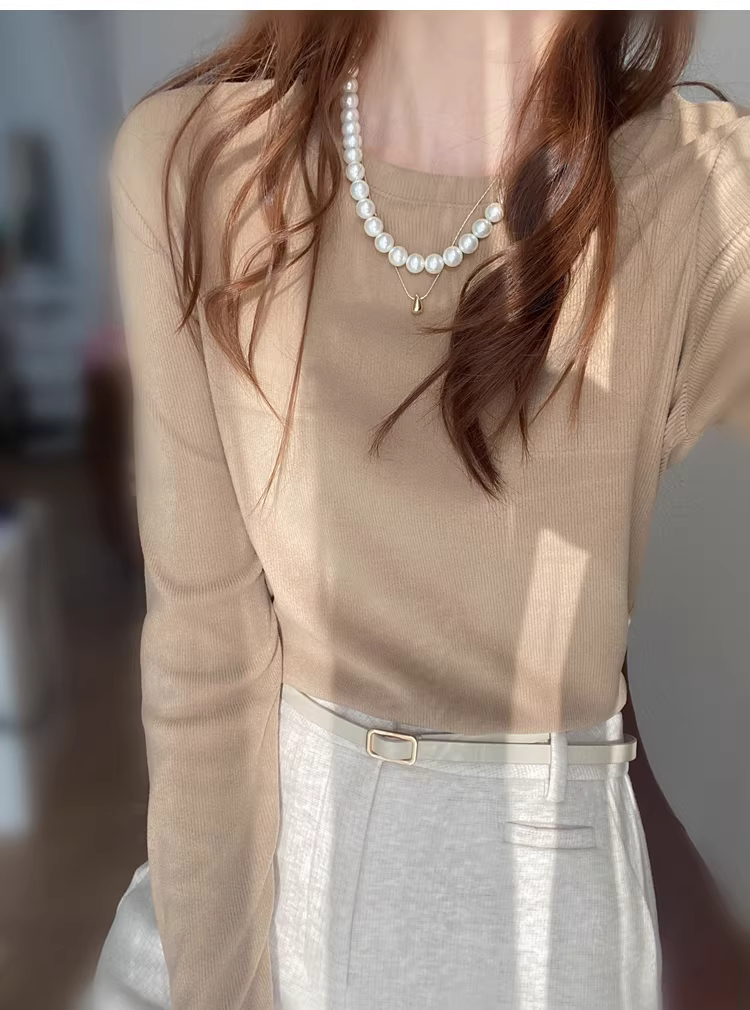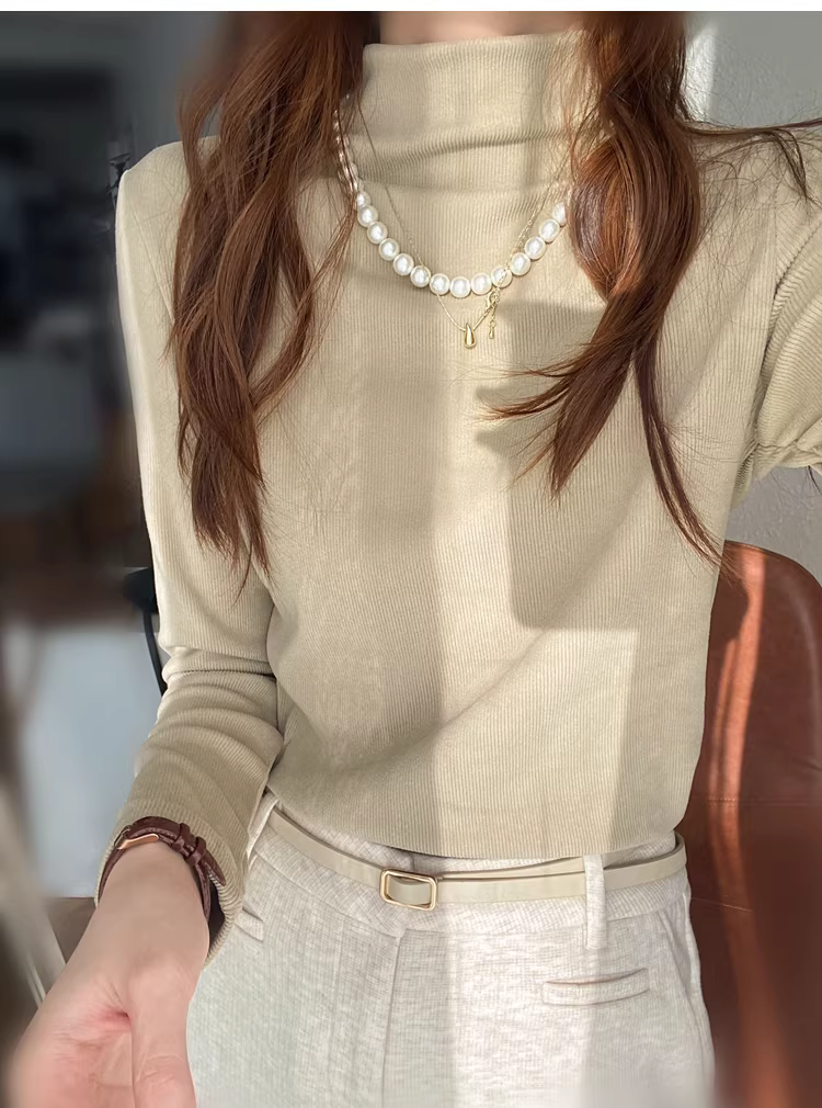 - 【2 chiếc với giá 99】Áo thun dài tay có lớp lót lông cừu giữ nhiệt bằng protein lụa công nghệ cao dành cho nữ, mùa thu đông