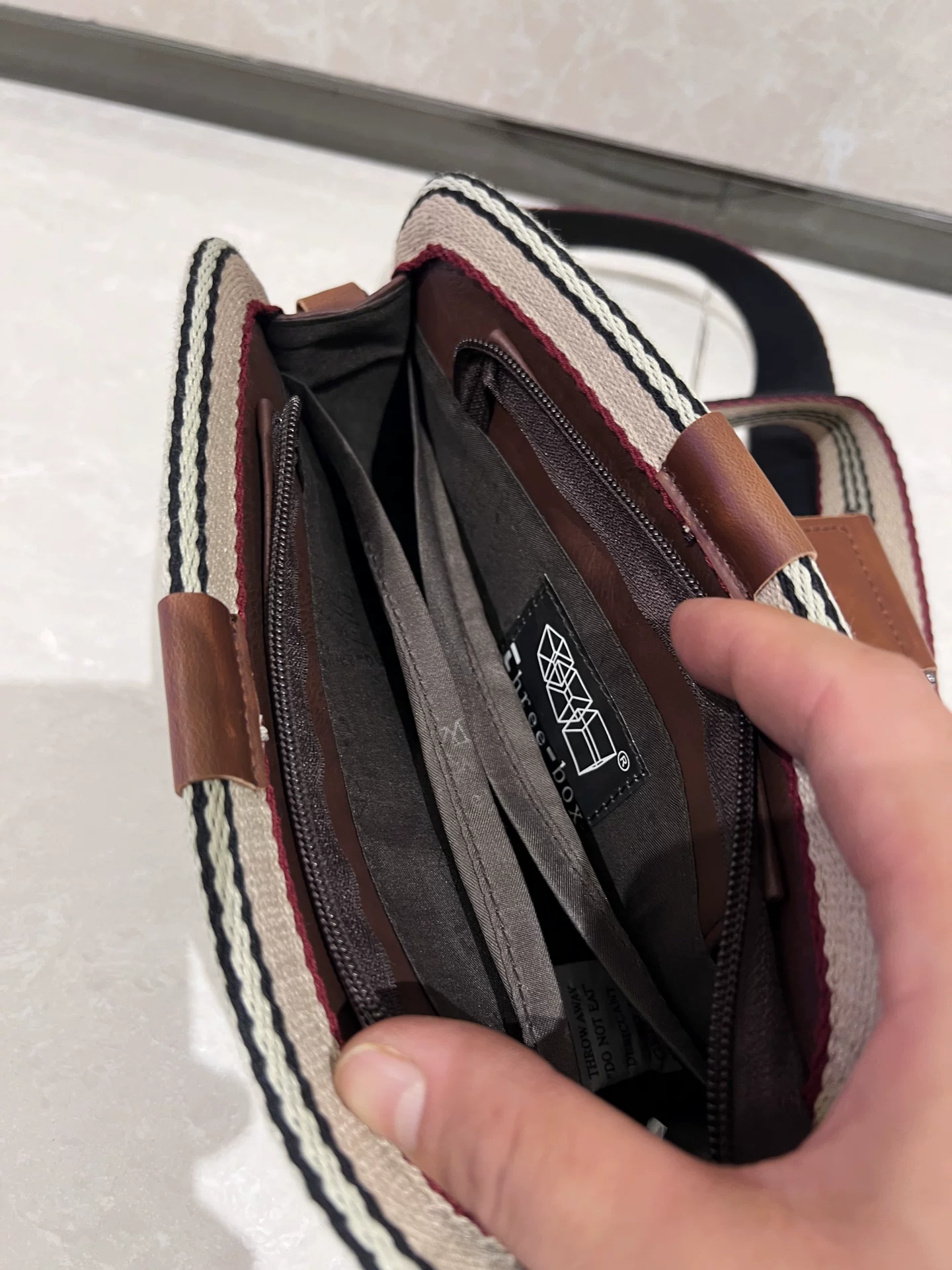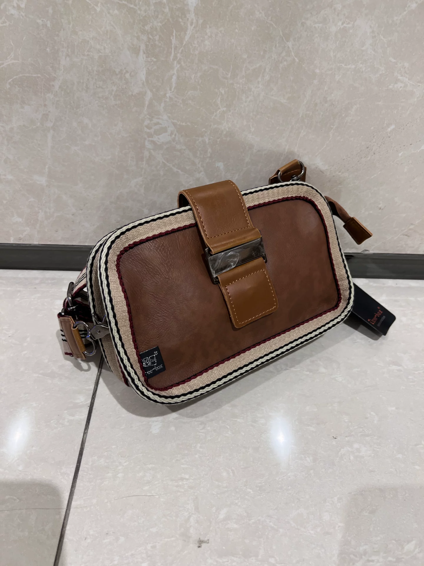 - 2026 mới hợp thời trang thương hiệu túi đeo chéo nam ngoài trời túi đeo vai sọc cổ điển khóa túi Boston túi đựng điện thoại nữ