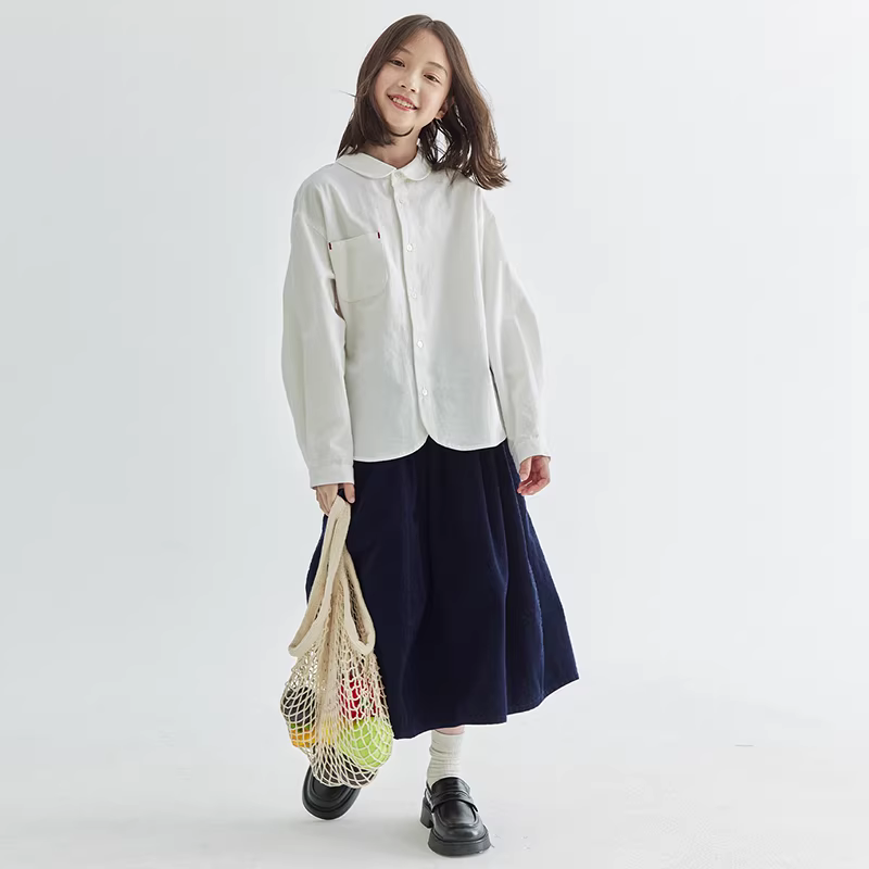 - 25 bộ trang phục mùa xuân mới cho bố mẹ và con, áo kiểu Peter Pan màu trơn, áo trẻ em dễ thương và thanh lịch, áo sơ mi thường ngày cho trẻ lớn
