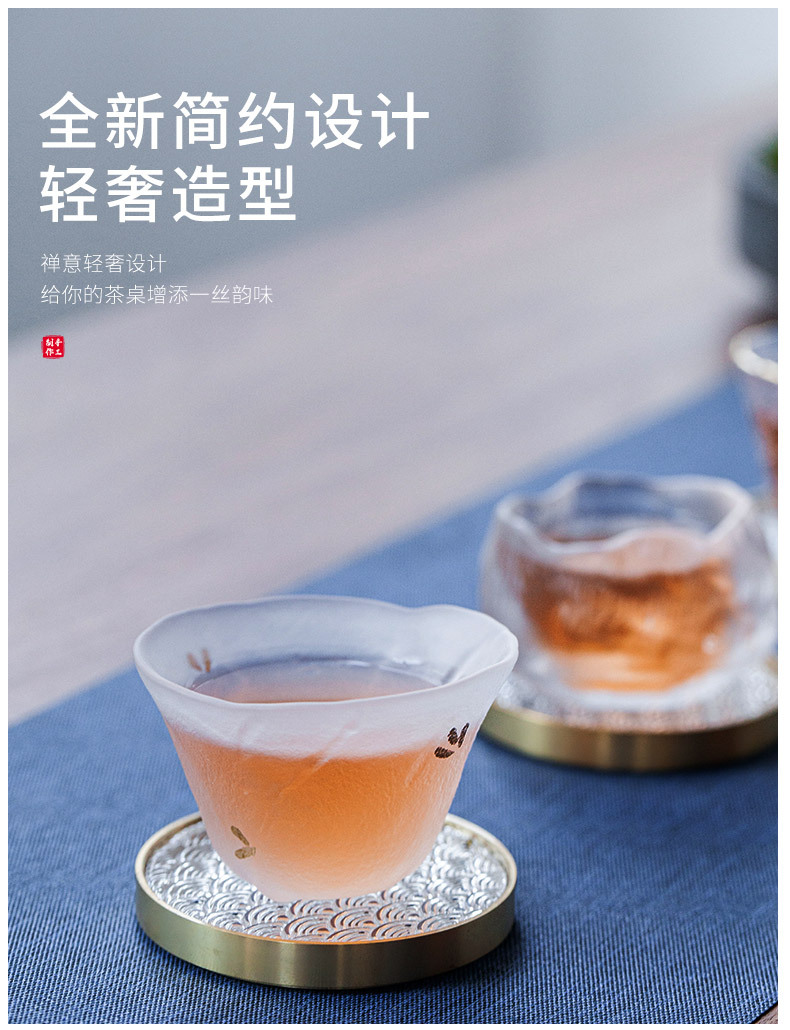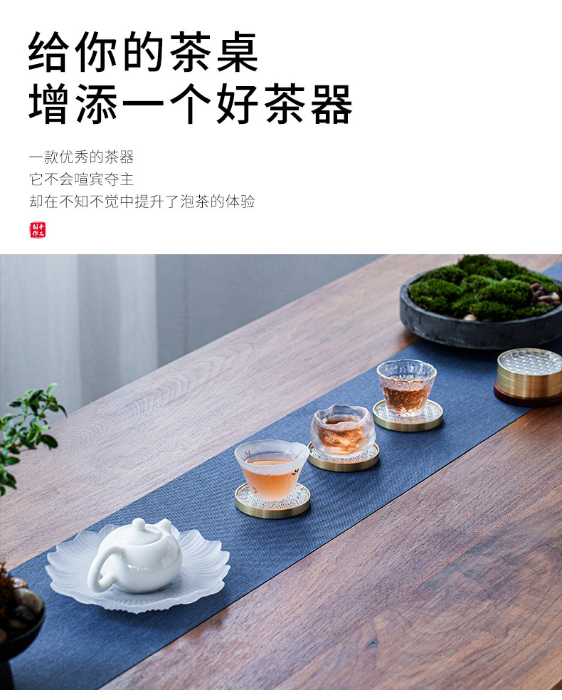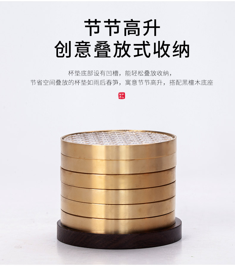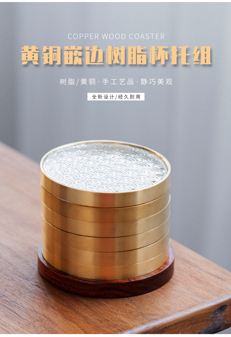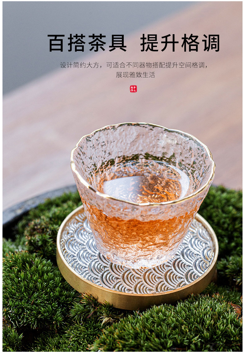 6 bộ đế lót ly gỗ Đàn hương đen, lót ly trà thủy tinh dát đồng thau, lót cách nhiệt hình tròn, Phụ Kiện Bộ trà khay trà kiểu Trung Quốc