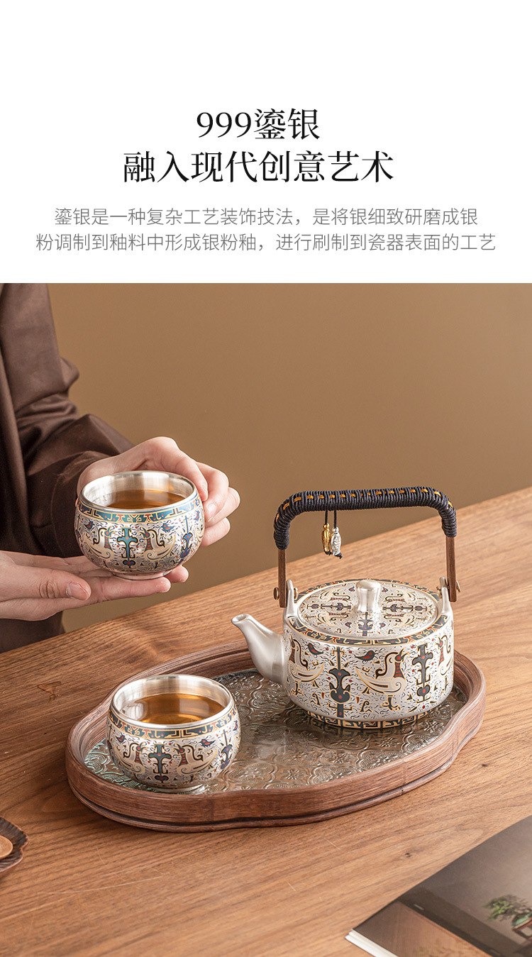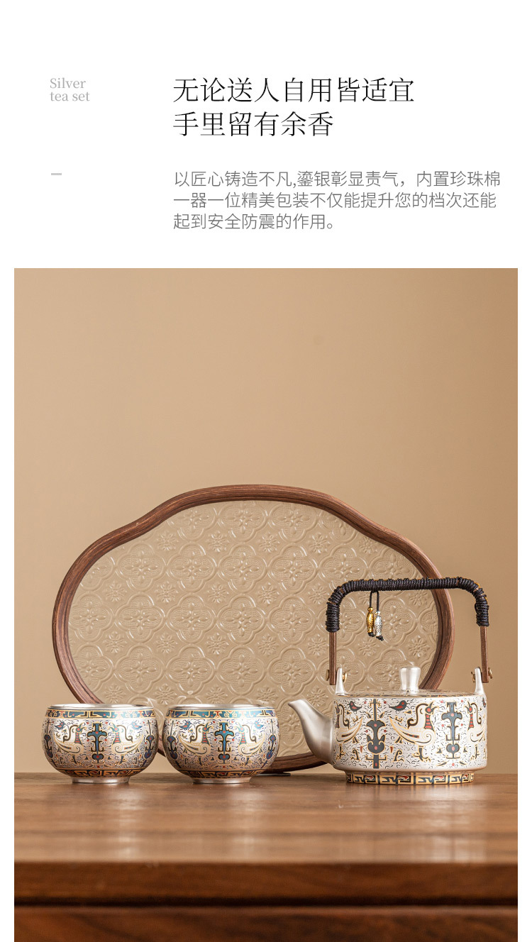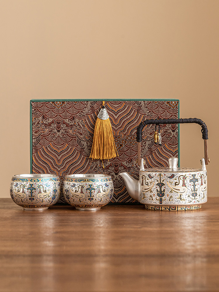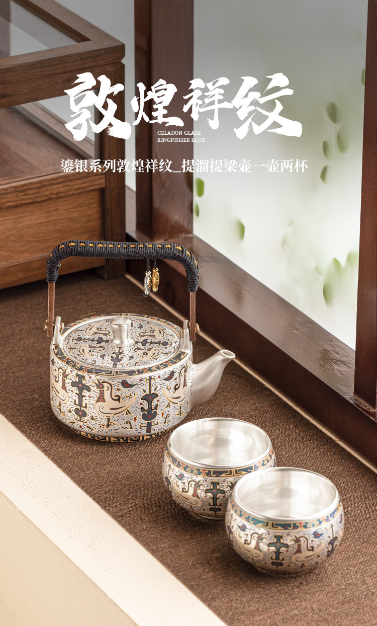 - 999 mạ bạc Đôn Hoàng mẫu tốt lành một bình hai cốc gia dụng bộ trà Kung Fu Trung Quốc ấm trà tách trà quà tặng
