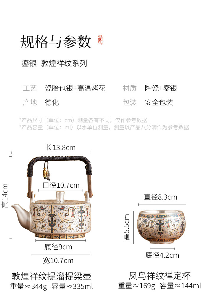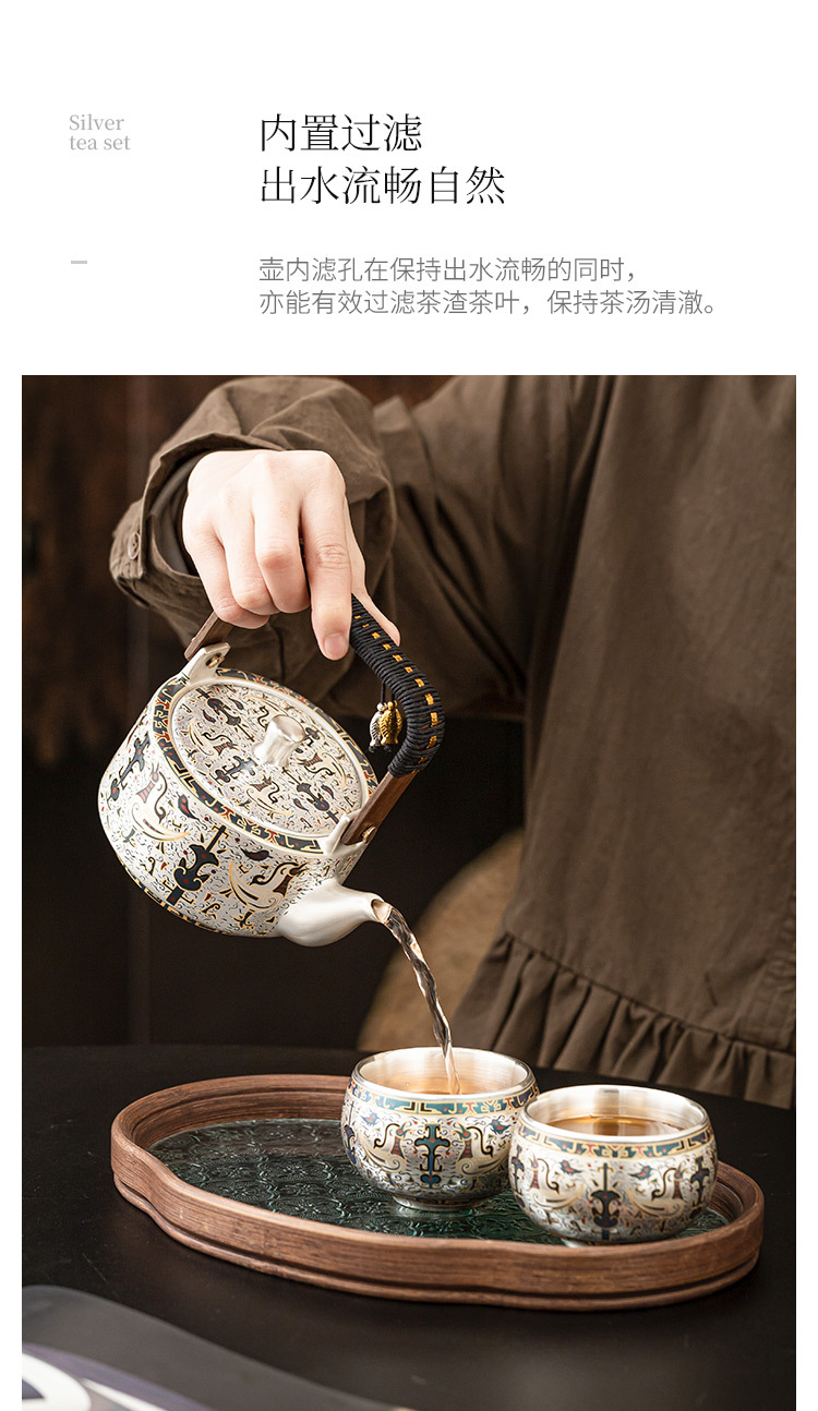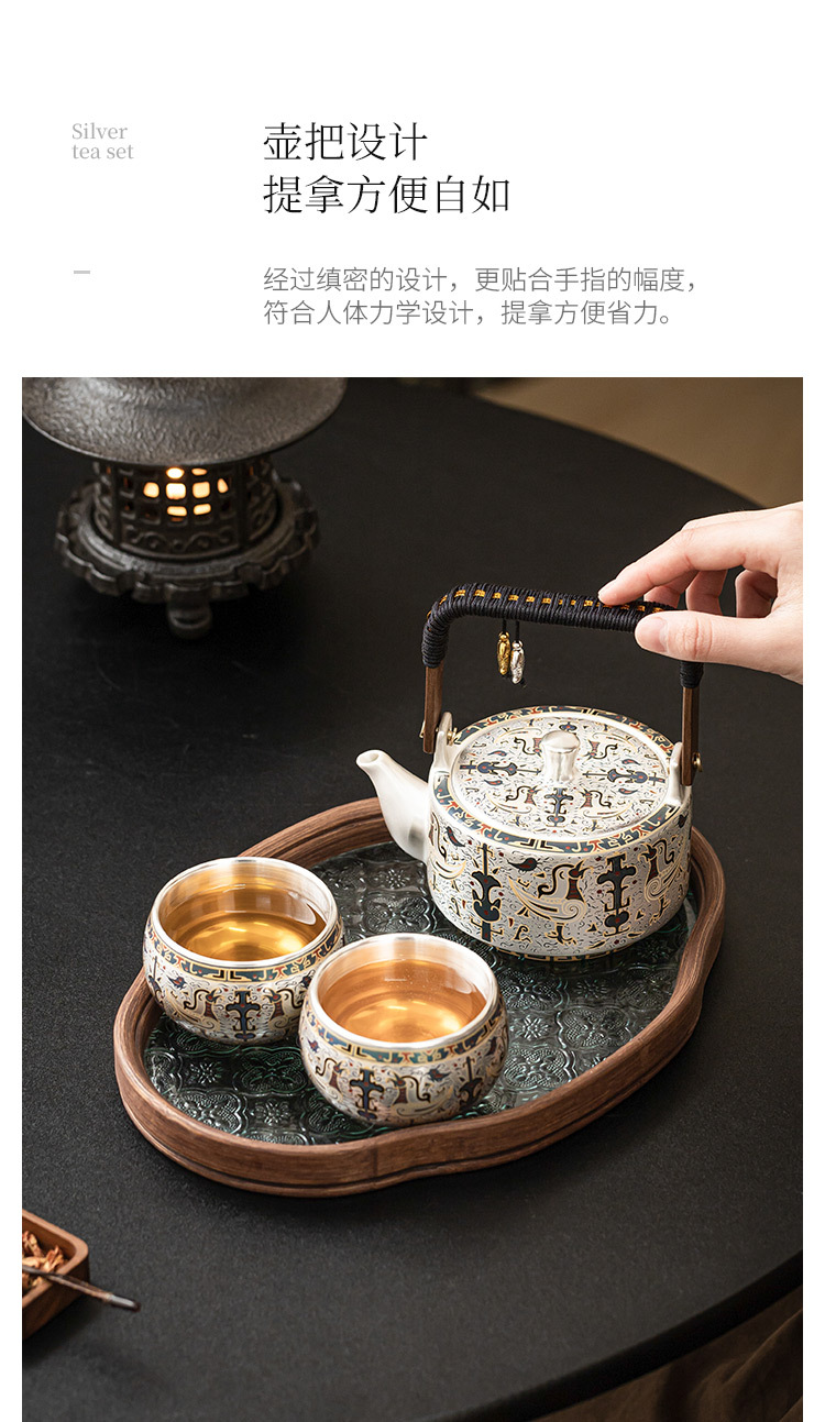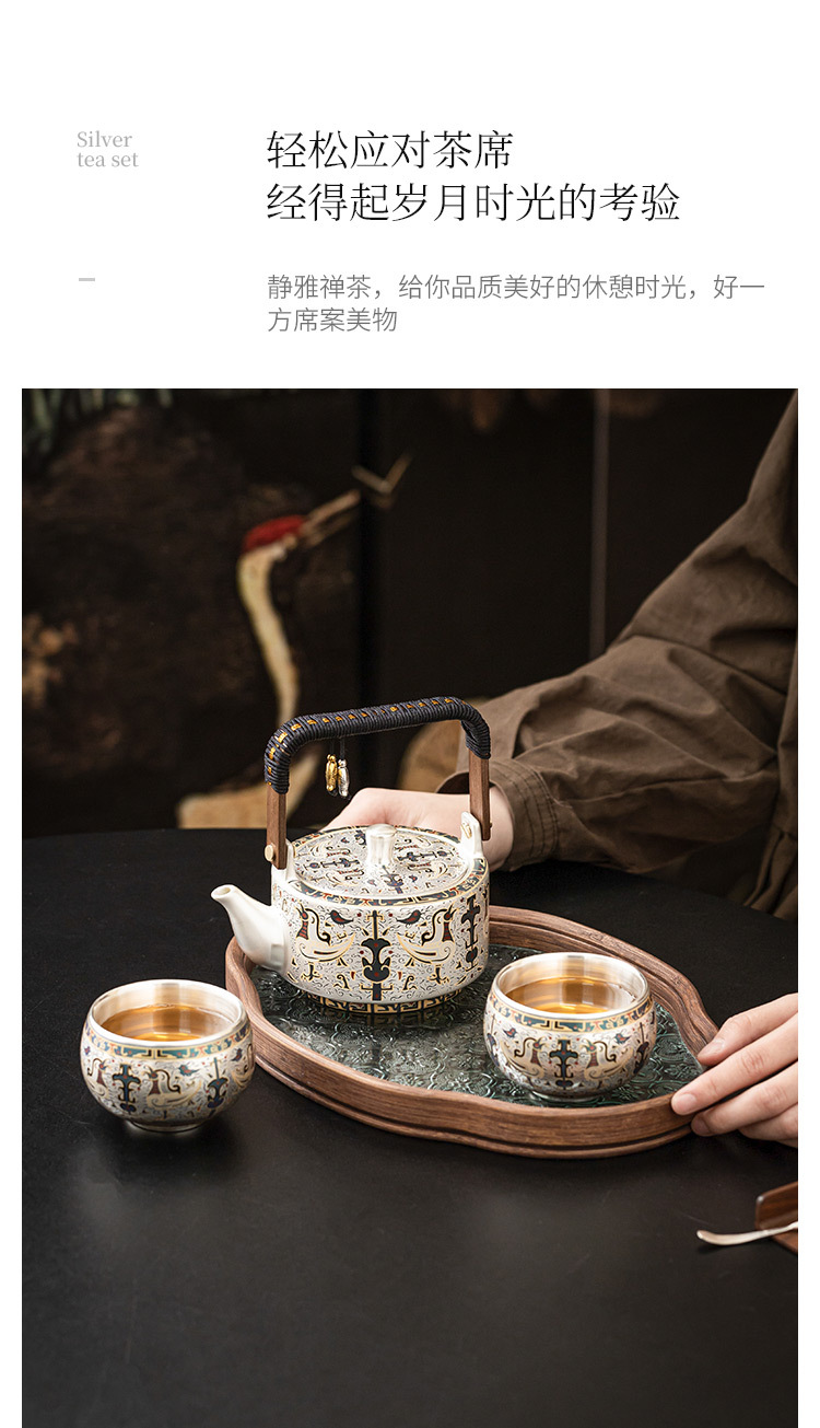 - 999 mạ bạc Đôn Hoàng mẫu tốt lành một bình hai cốc gia dụng bộ trà Kung Fu Trung Quốc ấm trà tách trà quà tặng