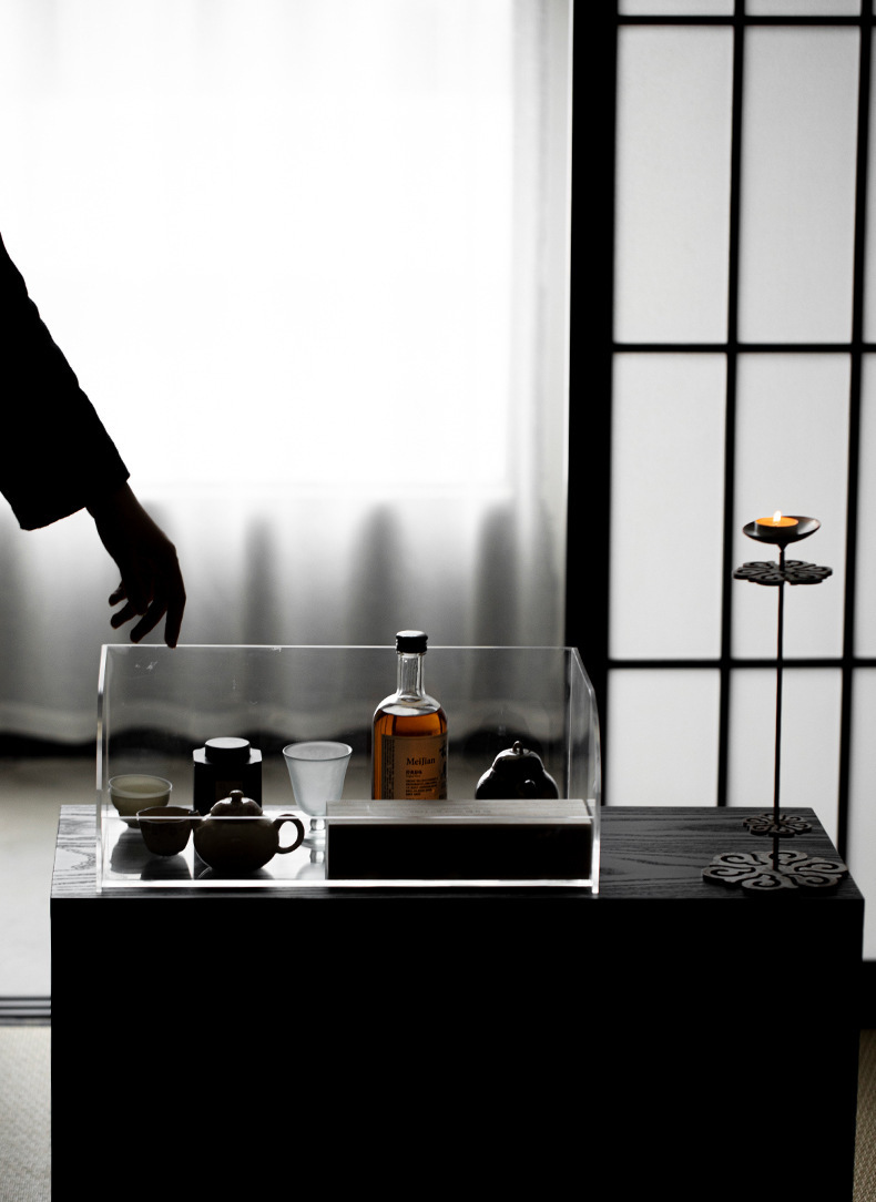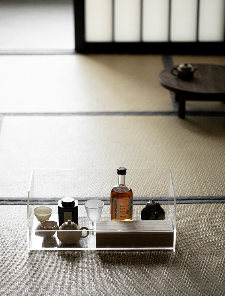 - Acrylic nhỏ Bogu giá để bàn ấm trà ấm trà tủ lưu trữ bộ trà giá để đồ trang trí bàn trà