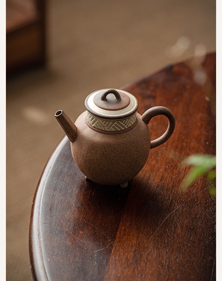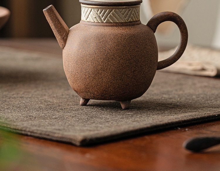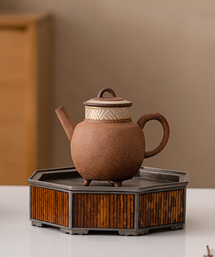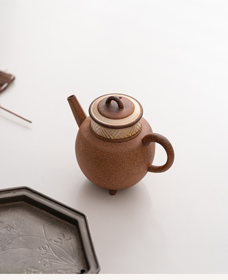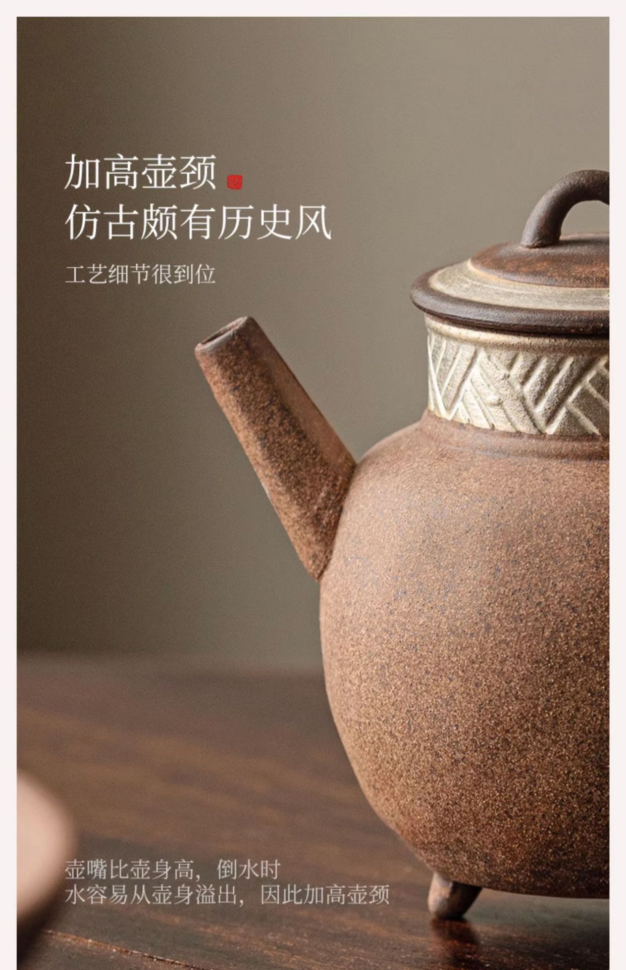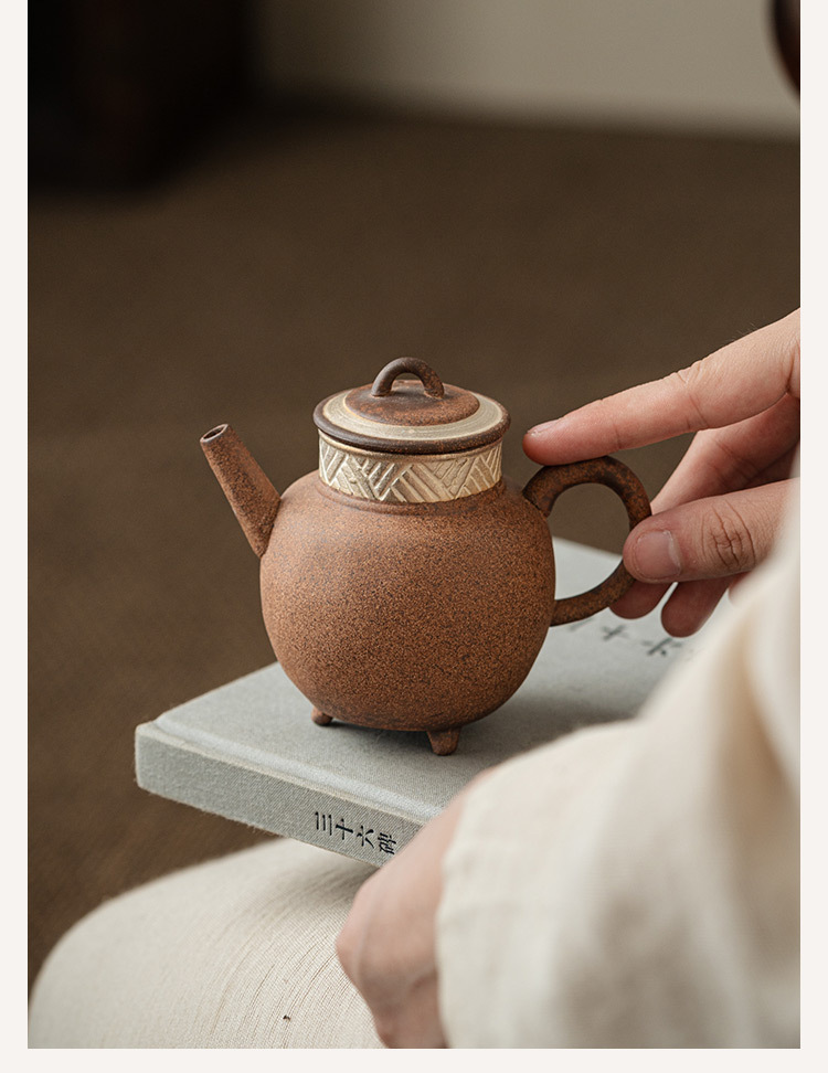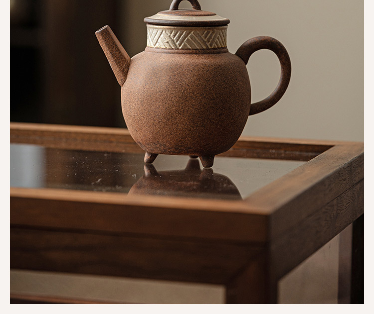 Ấm ba chân bằng đất sét cổ màu bạc vẽ thủ công ấm trà nhỏ ấm trà đơn ấm trà gia dụng dụng cụ pha trà Kung Fu cao cấp
