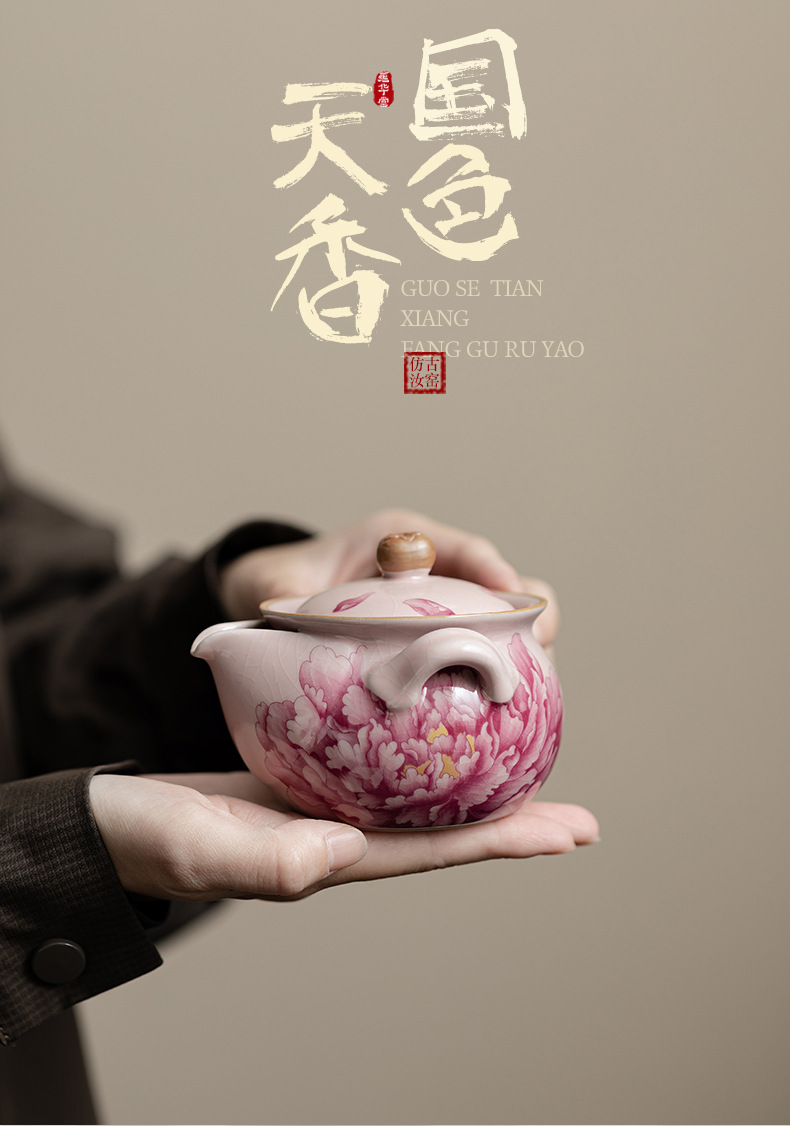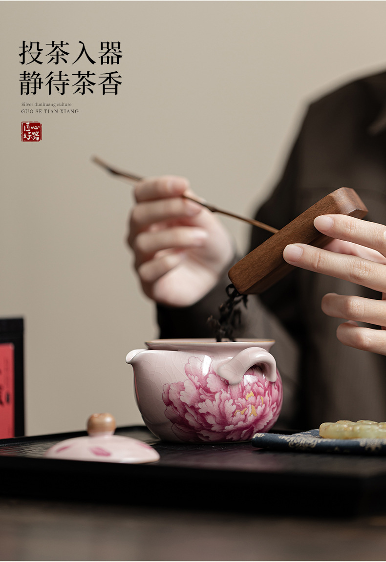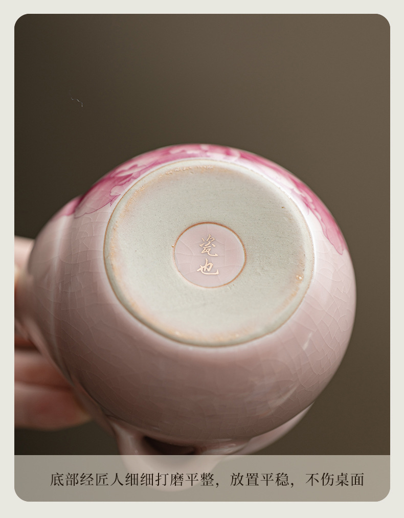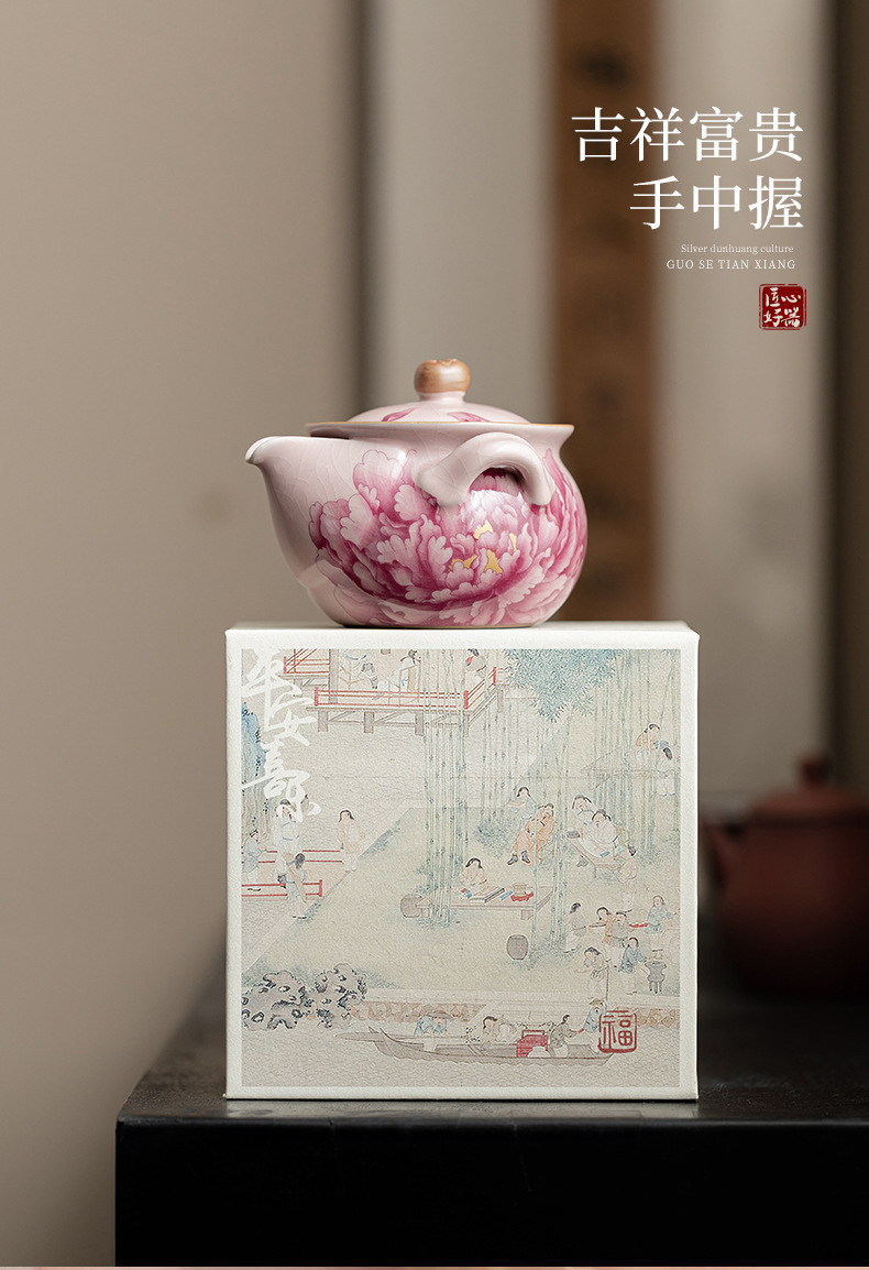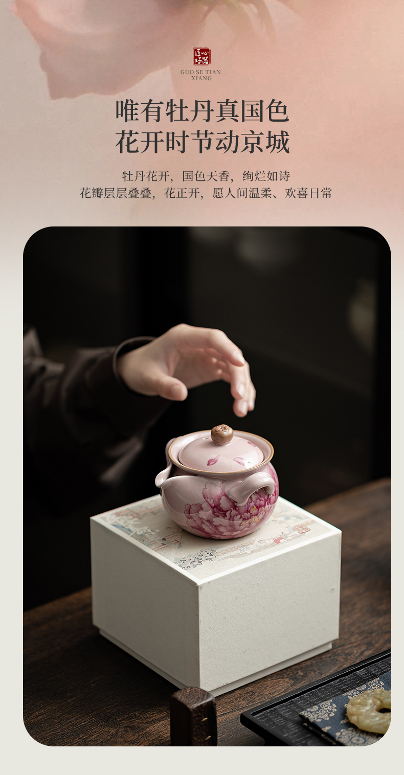 - Ấm cầm tay hoa mẫu đơn Ru Kiln màu hồng ấm pha trà bộ trà Kung Fu đơn dụng cụ pha trà chống bỏng gốm sứ gia dụng hộp quà
