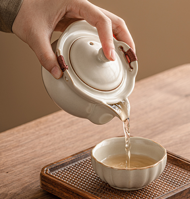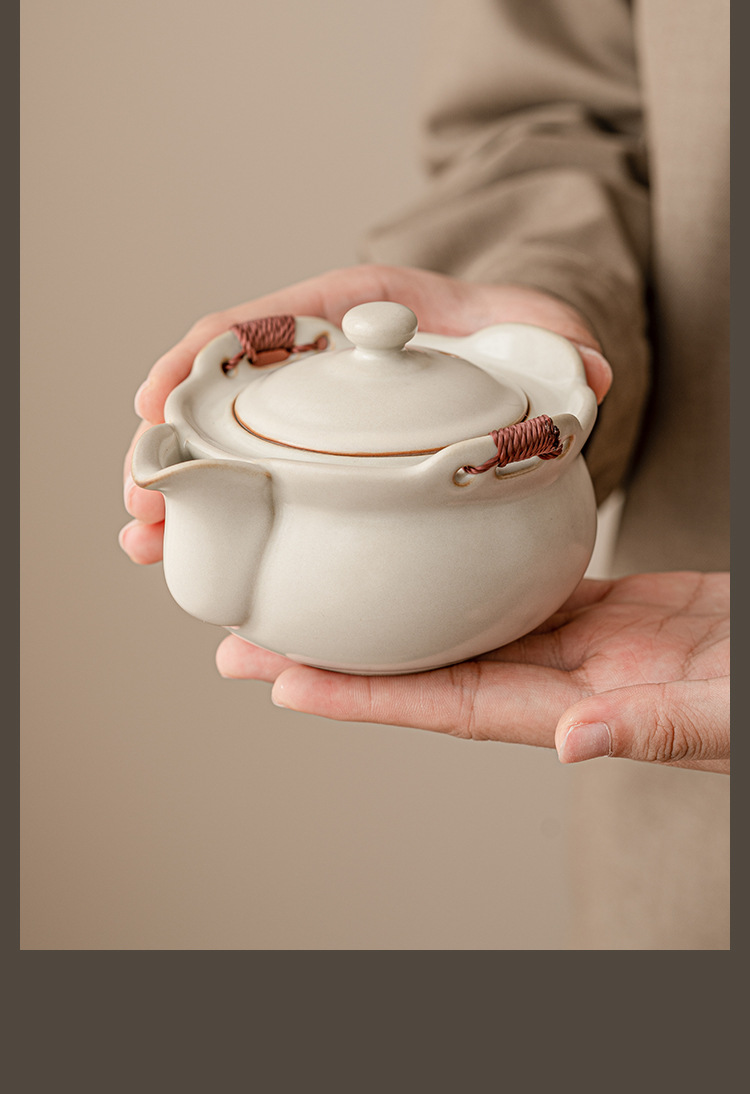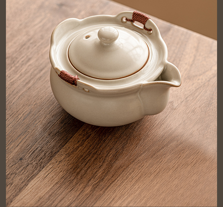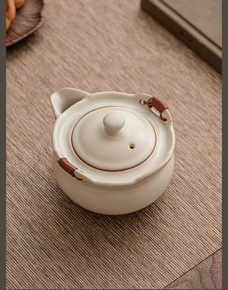 - Ấm cầm tay Ru Kiln màu vàng be ấm pha trà gốm sứ cao cấp một bộ trà Kung Fu gia dụng chống bỏng ấm đơn có nắp