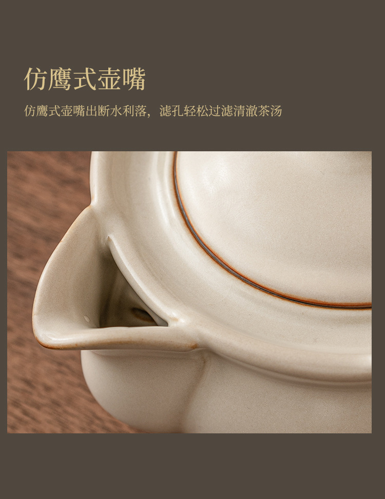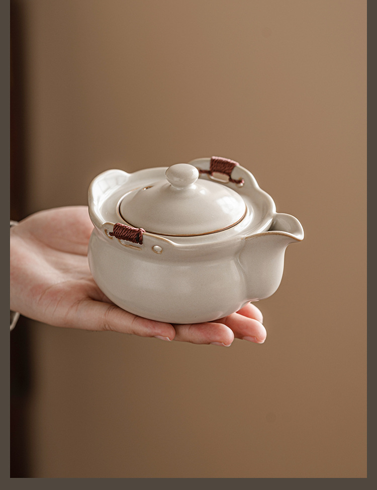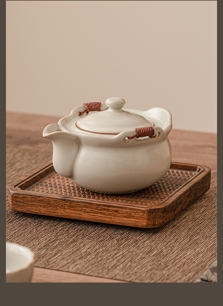 Ấm cầm tay Ru Kiln màu vàng be ấm pha trà gốm sứ cao cấp một bộ trà Kung Fu gia dụng chống bỏng ấm đơn có nắp