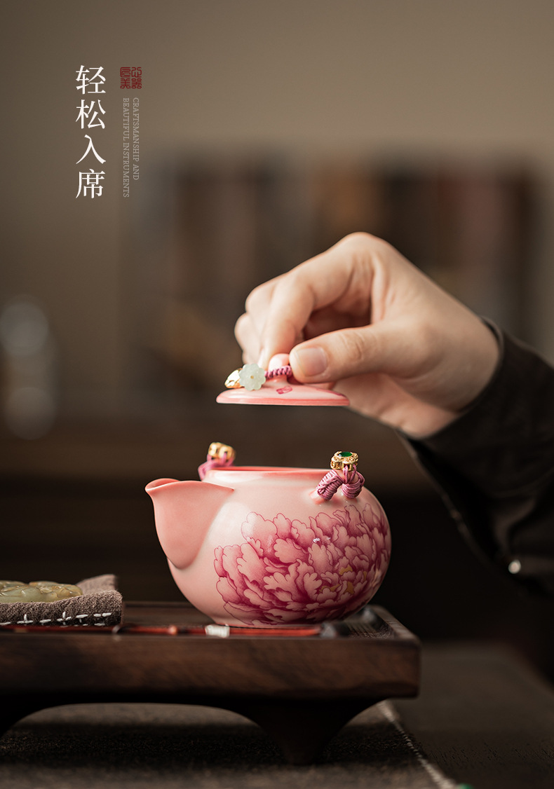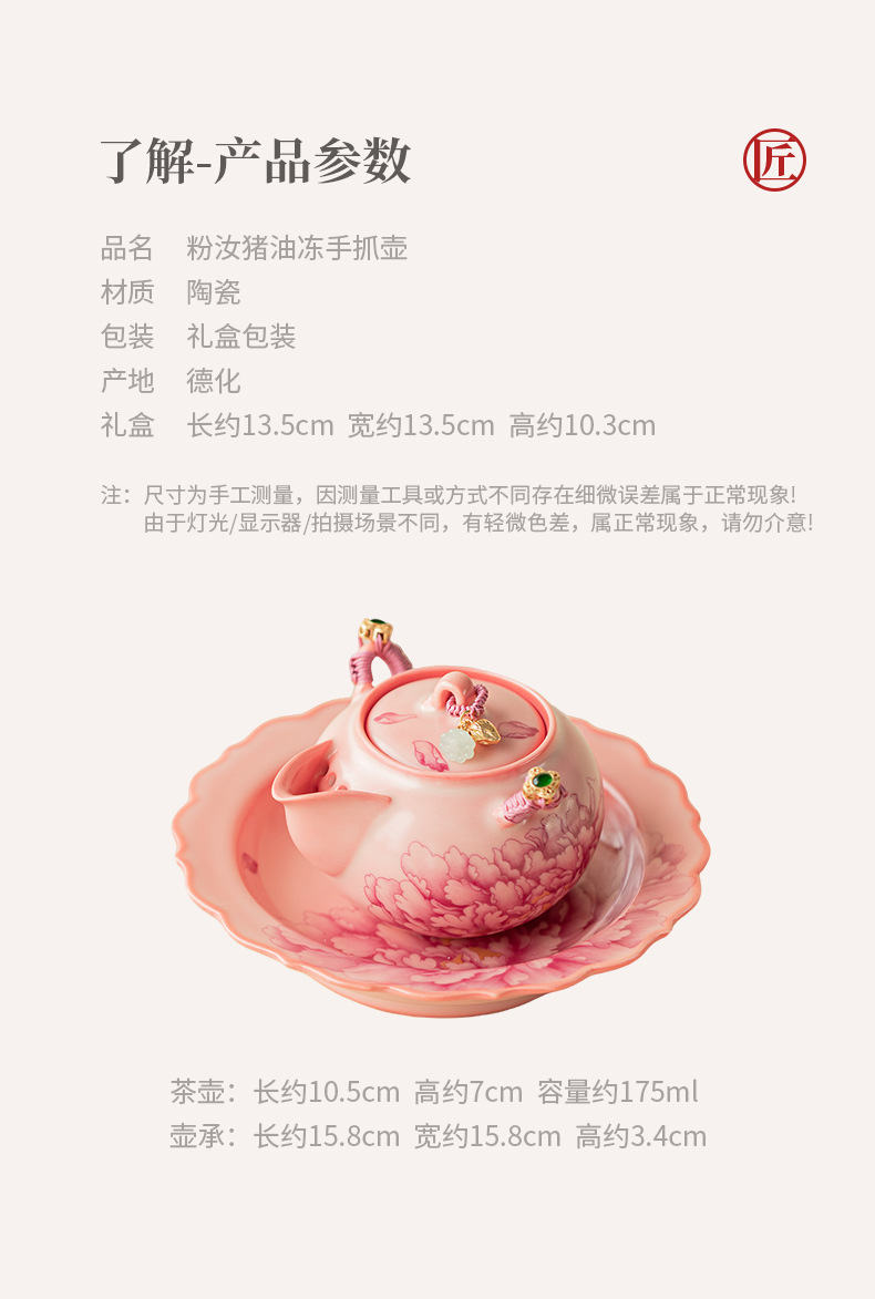 Ấm cầm tay thạch mỡ lợn lò Fenru ấm trà gốm sứ gia dụng ấm đơn dụng cụ pha trà Kung Fu lọc chống bỏng ấm