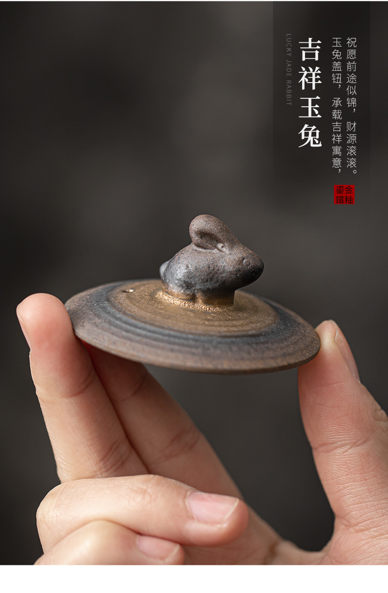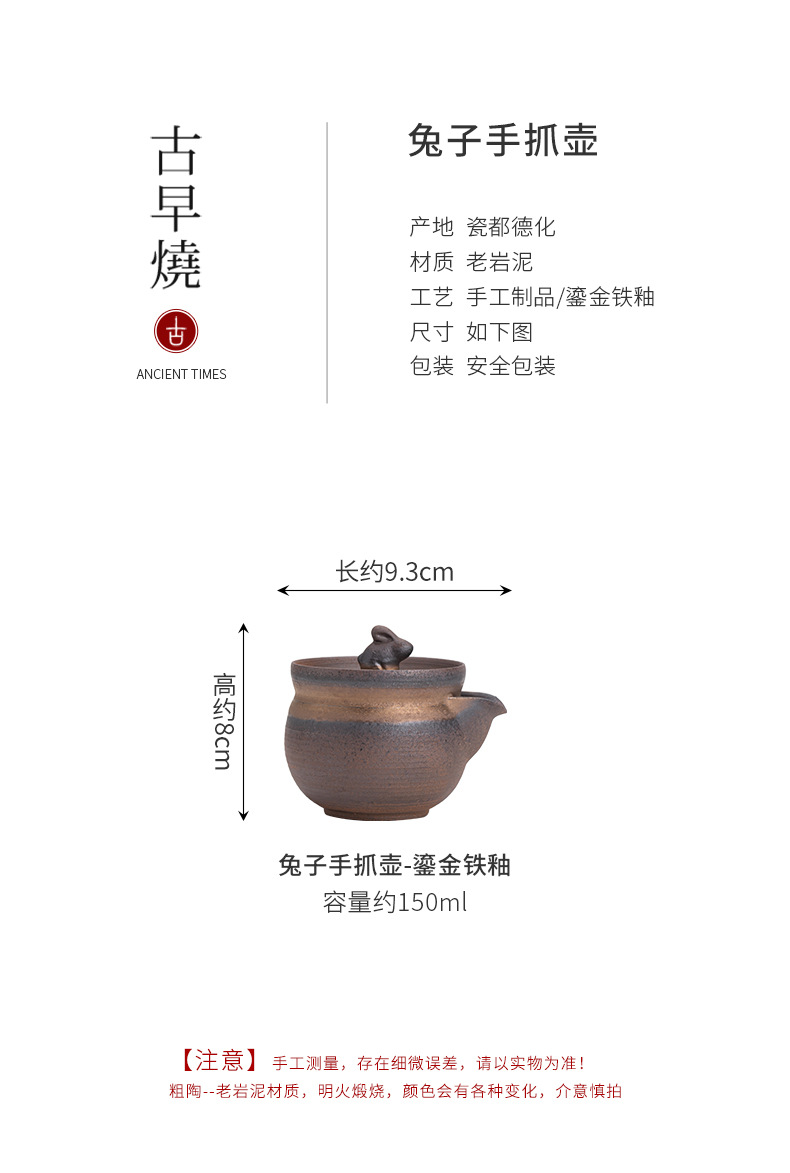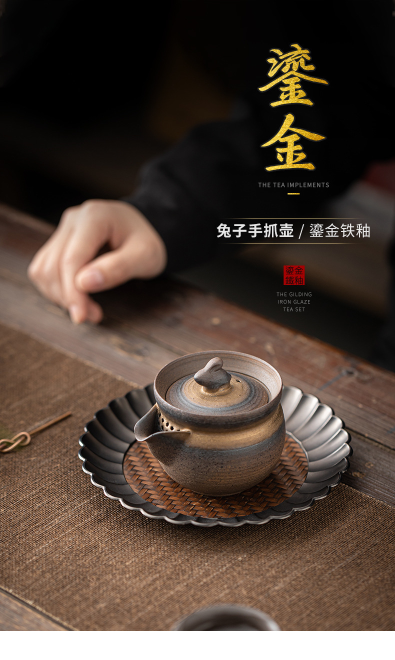 - Ấm cầm tay thỏ tráng men mạ vàng ấm trà gốm sứ ấm đơn không nóng cổ xưa đốt bùn đá cổ điển đồ trà Kung Fu cổ điển