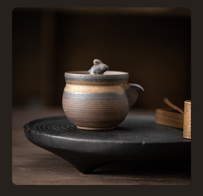 Ấm cầm tay thỏ tráng men mạ vàng ấm trà gốm sứ ấm đơn không nóng cổ xưa đốt bùn đá cổ điển đồ trà Kung Fu cổ điển
