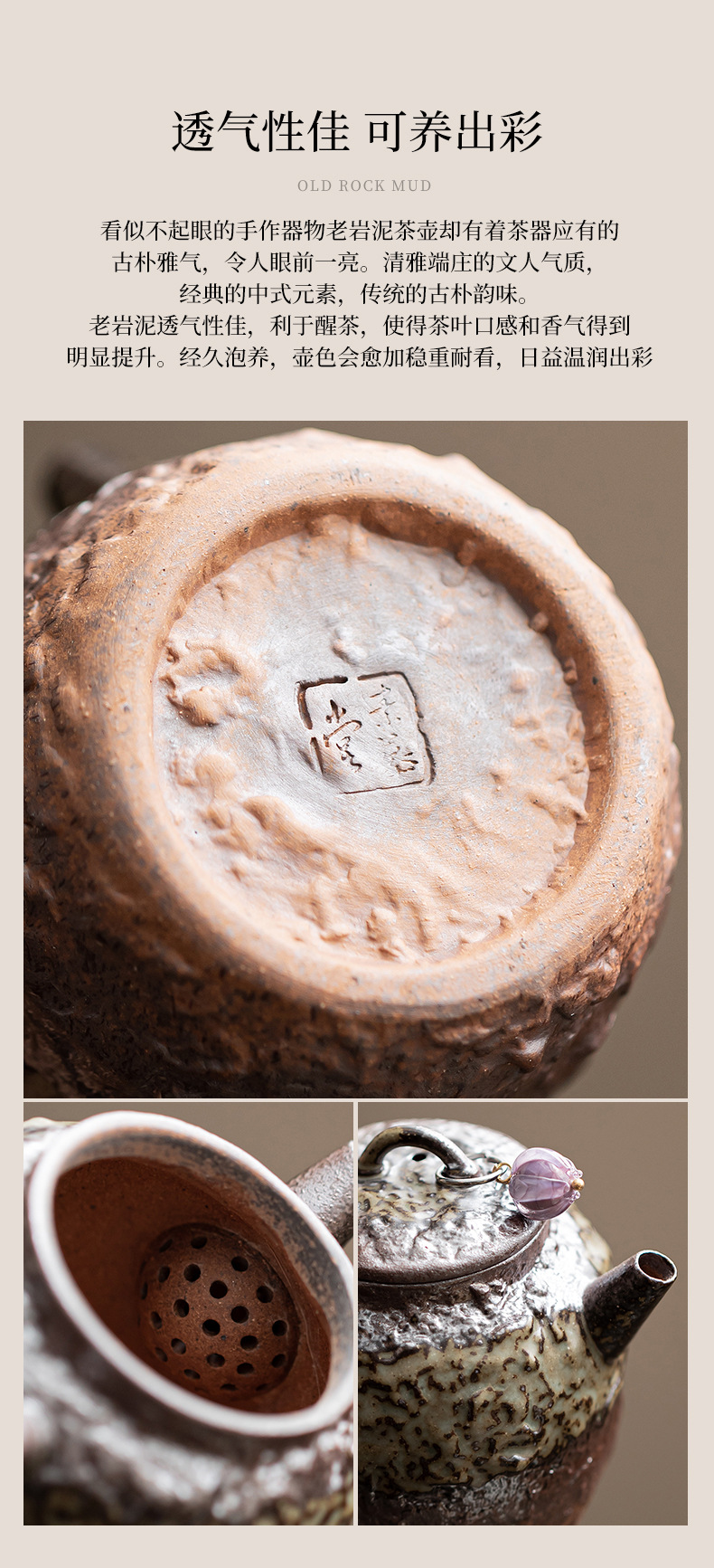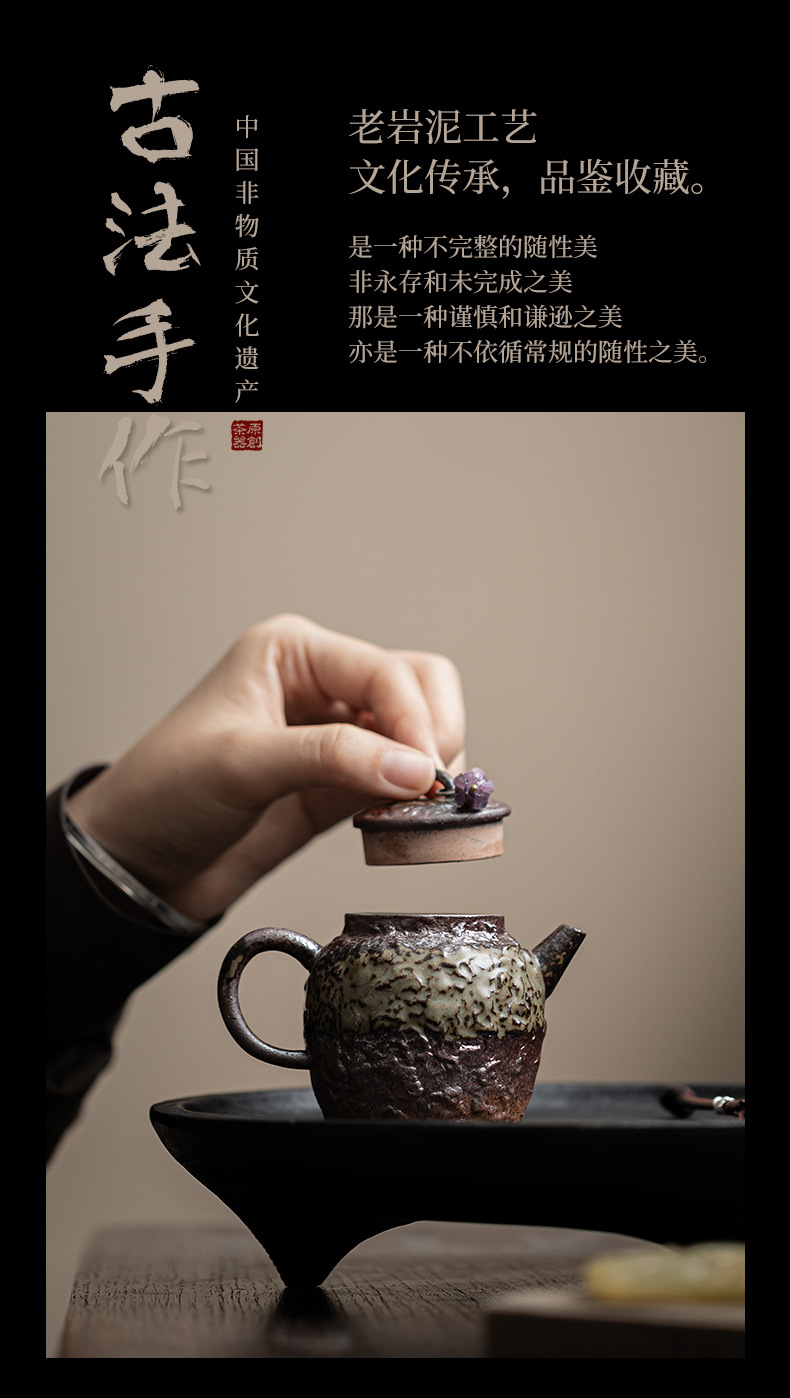 - Ấm đá cũ bùn Jingsi ấm dung tích nhỏ ấm pha trà gia dụng cổ điển ấm đơn dụng cụ pha trà Kung Fu ấm lọc lỗ bóng