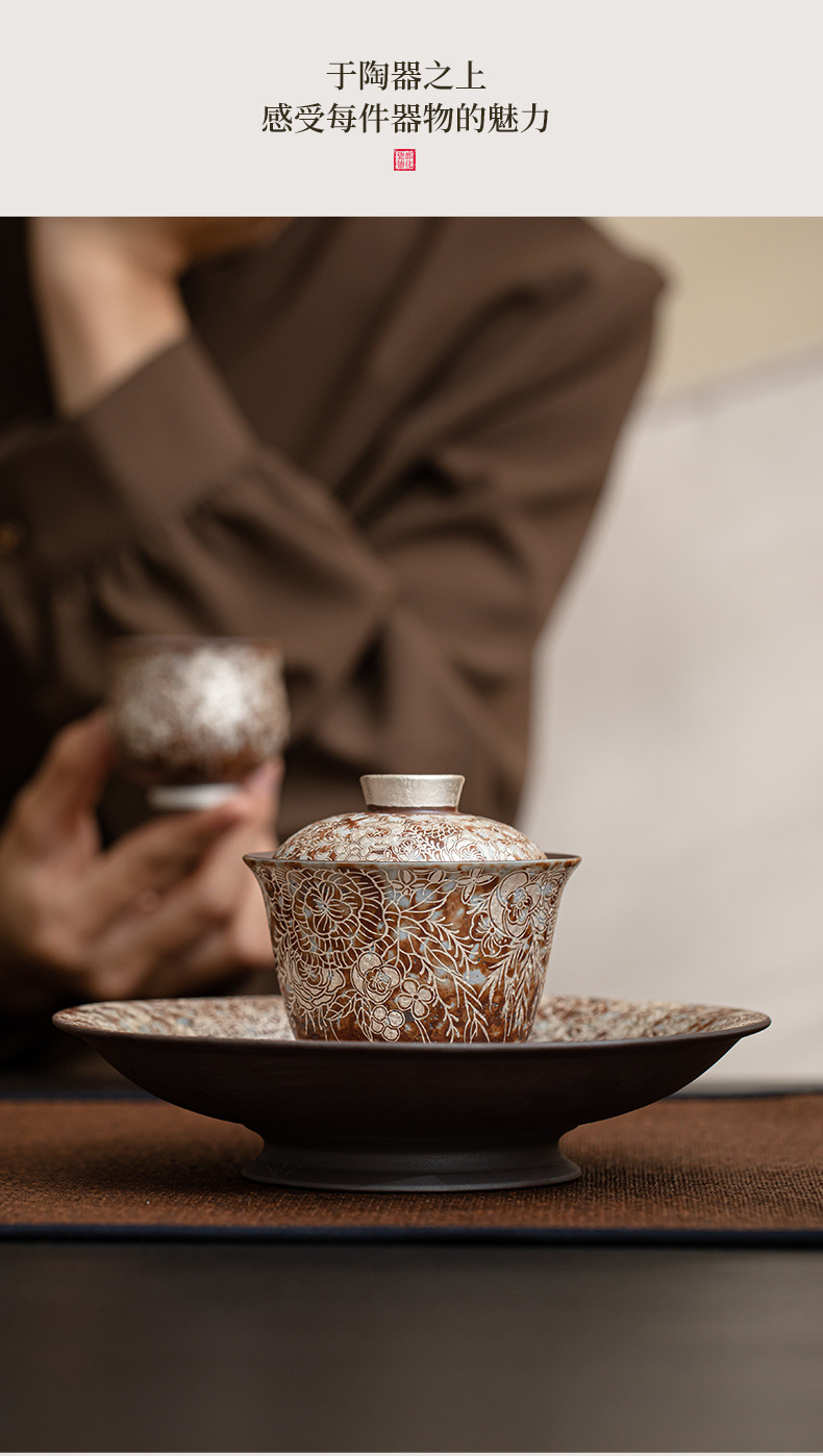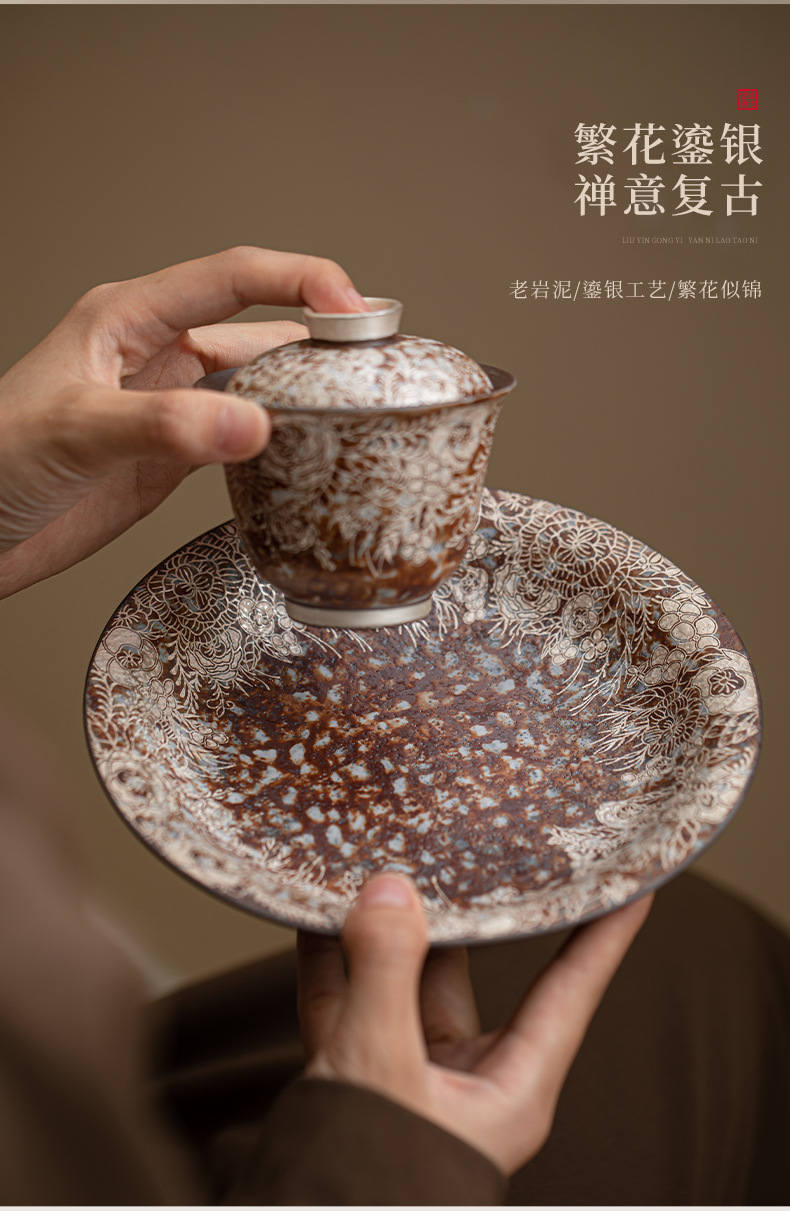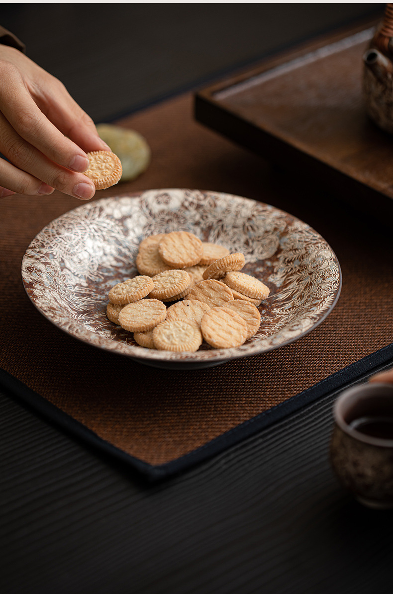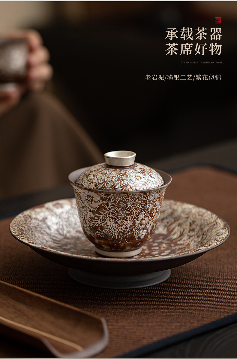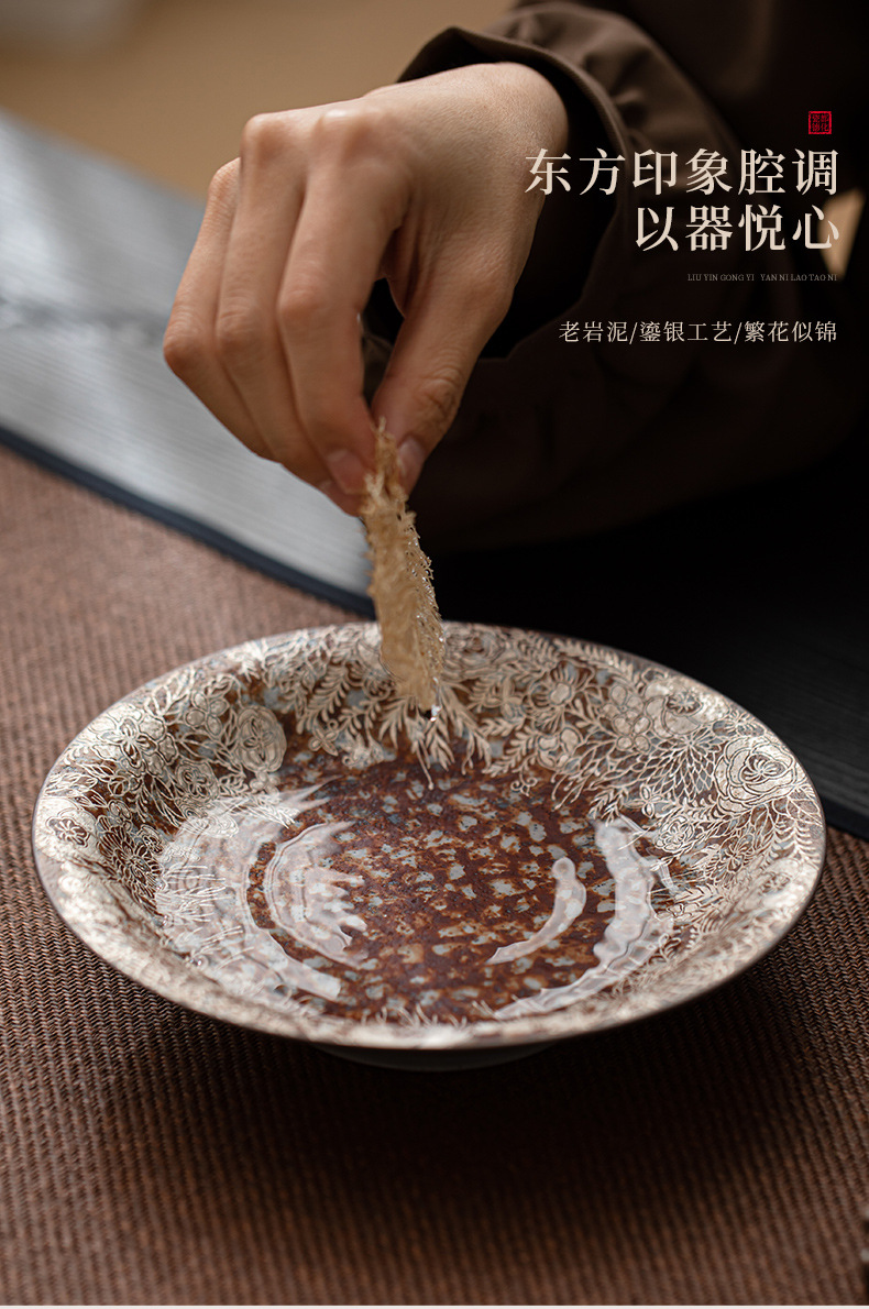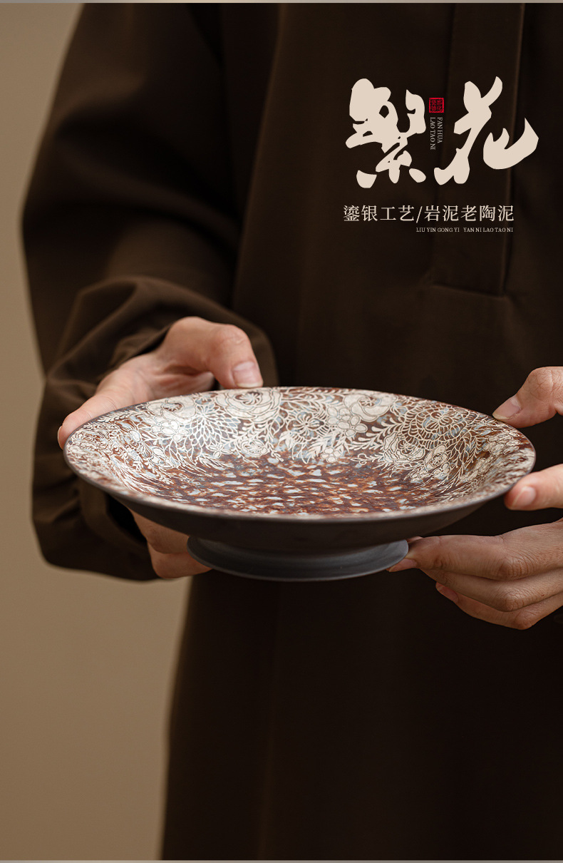 - Ấm đất đá cũ Hoa mạ bạc khay pha khô gốm thô khay đựng trà nhỏ Khay đựng ấm Khay đựng trà khay đựng trà khay đựng trà khay đựng trà