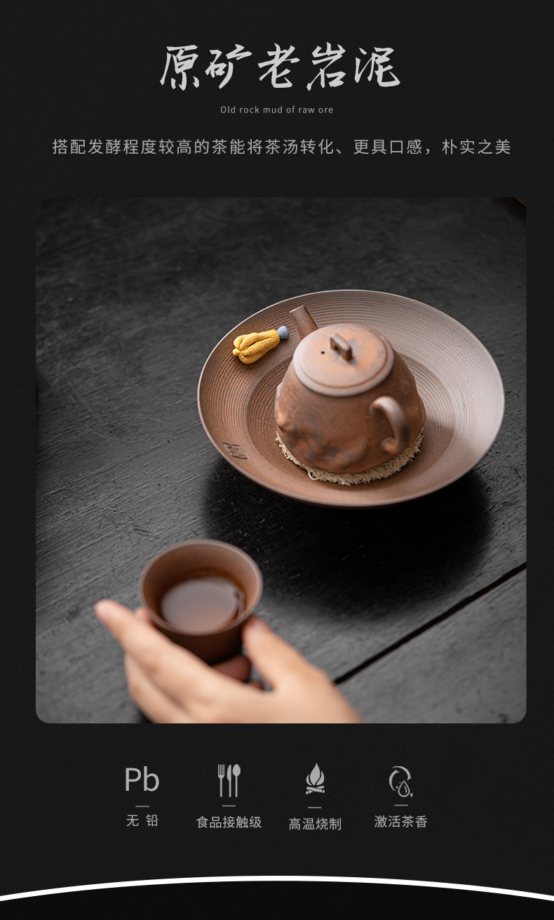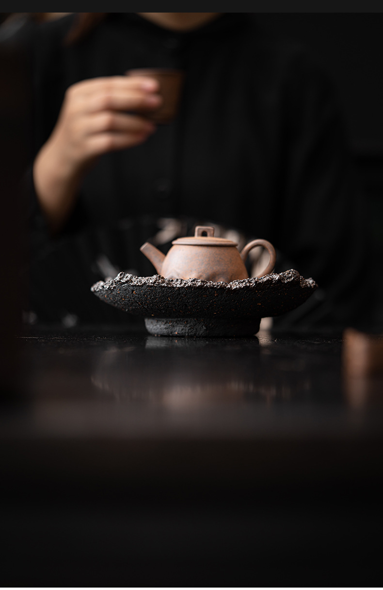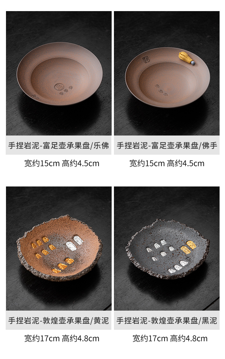 - Ấm đất sét đá nhào bằng tay, khay xốp khô chứa nước hình tròn bằng gốm thô kiểu Nhật, khay đựng ấm, dụng cụ trà Kung Fu, khay đựng trái cây trà đạo