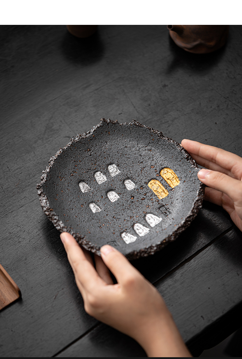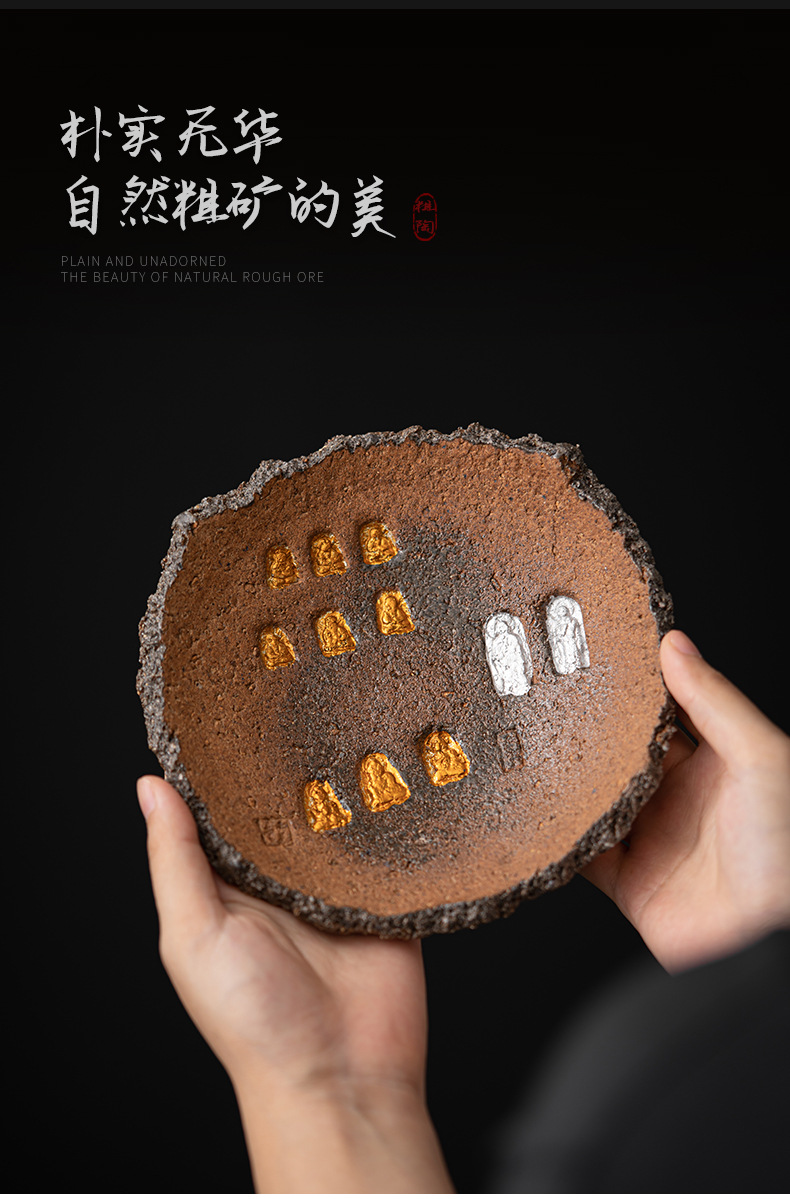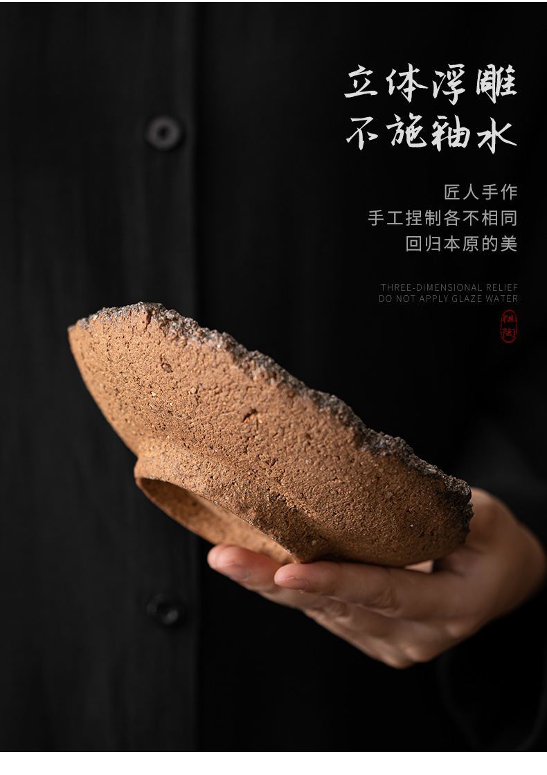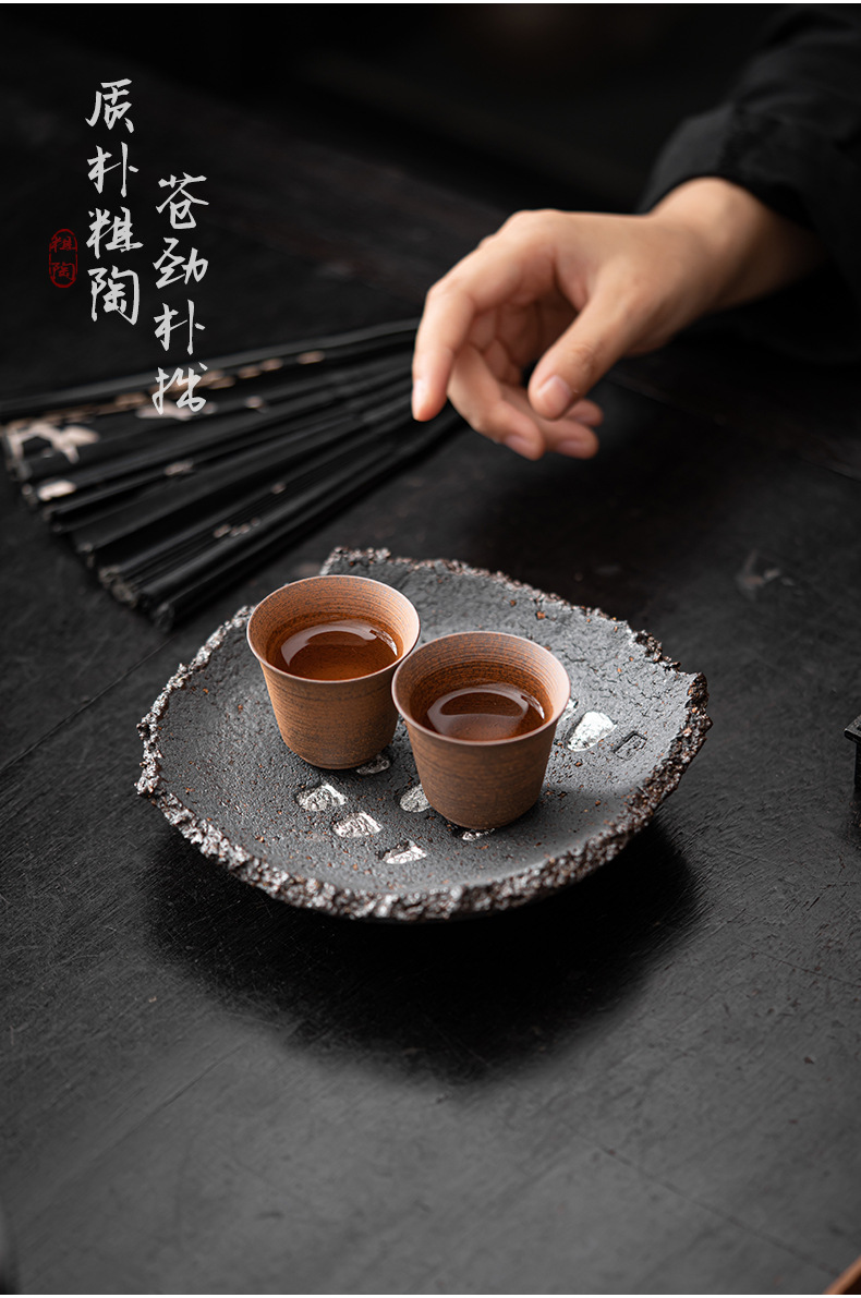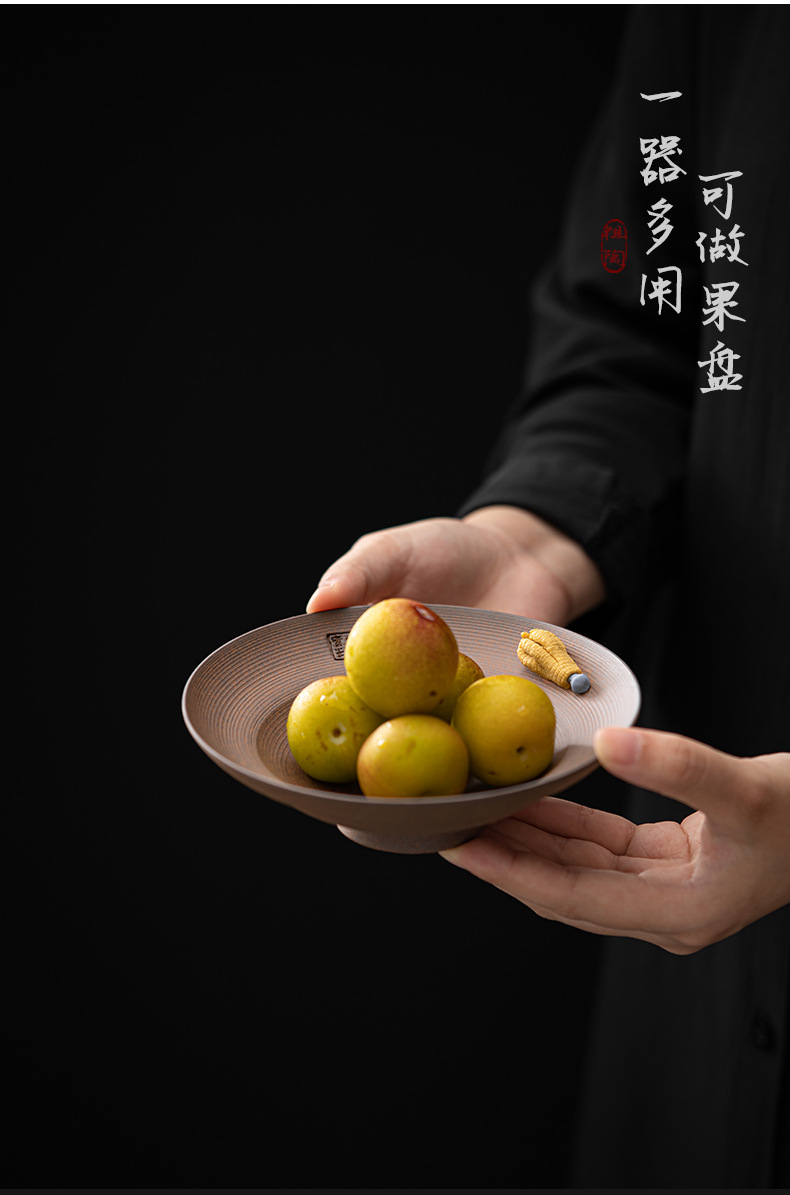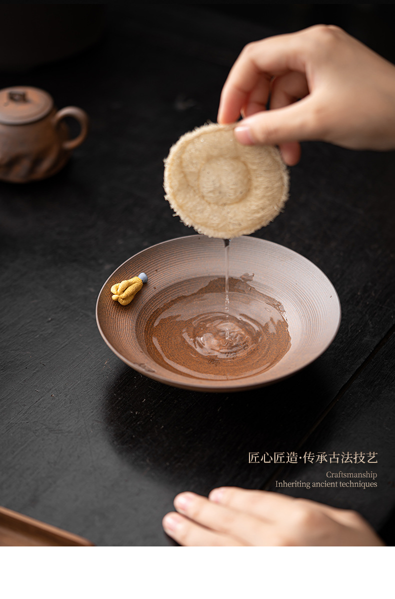 Ấm đất sét đá nhào bằng tay, khay xốp khô chứa nước hình tròn bằng gốm thô kiểu Nhật, khay đựng ấm, dụng cụ trà Kung Fu, khay đựng trái cây trà đạo