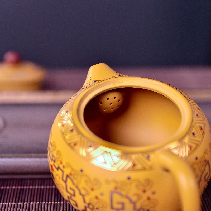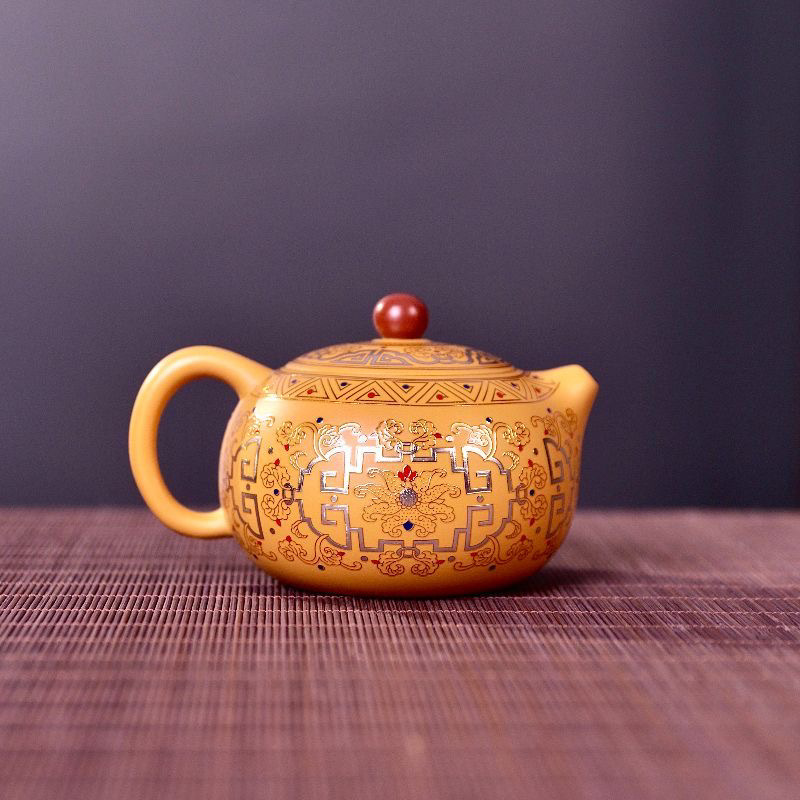 - Ấm đất sét màu tím phần vàng ấm Fengming ấm Xi Shi ấm trà tráng men Đôn Hoàng ấm trà đơn bộ ấm trà tử sa đích thực