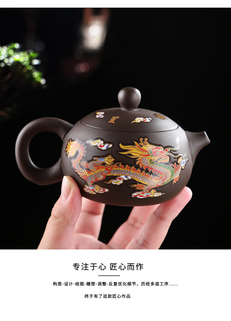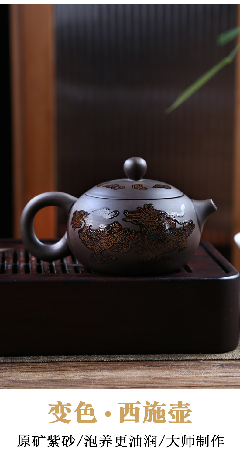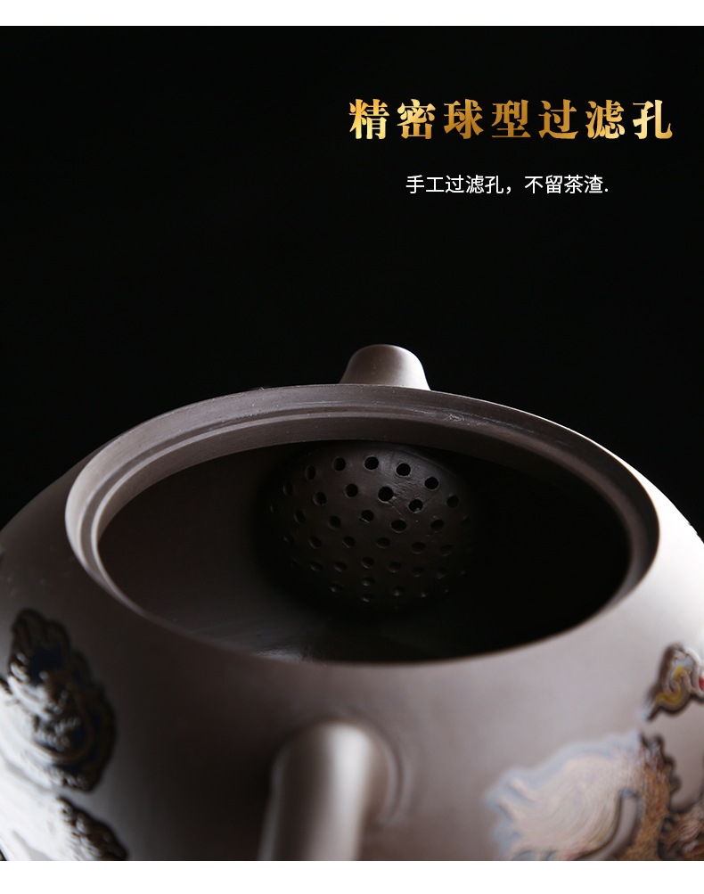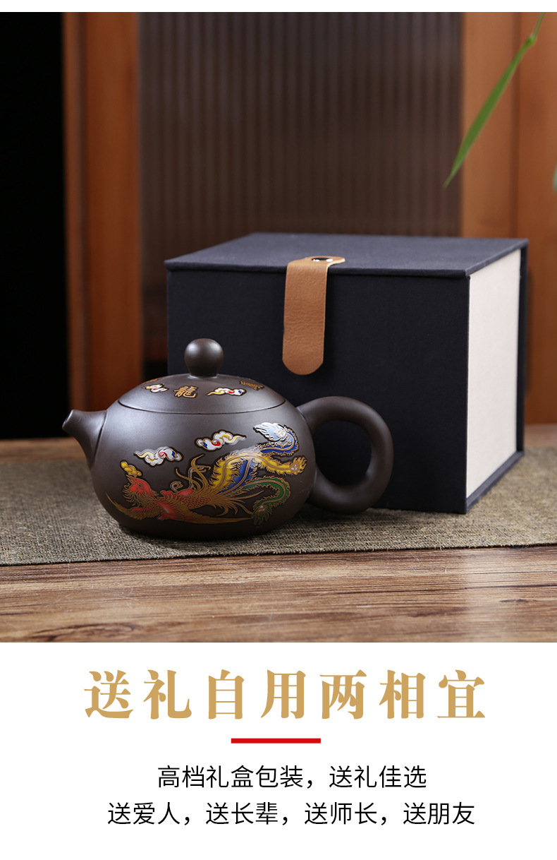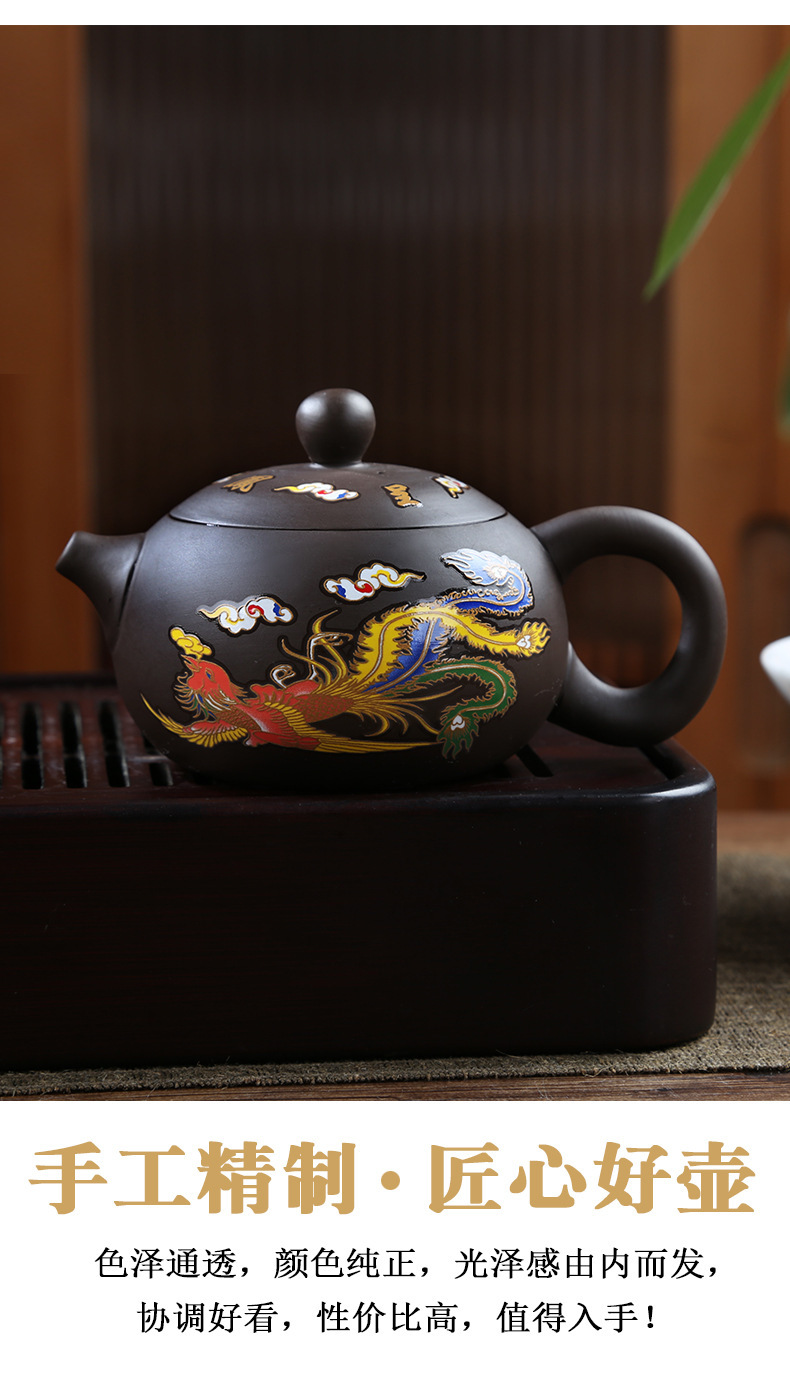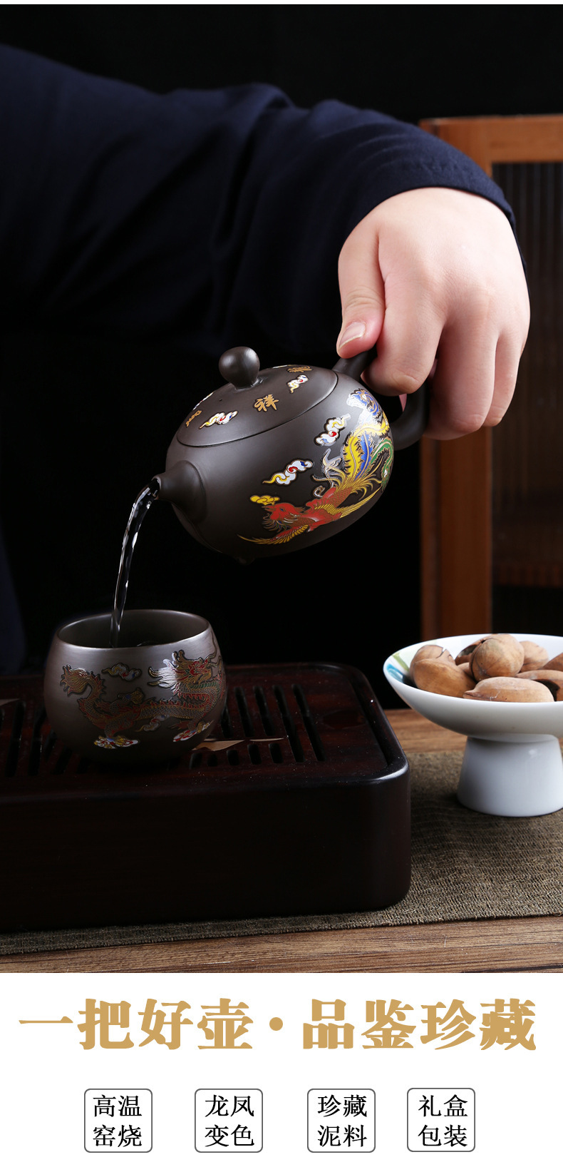 - Ấm đất sét tím thô ấm Xi Shi ấm nước nóng đổi màu rồng và phượng hoàng chim nước gọi là ấm trà Fengming ấm trà bộ trà thủ công
