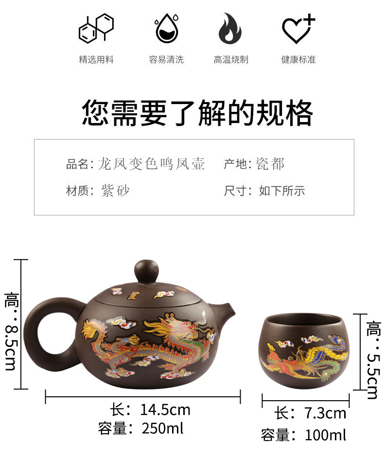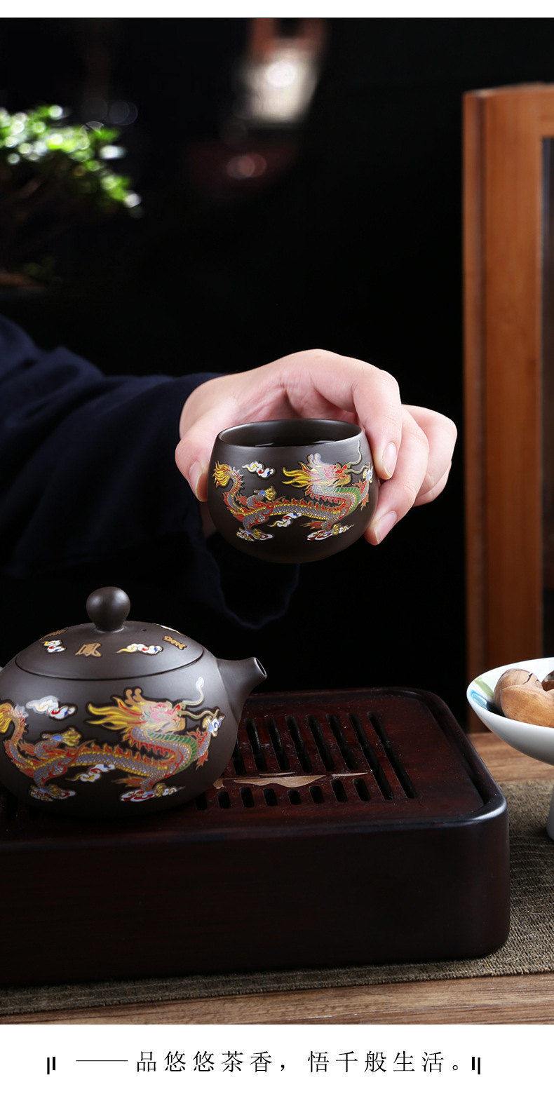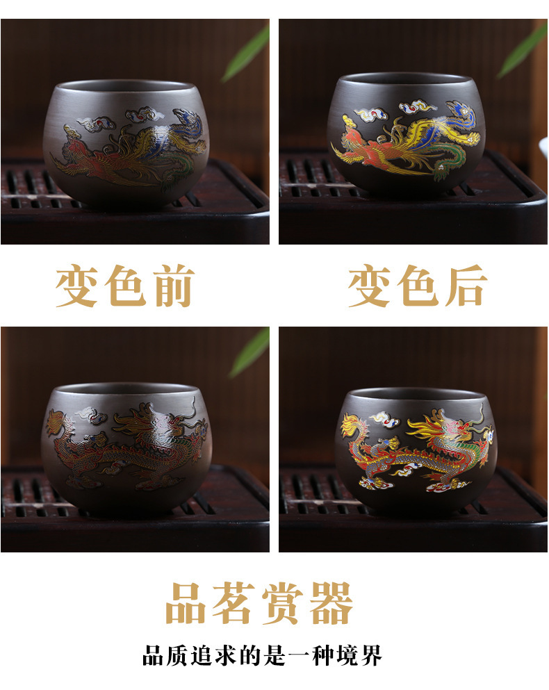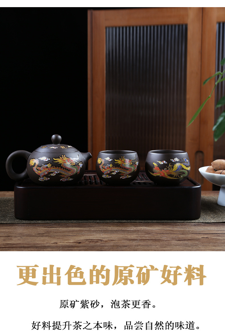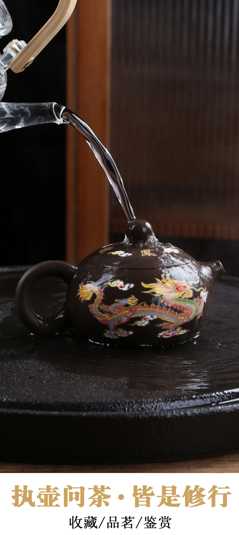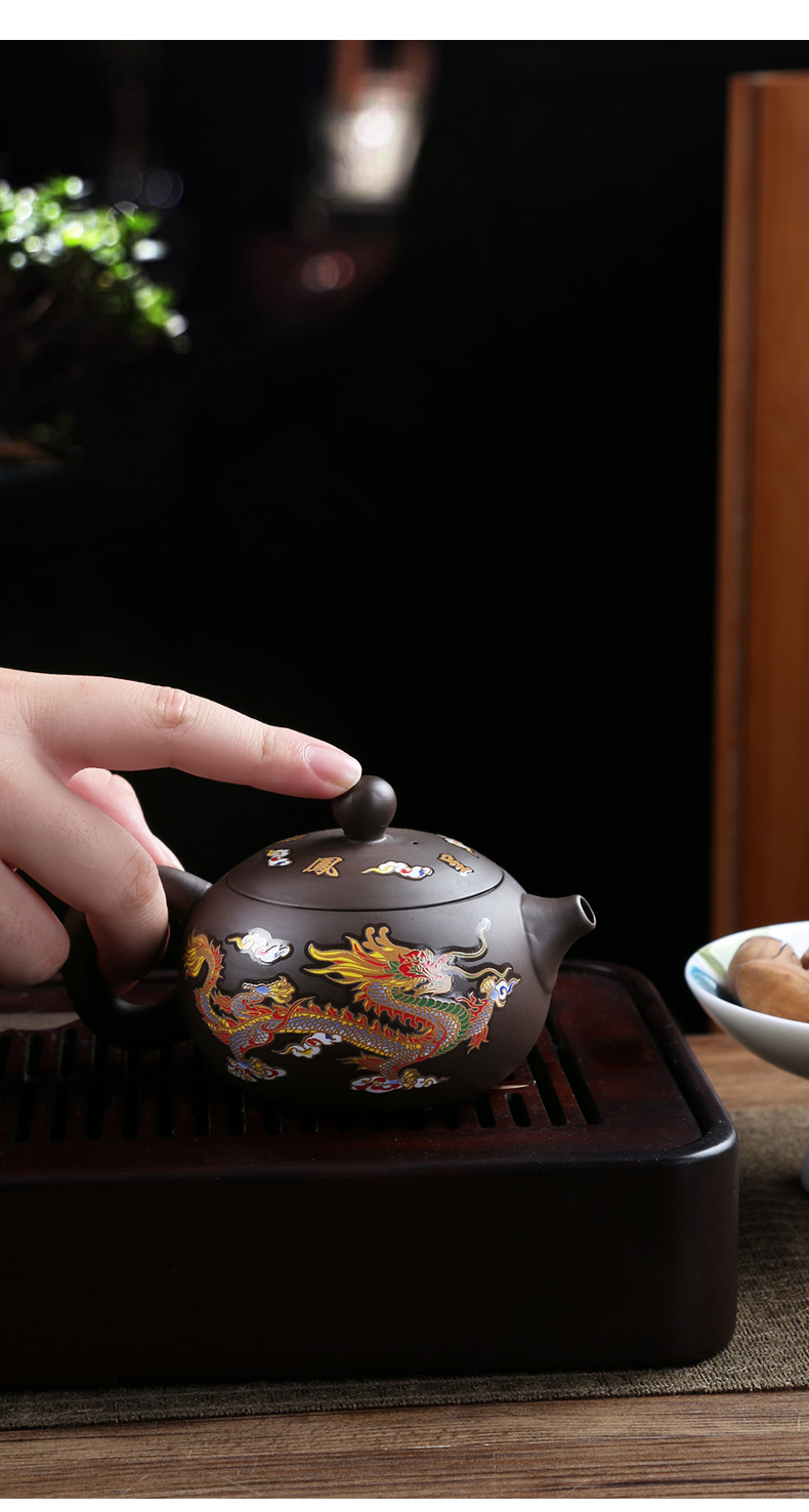 - Ấm đất sét tím thô ấm Xi Shi ấm nước nóng đổi màu rồng và phượng hoàng chim nước gọi là ấm trà Fengming ấm trà bộ trà thủ công