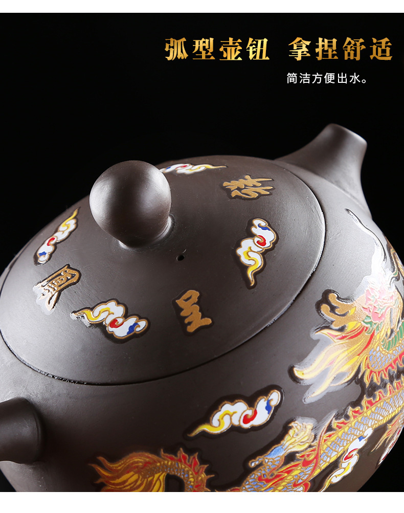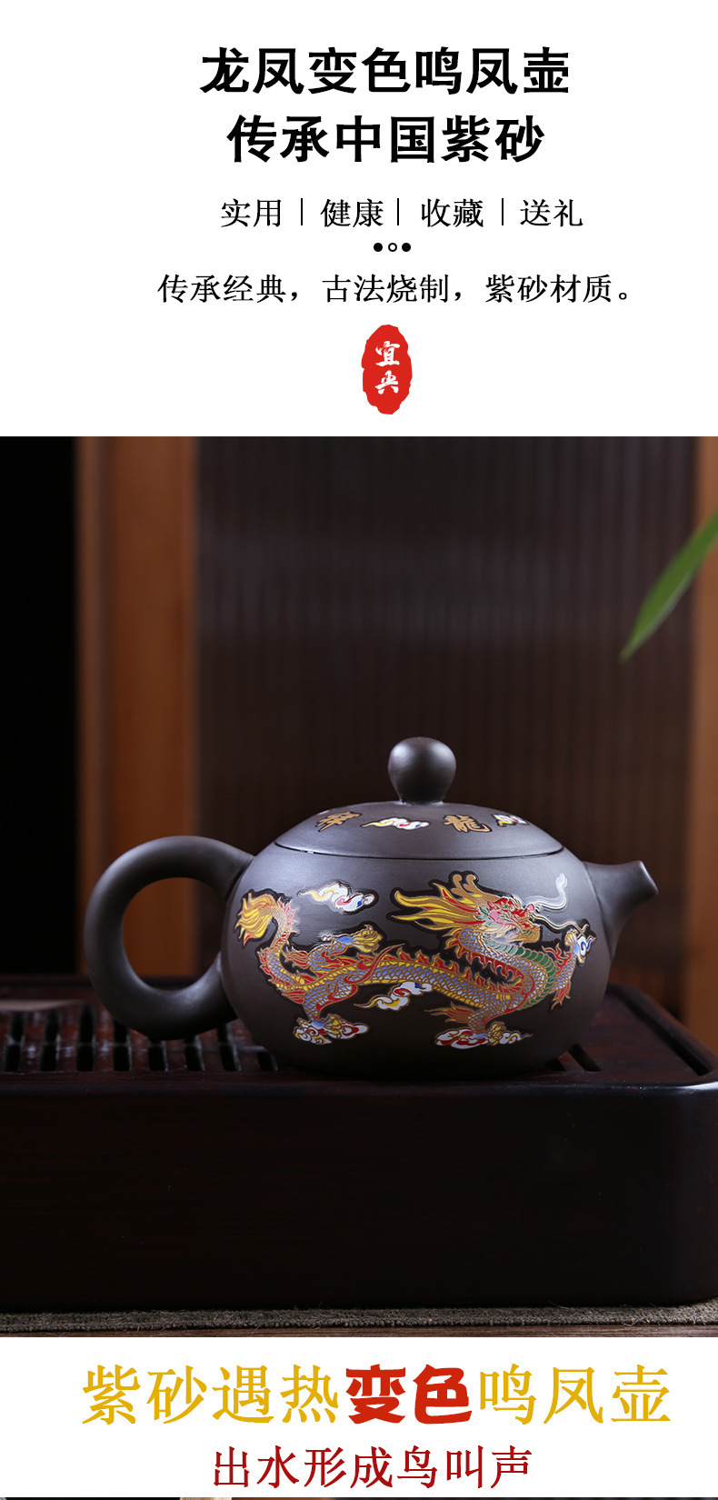 Ấm đất sét tím thô ấm Xi Shi ấm nước nóng đổi màu rồng và phượng hoàng chim nước gọi là ấm trà Fengming ấm trà bộ trà thủ công