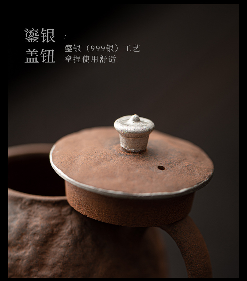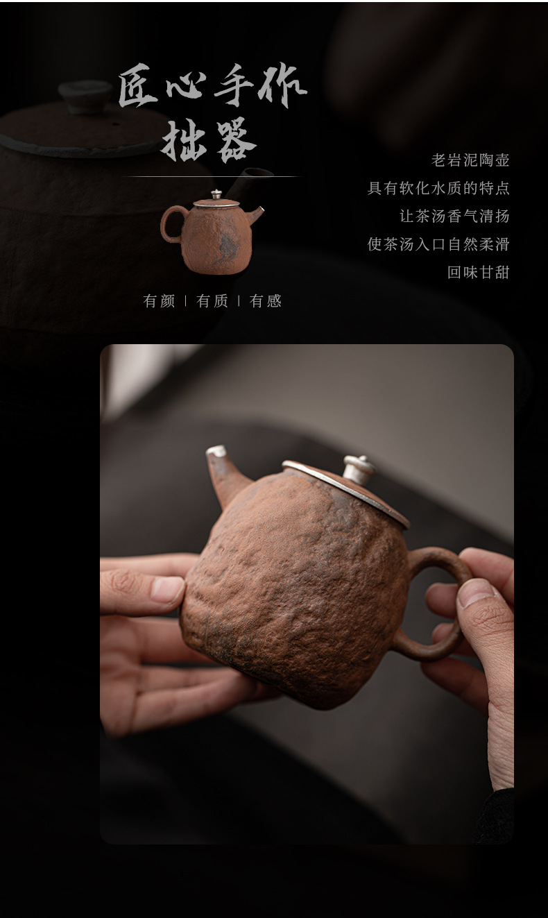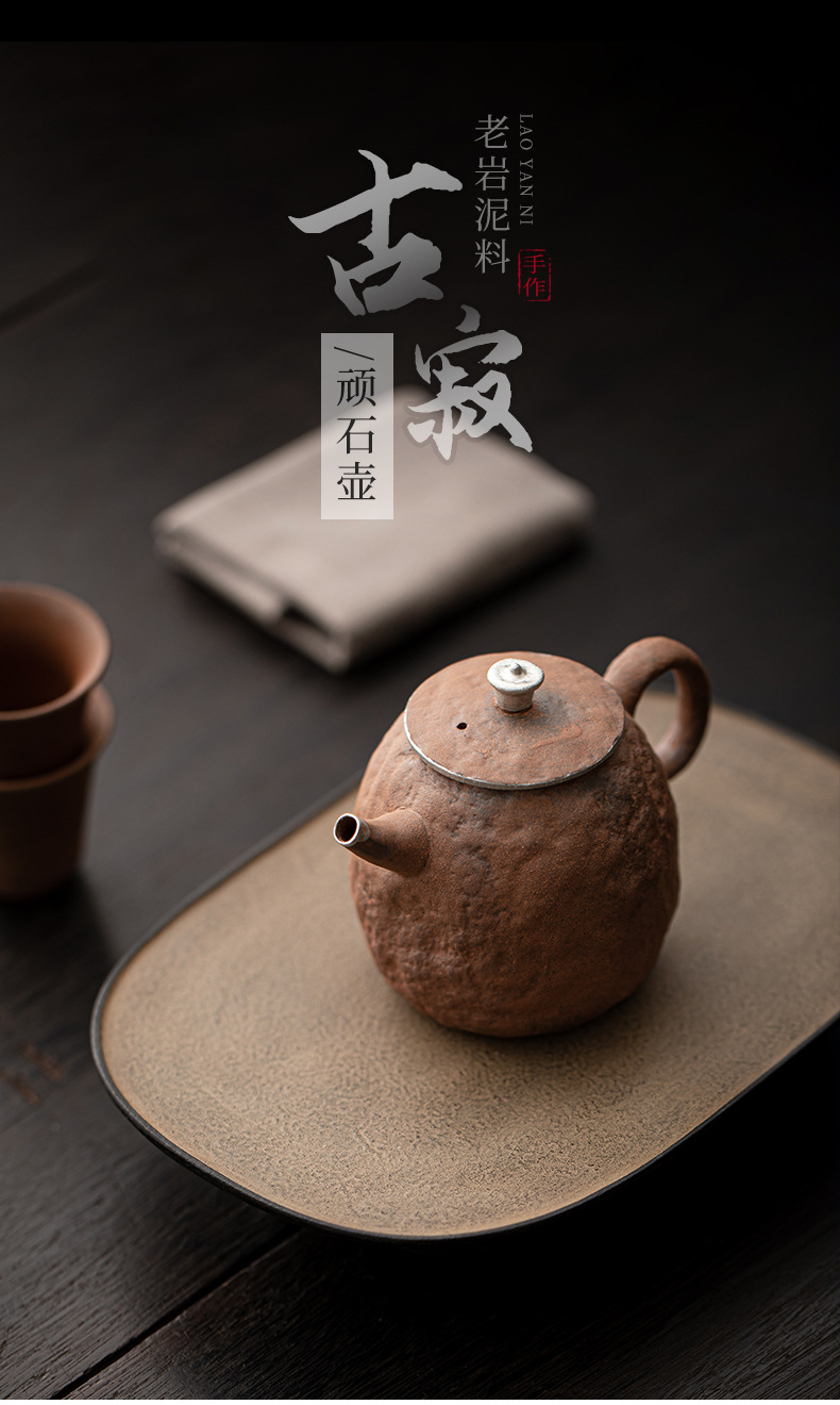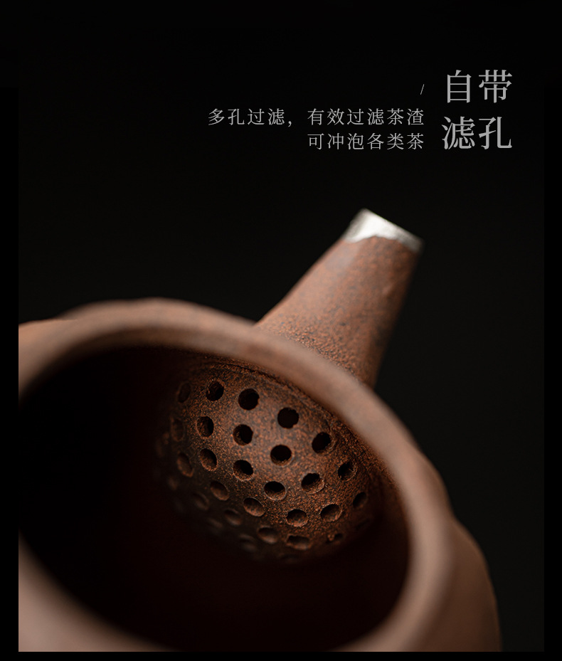 - Ấm đun nước bằng đá bùn đá cũ trống rỗng, ấm trà gốm thô mạ bạc thủ công bằng gốm, ấm đơn, ấm pha trà lọc lỗ bóng