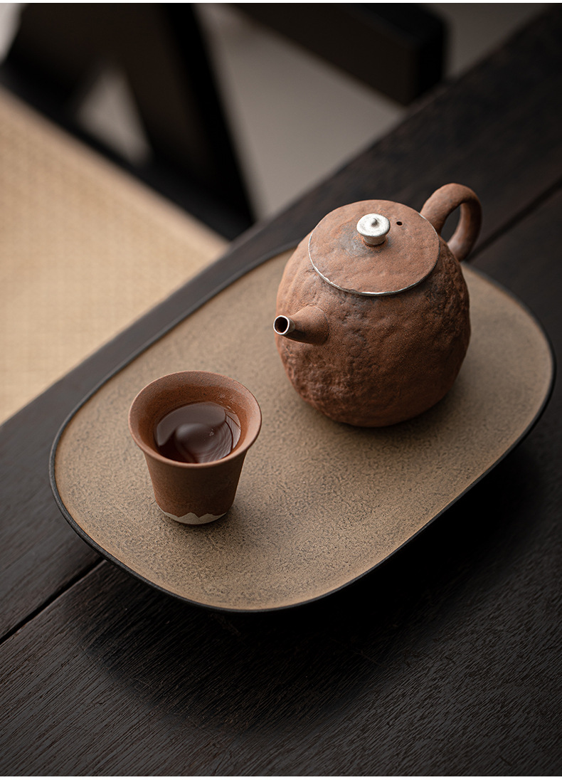 Ấm đun nước bằng đá bùn đá cũ trống rỗng, ấm trà gốm thô mạ bạc thủ công bằng gốm, ấm đơn, ấm pha trà lọc lỗ bóng