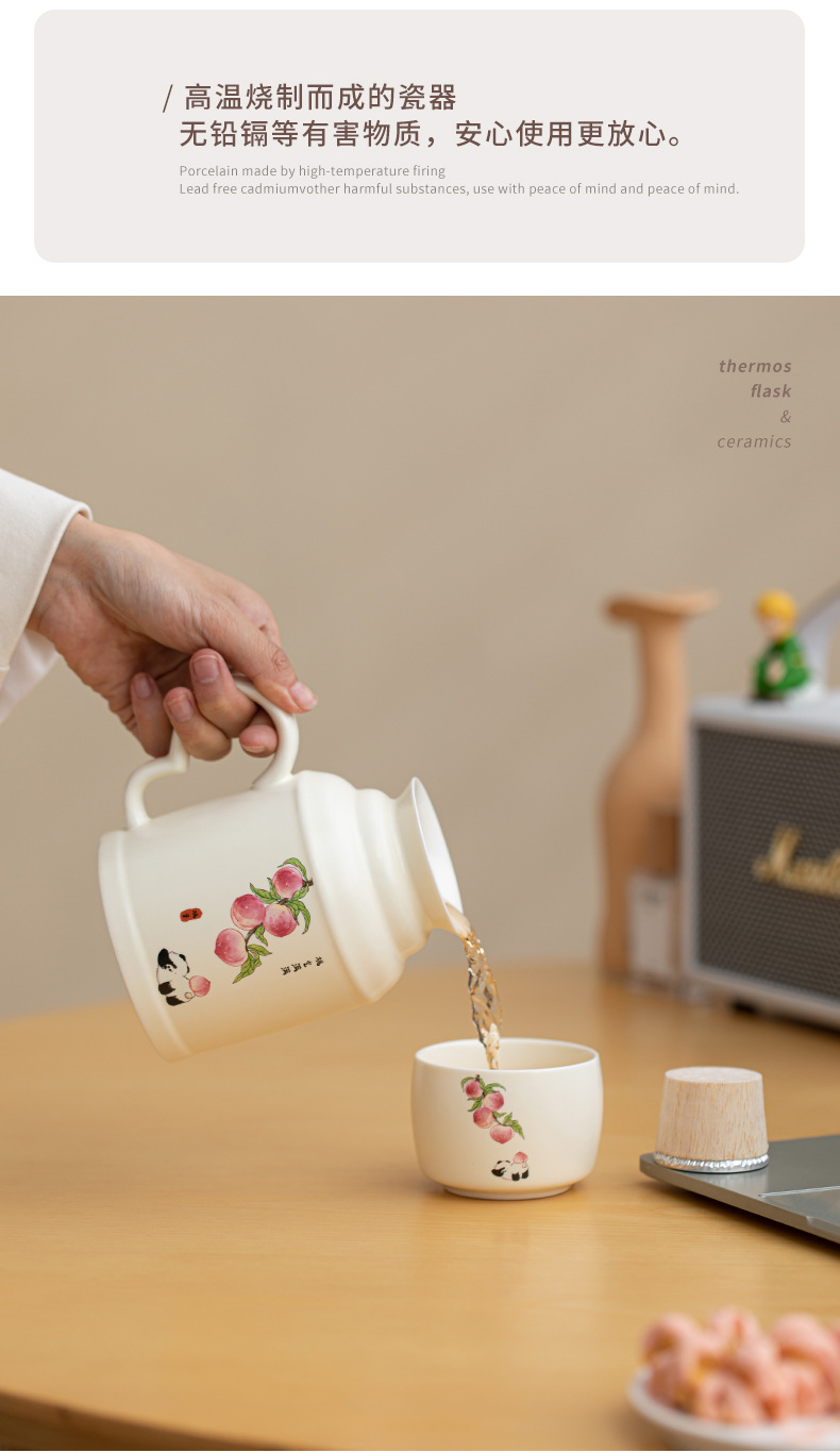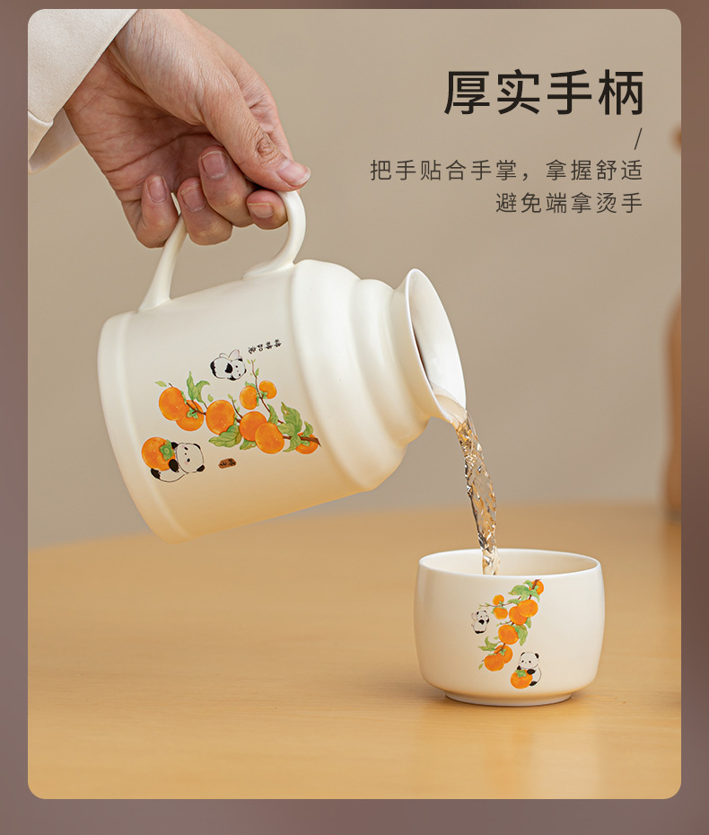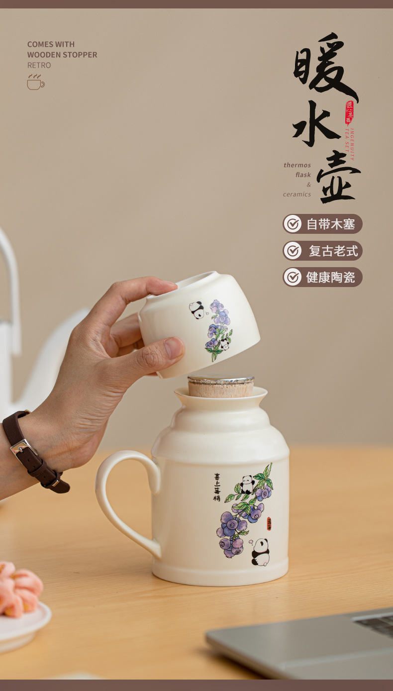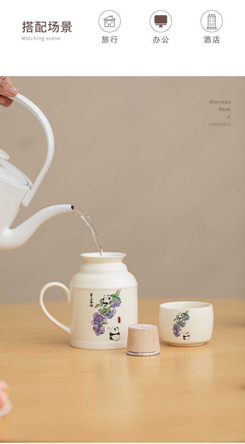 - Ấm đun nước bằng gốm kiểu Trung Quốc dùng trong gia đình, ấm đun nước nhỏ cầm tay dành cho một người, thiết kế cổ điển Trung Quốc với tách trà để pha trà.