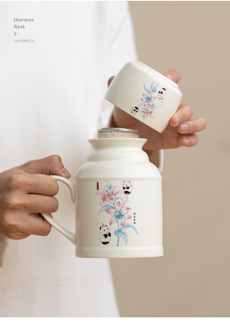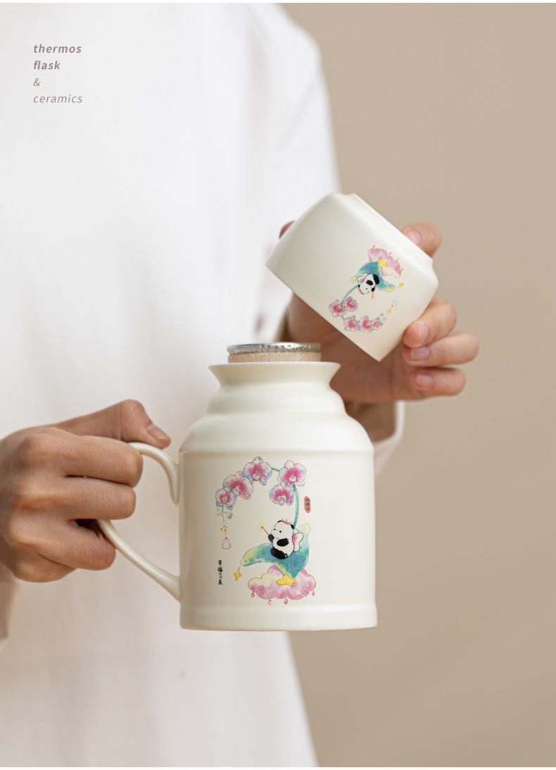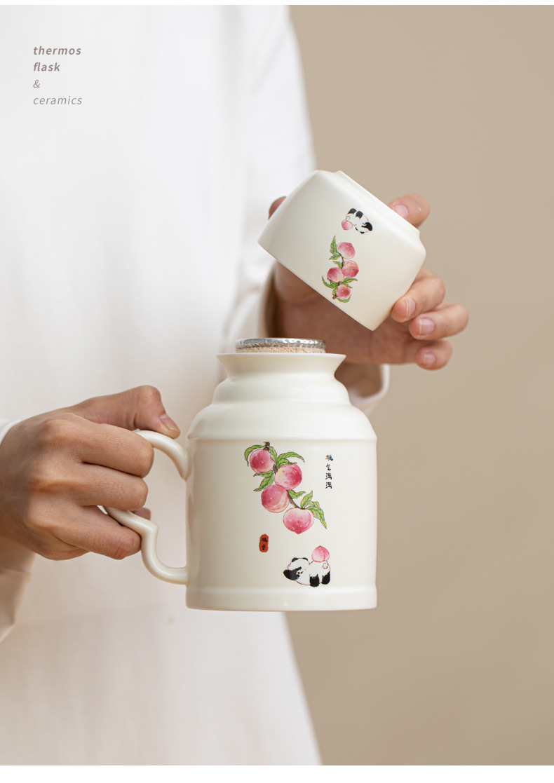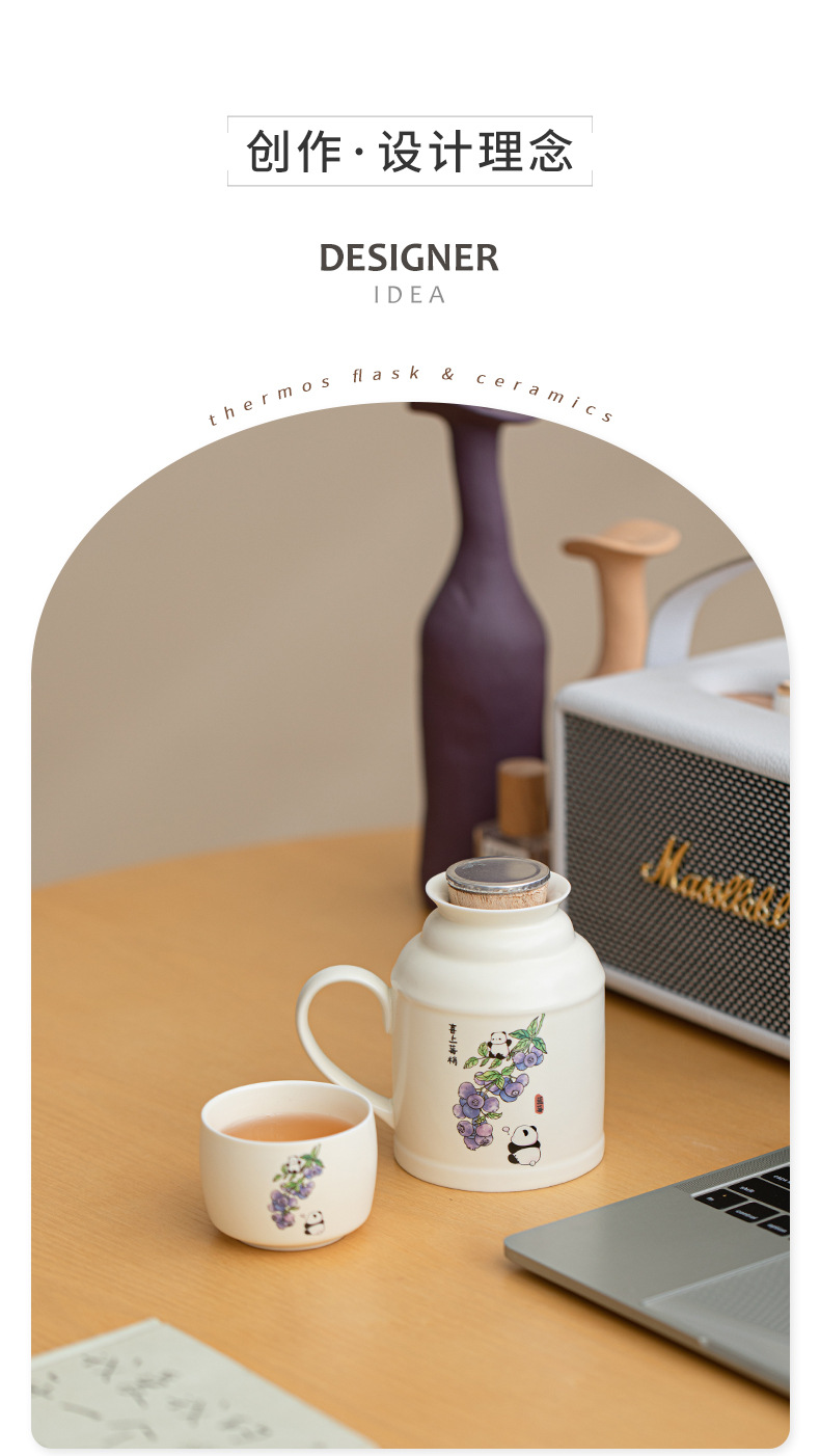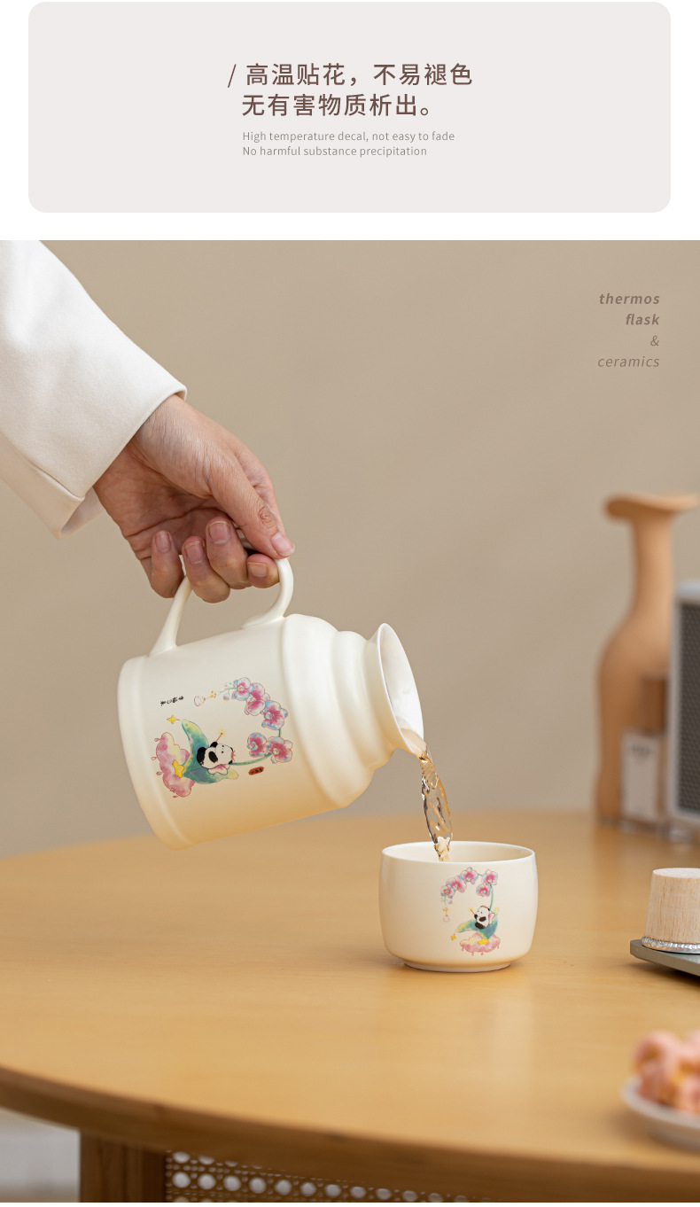 - Ấm đun nước bằng gốm kiểu Trung Quốc dùng trong gia đình, ấm đun nước nhỏ cầm tay dành cho một người, thiết kế cổ điển Trung Quốc với tách trà để pha trà.