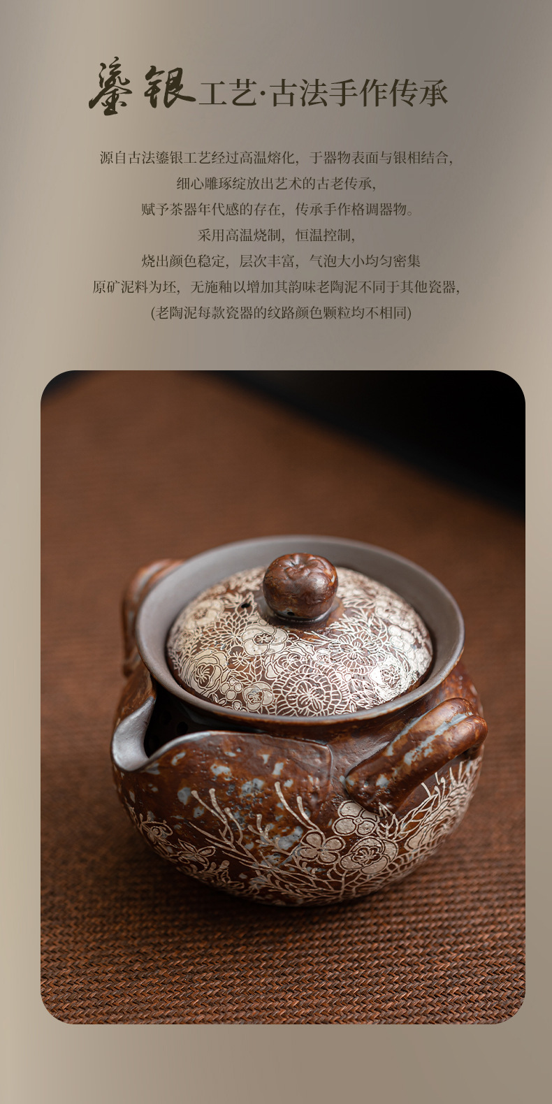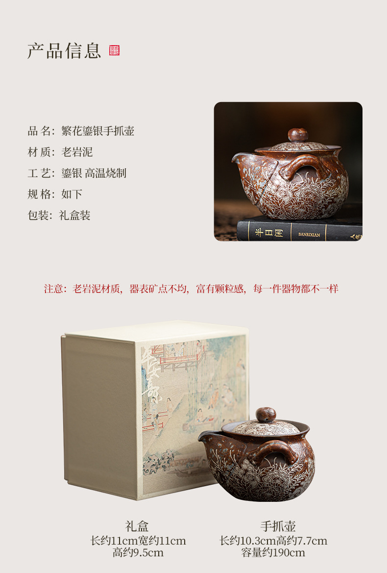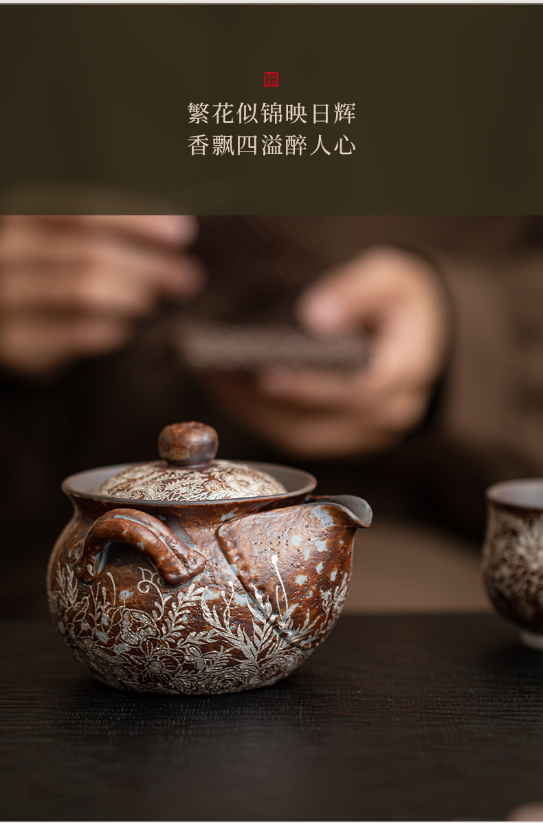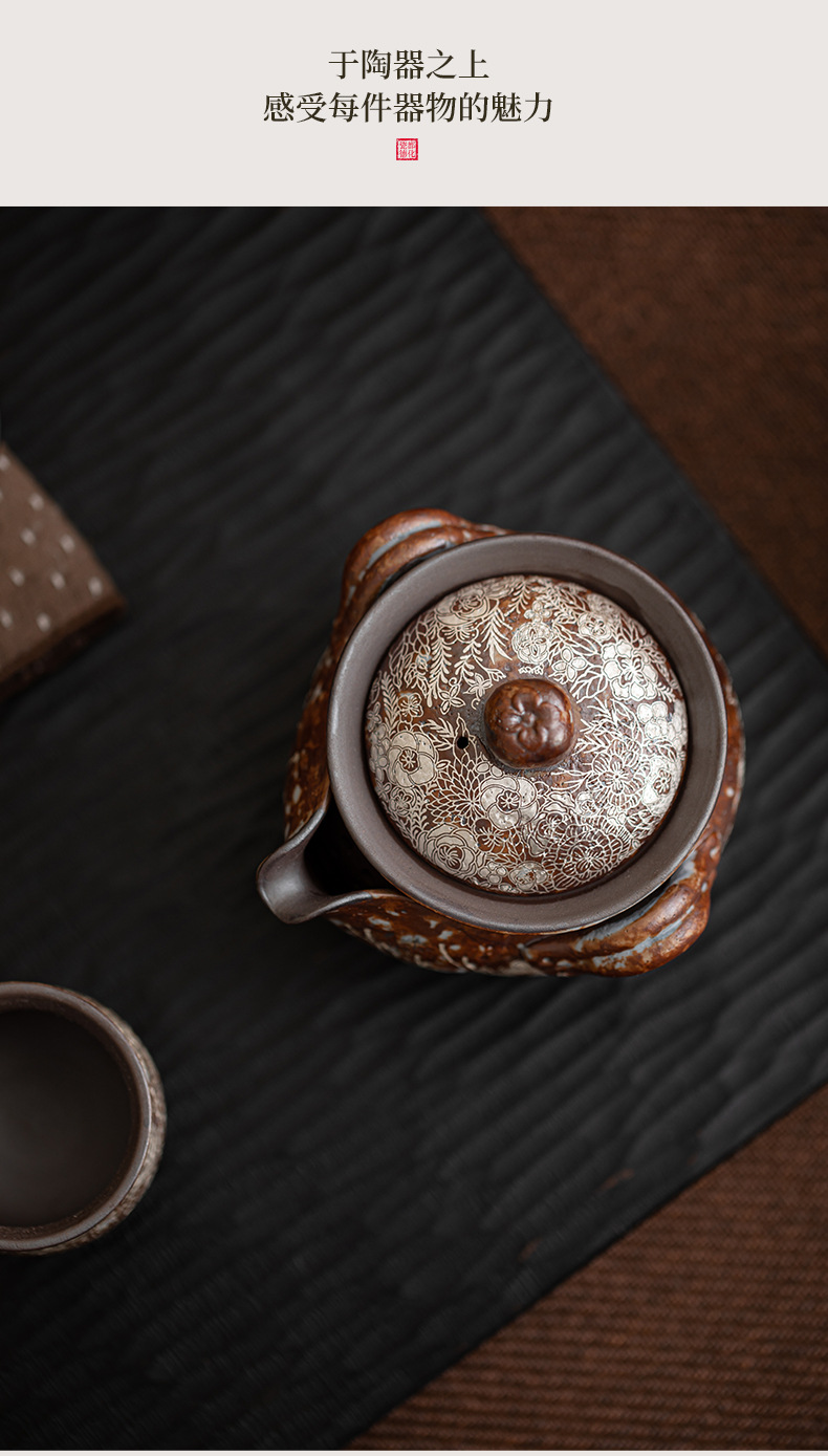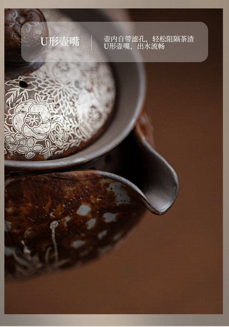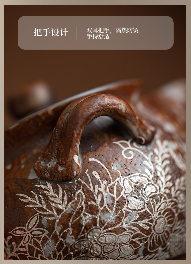 - Ấm đun nước cầm tay bằng bạc mạ hoa, ấm pha trà Kung Fu bằng đất sét đá cũ, ấm pha trà, bình kho báu, bát có nắp chống bỏng