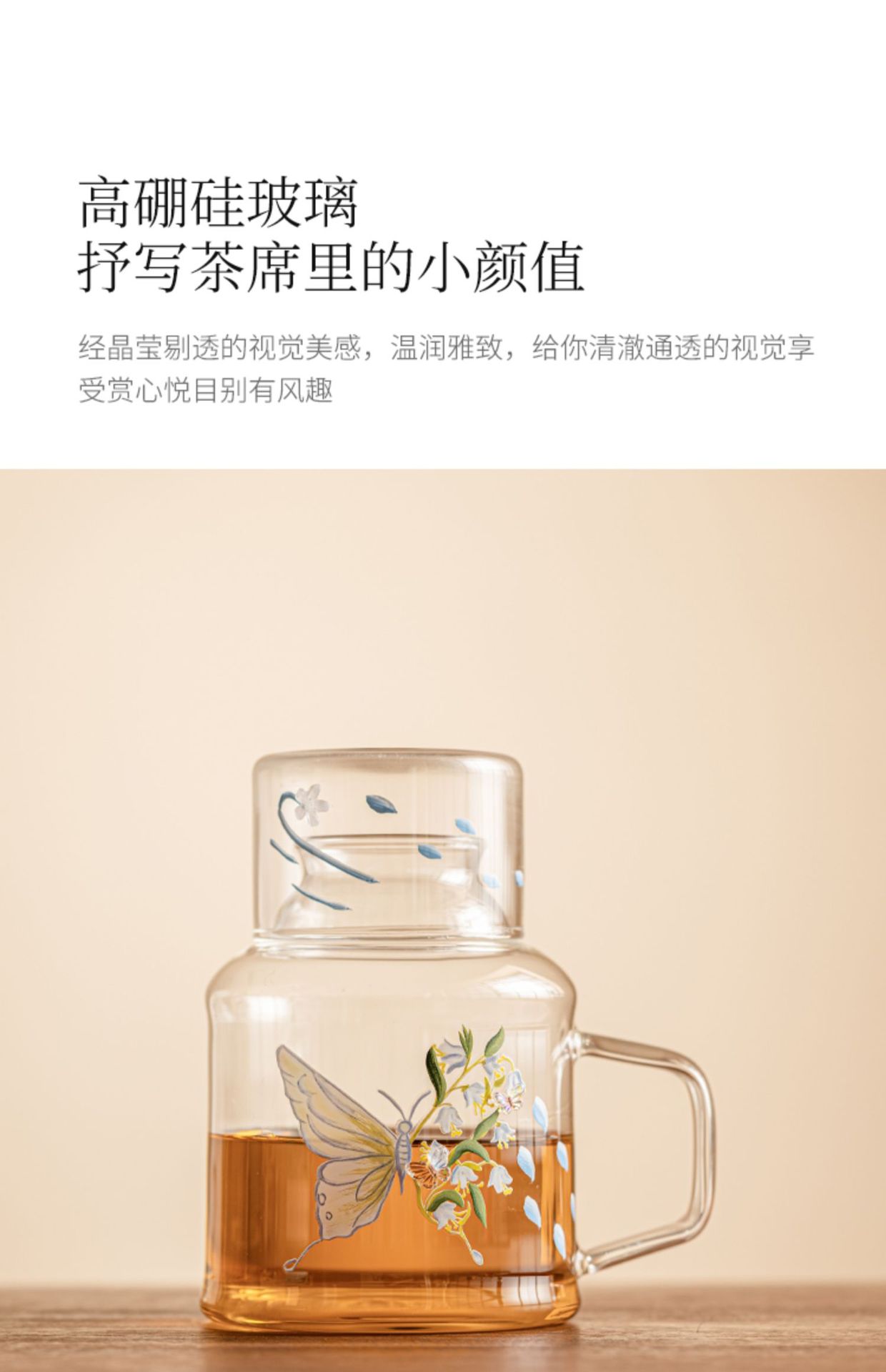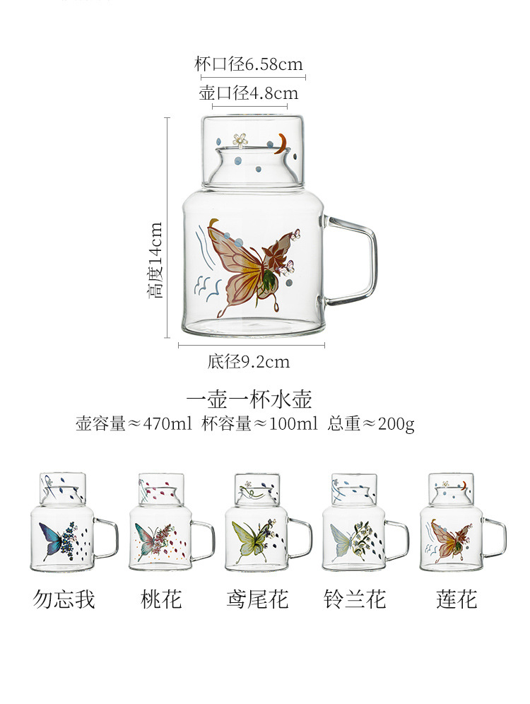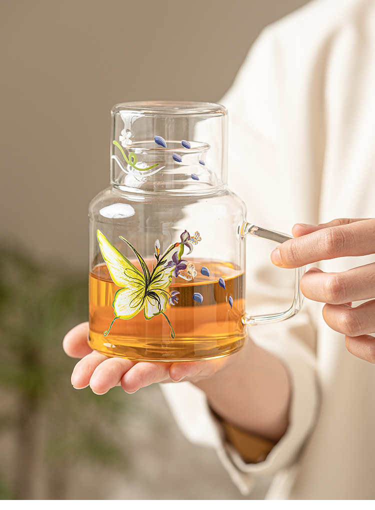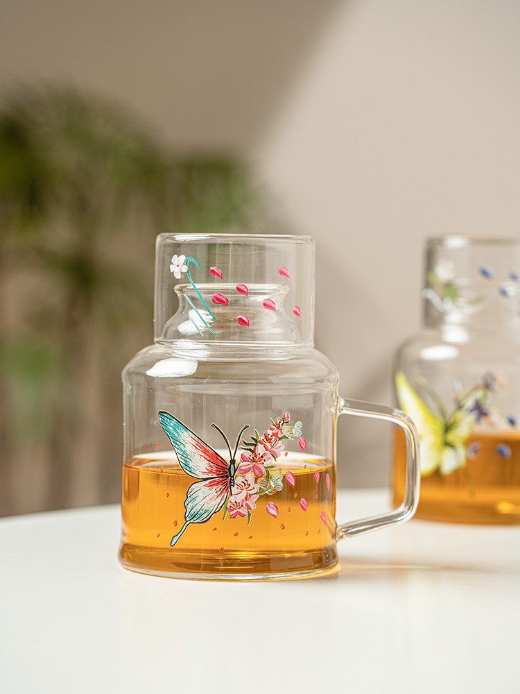 - Ấm đun nước lạnh hoa bướm ấm trà lạnh thủy tinh chịu nhiệt cao ấm trà trái cây đồ uống dung tích lớn bộ ấm trà hoa có giá trị cao