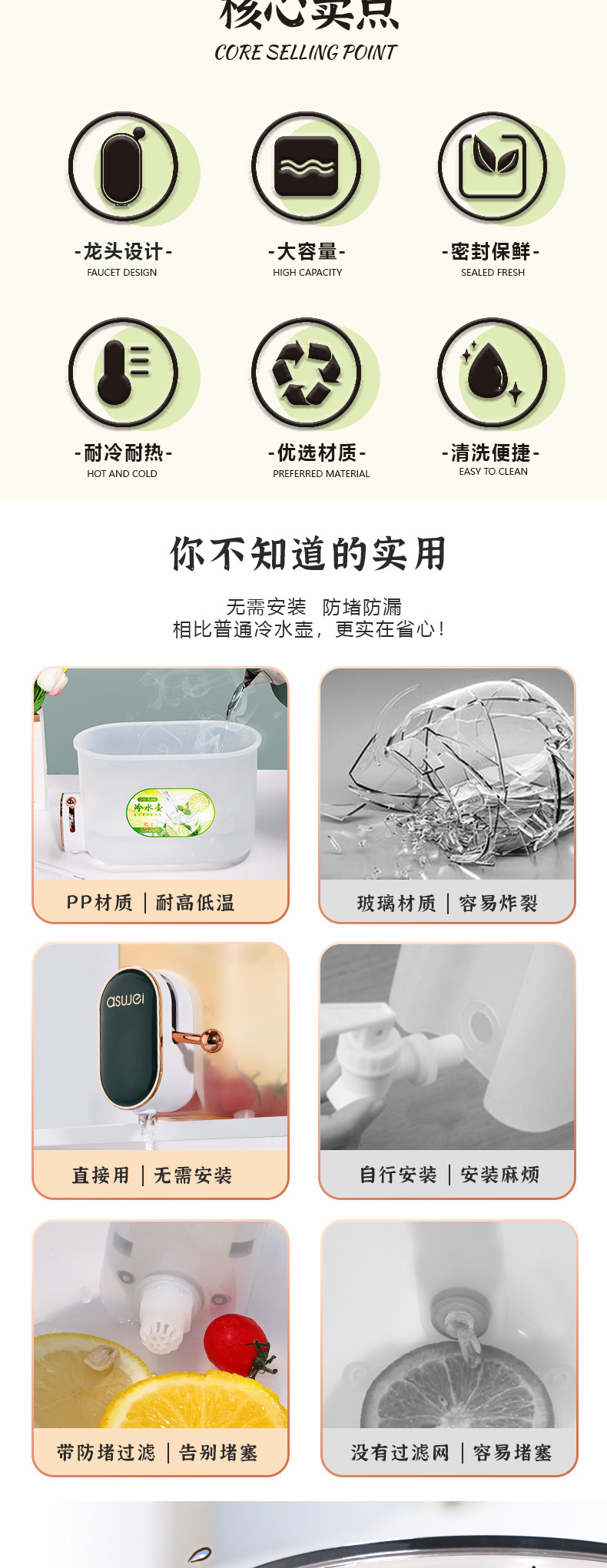 Ấm đun nước lạnh hot trên mạng, trà trái cây mùa hè cấp thực phẩm, trà chanh, đồ uống trái cây, có thể để trong tủ lạnh, xô nhựa gia dụng