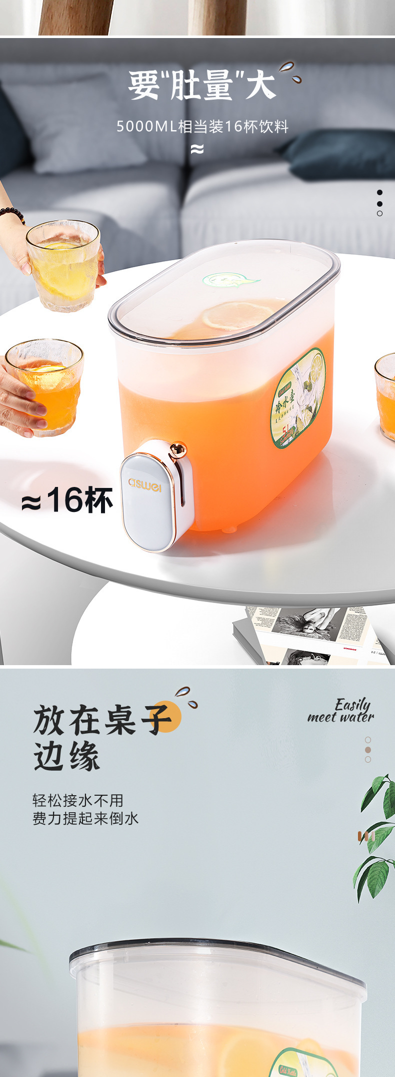 - Ấm đun nước lạnh hot trên mạng, trà trái cây mùa hè cấp thực phẩm, trà chanh, đồ uống trái cây, có thể để trong tủ lạnh, xô nhựa gia dụng