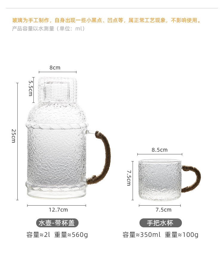 - Ấm đun nước lạnh thủy tinh chịu nhiệt độ cao, bình nước trái cây dung tích lớn gia dụng, Bộ ấm đun nước ấm đun nước trắng mát