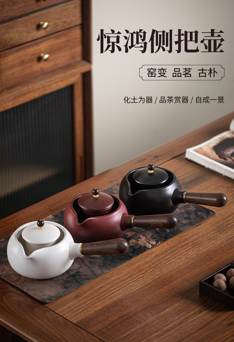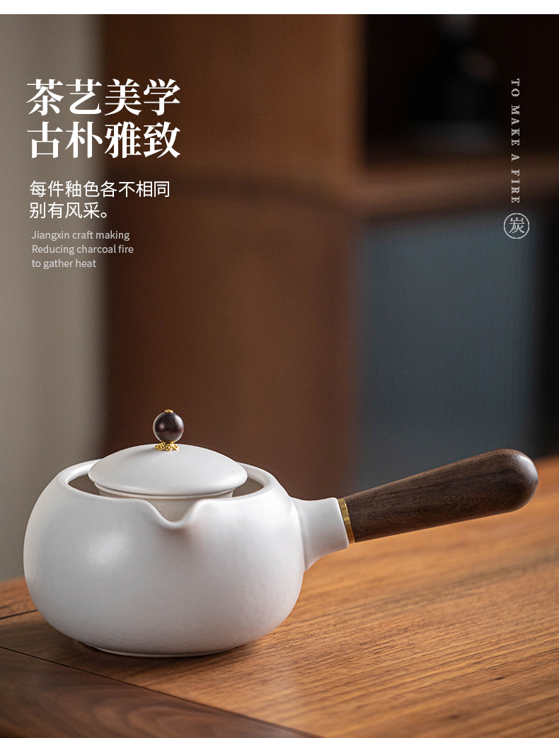 - Ấm đun trà bên hông Jinghong ấm pha trà ấm pha trà ấm pha trà gốm sứ bên hông gỗ rắn cổ điển ấm đun nước lớn