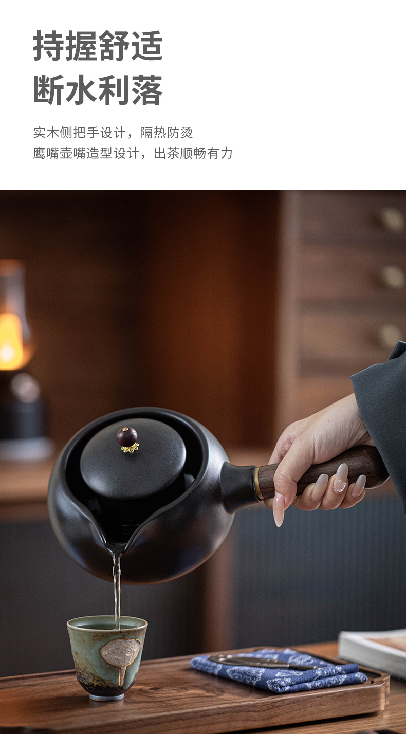 Ấm đun trà bên hông Jinghong ấm pha trà ấm pha trà ấm pha trà gốm sứ bên hông gỗ rắn cổ điển ấm đun nước lớn