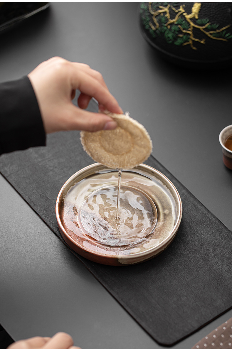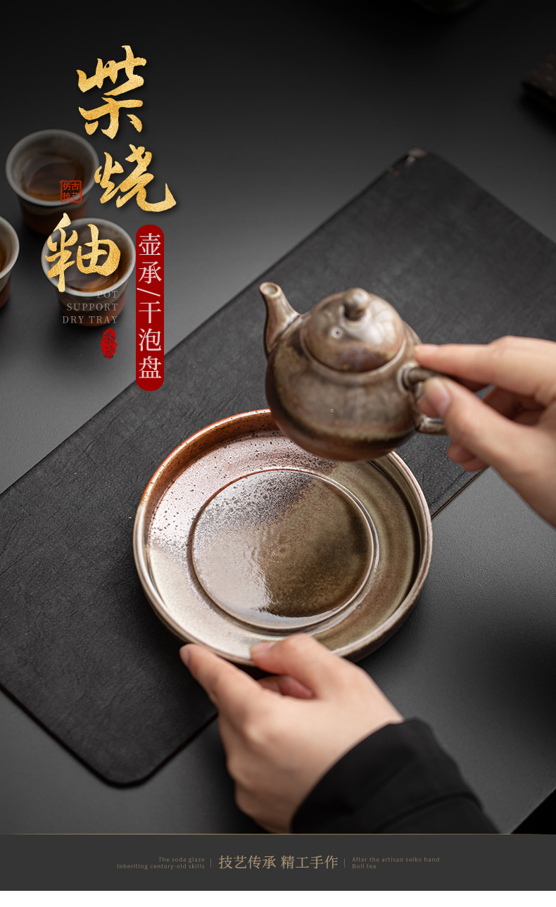 Ấm gia dụng bằng gốm sứ, khay xốp khô tráng men nung củi, khay đựng ấm, khay đựng nước, bộ trà kungfu cổ điển, phụ kiện trà đạo