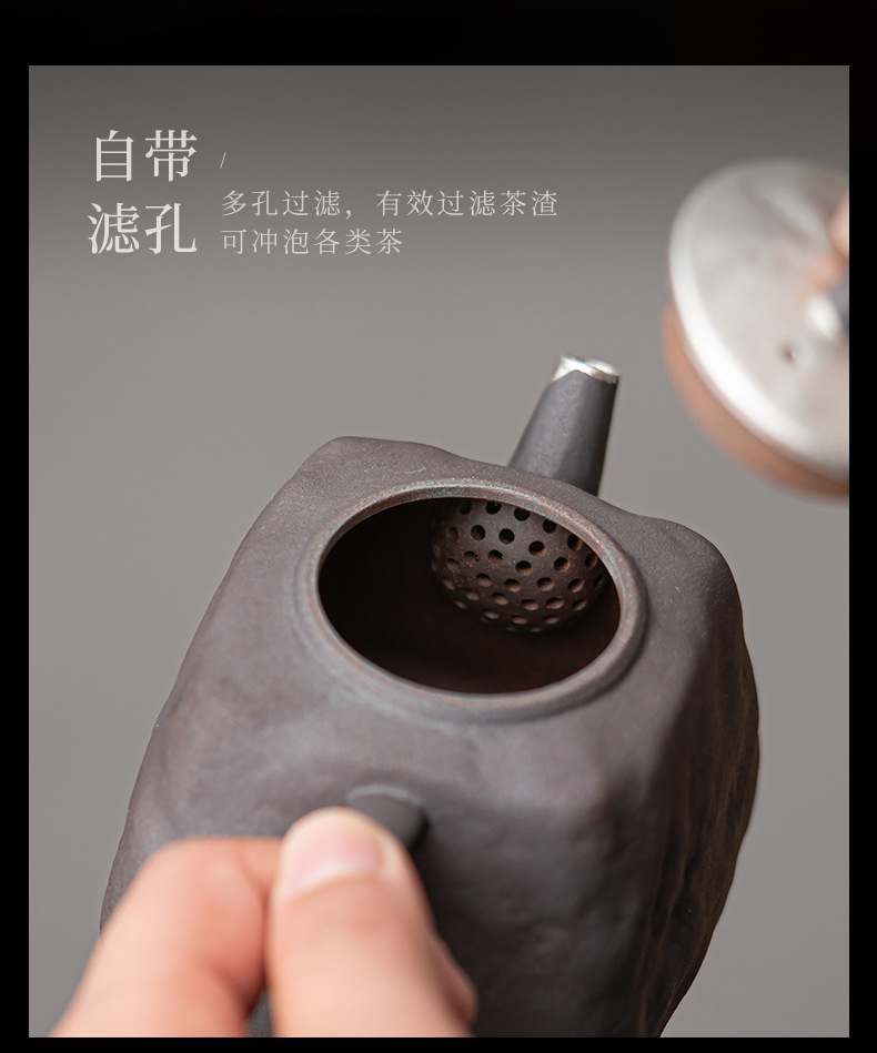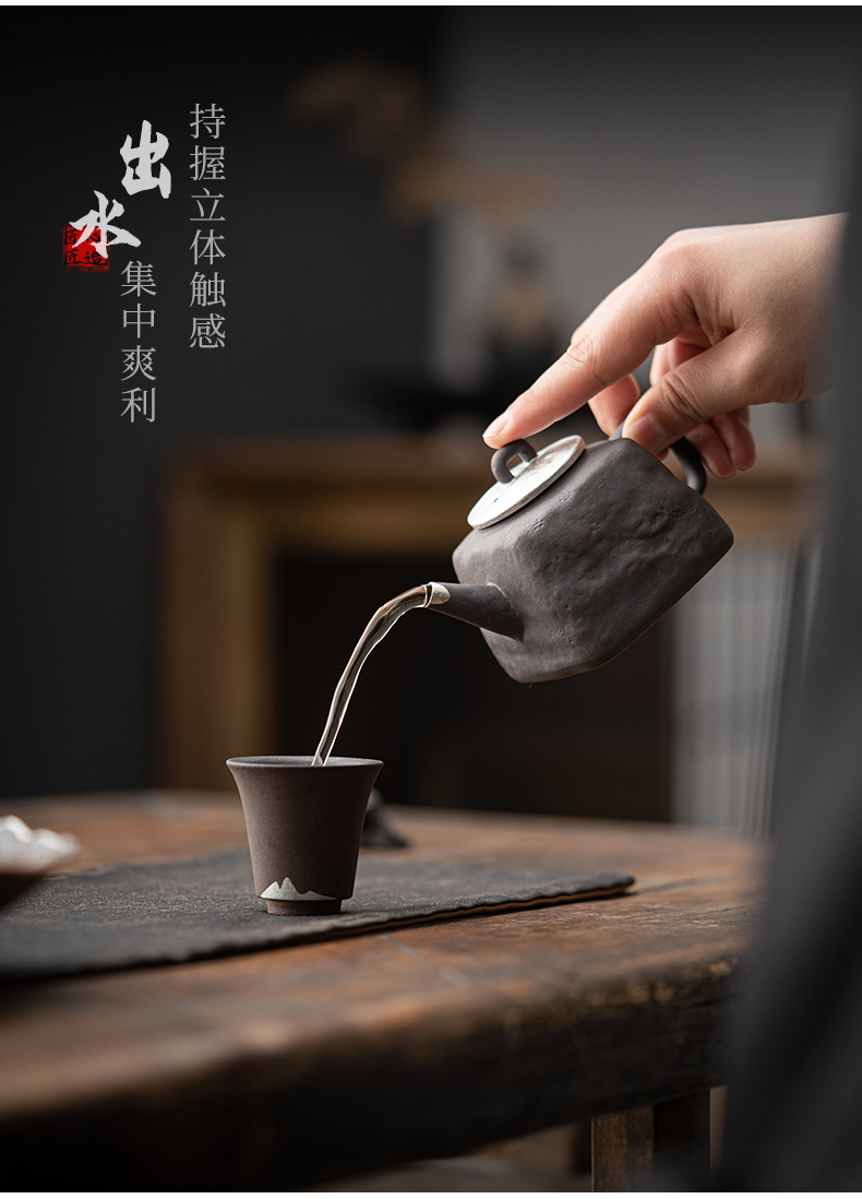 Ấm Hán Trung bùn đá lâu đời, ấm trà cổ điển, ấm trà Nhật Bản gia dụng, ấm trà đơn có thể nâng cao, ấm trà cao cấp