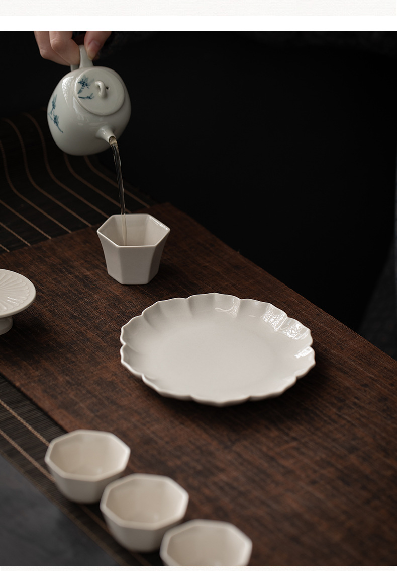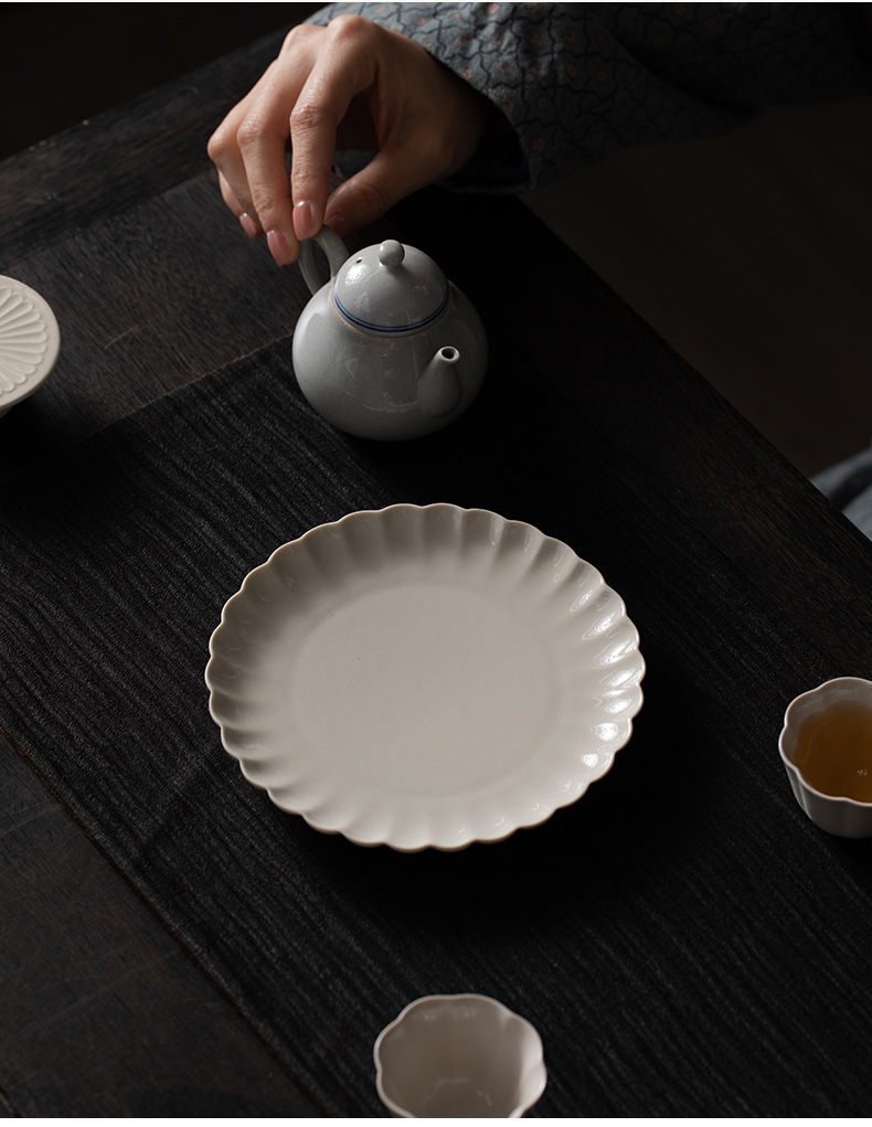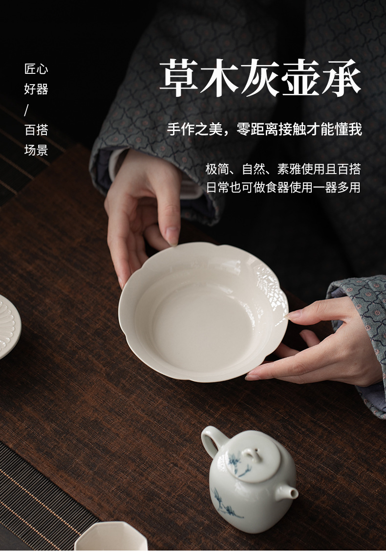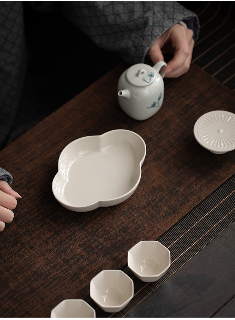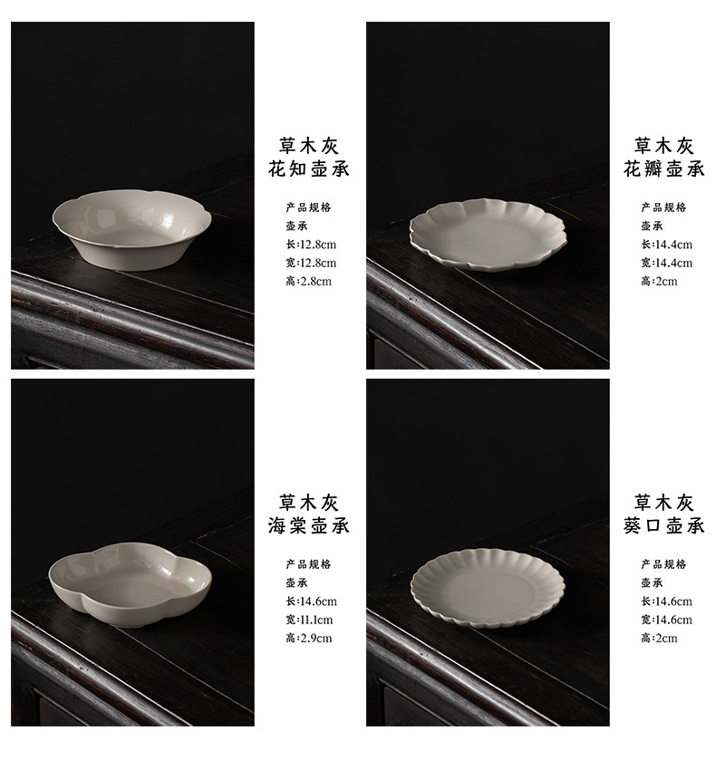 - Ấm khay pha khô gốm sứ xám thực vật kiểu Trung Quốc, bộ trà Kung Fu cổ điển gia dụng, khay giải trí thu hải đường, khay trà
