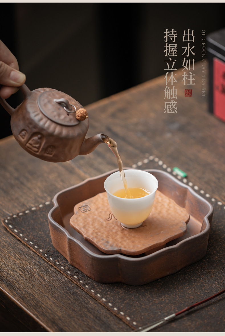 Ấm mây tốt lành bùn đá cũ, ấm chén gốm sứ cổ điển, ấm chén, đệm ấm, bàn trà nhỏ trữ nước, khay pha khô, dụng cụ trà Kung Fu