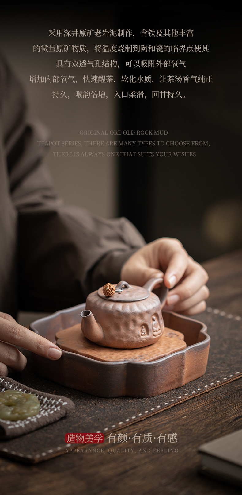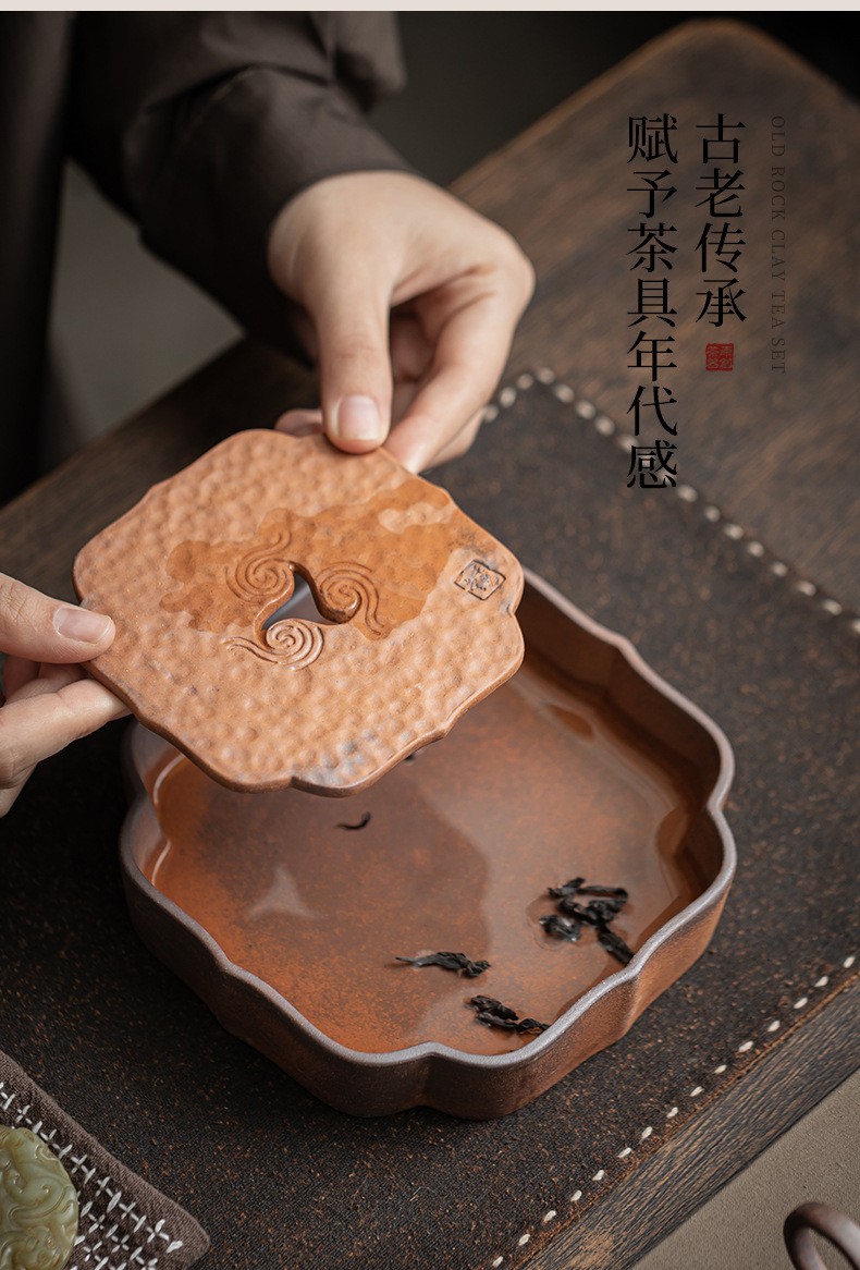 - Ấm mây tốt lành bùn đá cũ, ấm chén gốm sứ cổ điển, ấm chén, đệm ấm, bàn trà nhỏ trữ nước, khay pha khô, dụng cụ trà Kung Fu