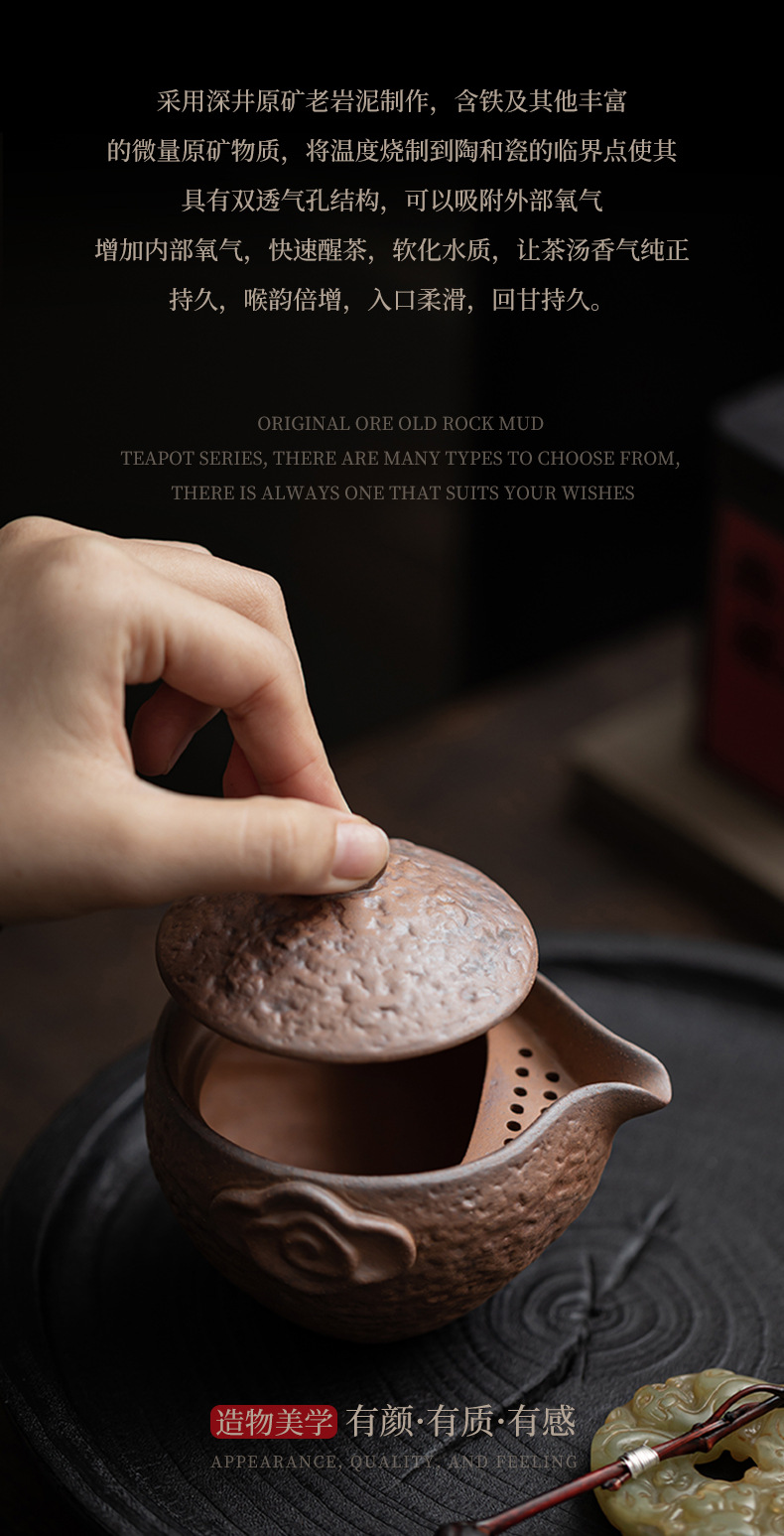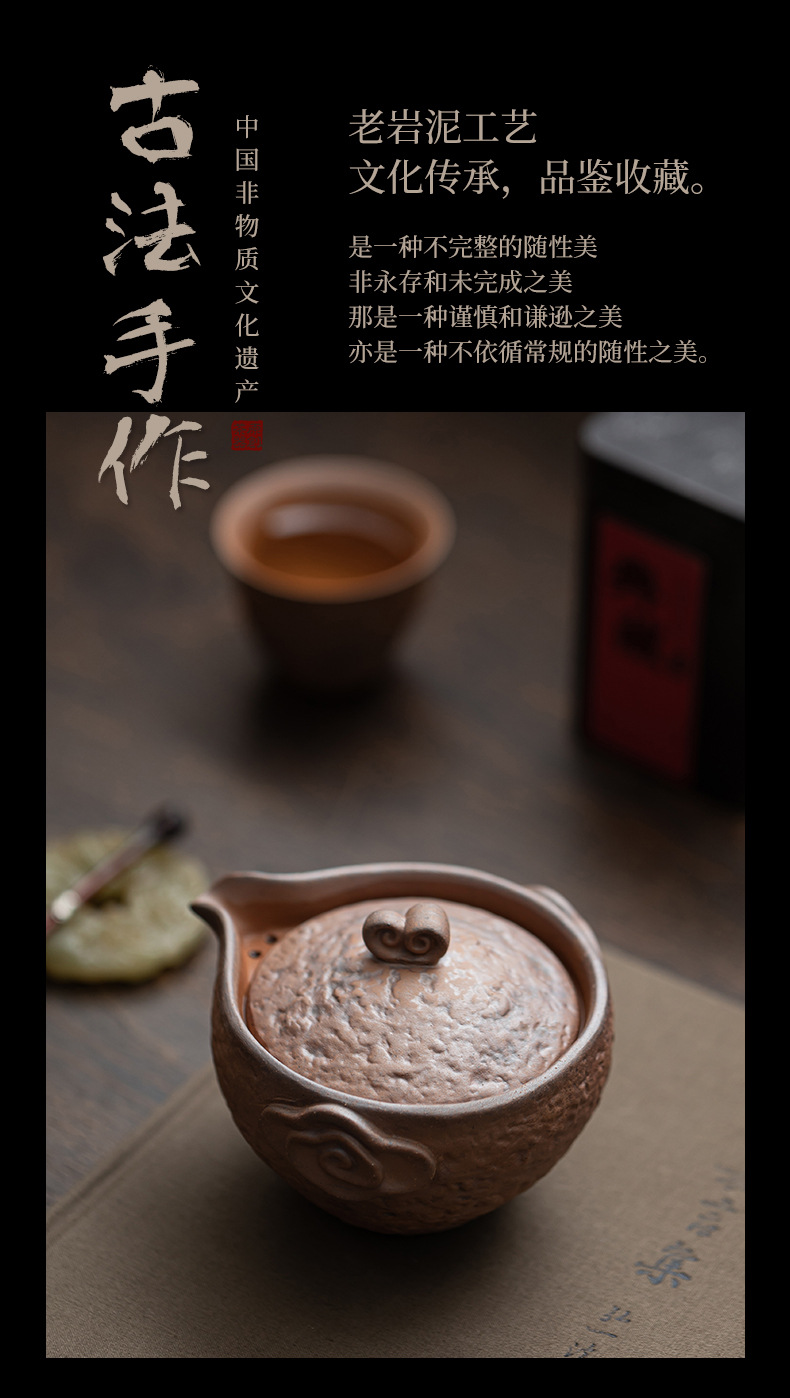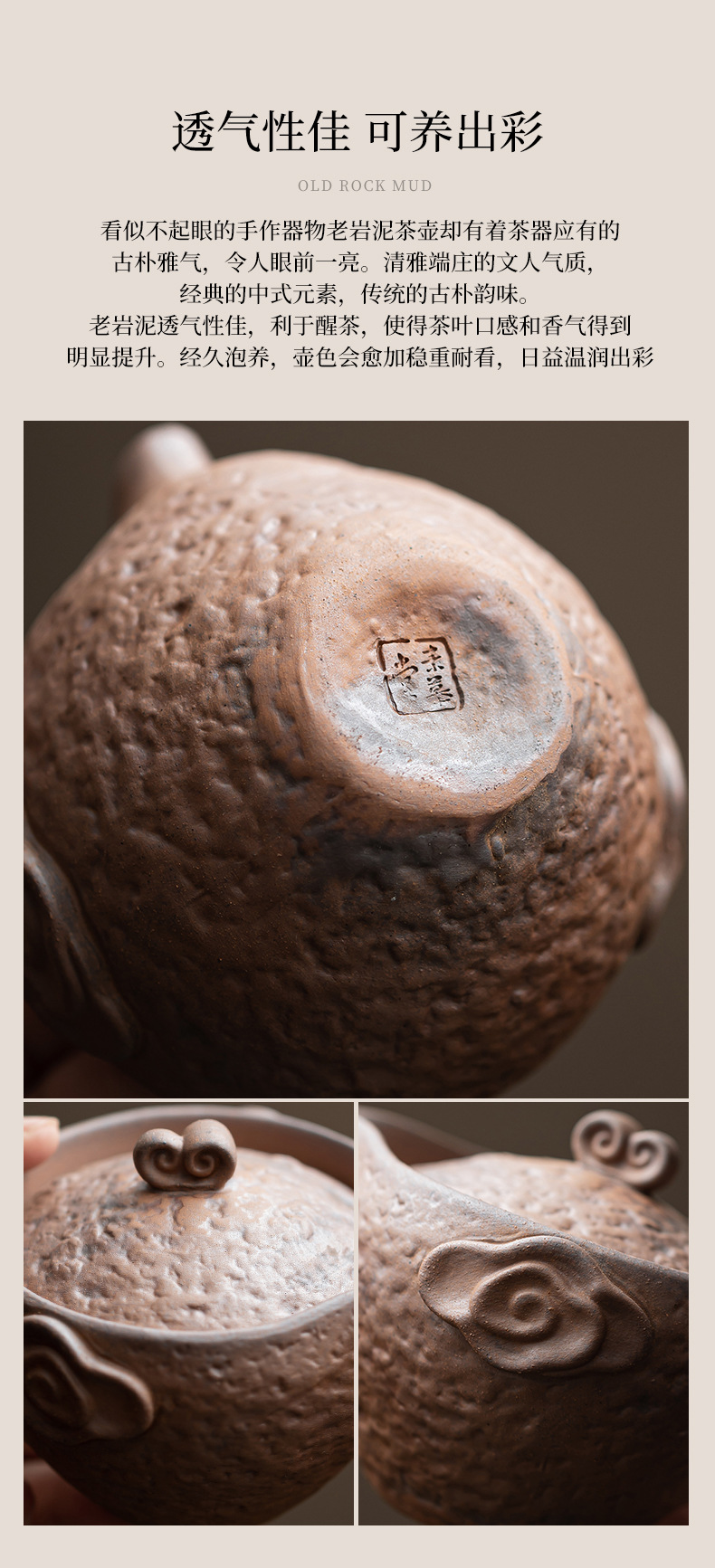- Ấm nắm tay Lao Yan Mud Xiangyun Bộ trà Kung Fu cổ điển Ấm pha trà không nóng ấm lọc một ấm chén gốm sứ thủ công