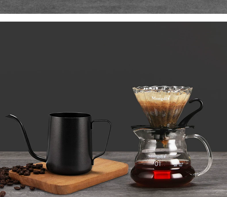 Ấm pha cà phê dùng trong gia đình, ấm pha cà phê bằng thép không gỉ, ấm có vòi hẹp, cốc lọc cà phê, ấm có vòi dài.