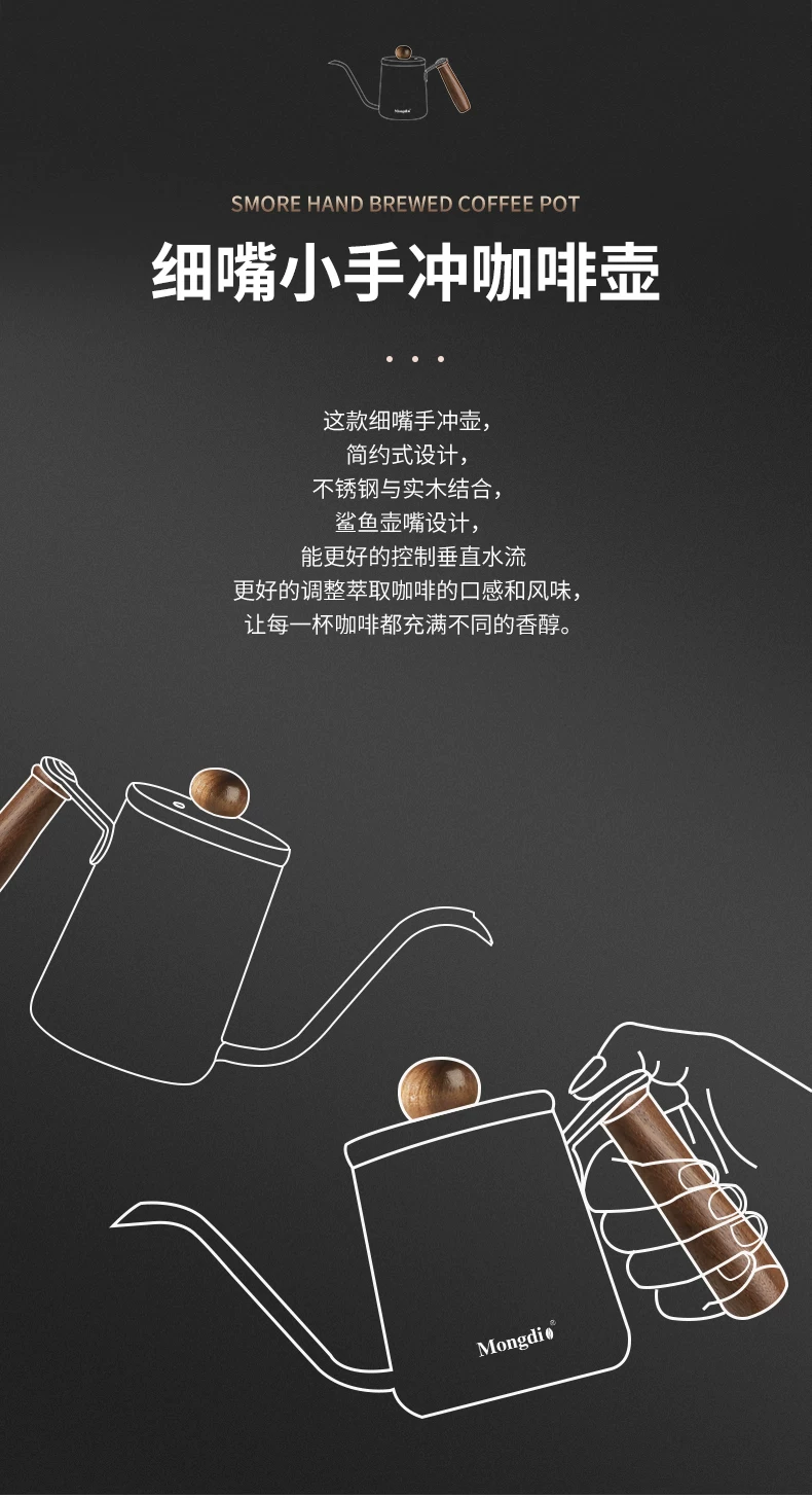 Ấm pha cà phê kiểu Mongdio, ấm pha cà phê kiểu pour-over, ấm cổ ngỗng, ấm inox vòi dài miệng hẹp, ấm pha cà phê