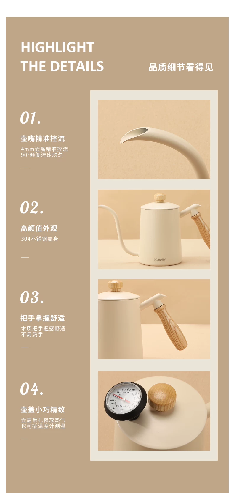 Ấm pha cà phê kiểu Pour-over, ấm pha cà phê kiểu Pour-over, ấm pha cà phê kiểu nhỏ giọt, ấm cổ ngỗng bằng thép không gỉ 304, ấm có vòi dài