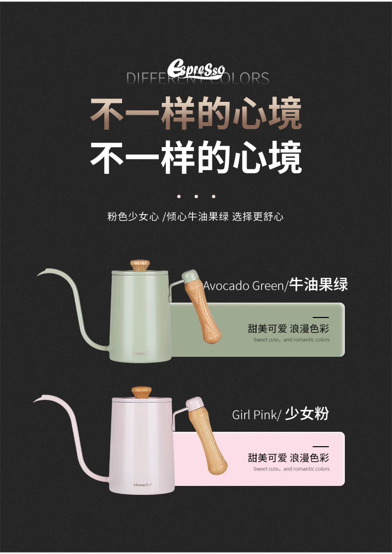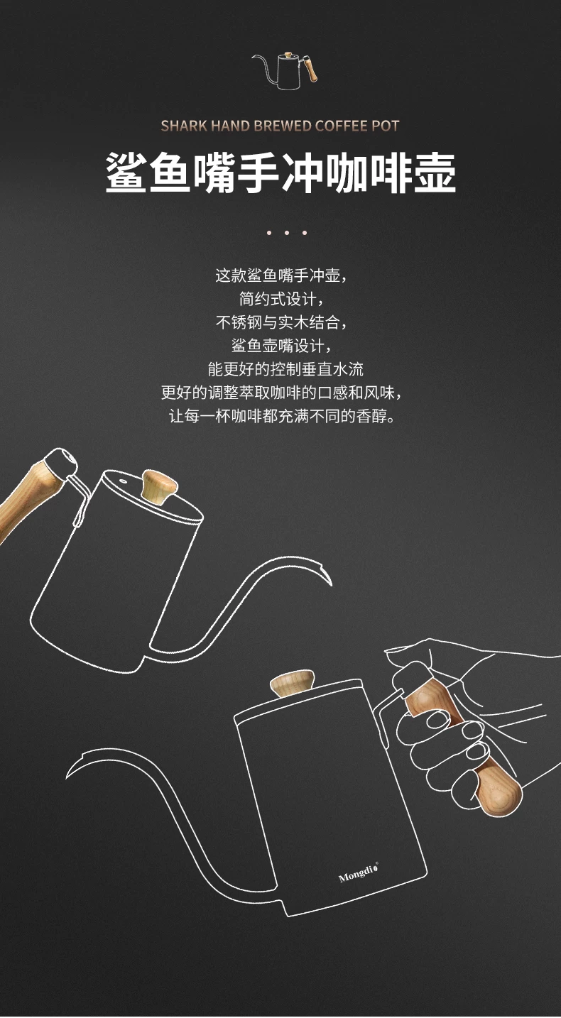 Ấm pha cà phê Mongdio có vòi dài, ấm pha cà phê bằng thép không gỉ, ấm có vòi hẹp dùng trong gia đình.