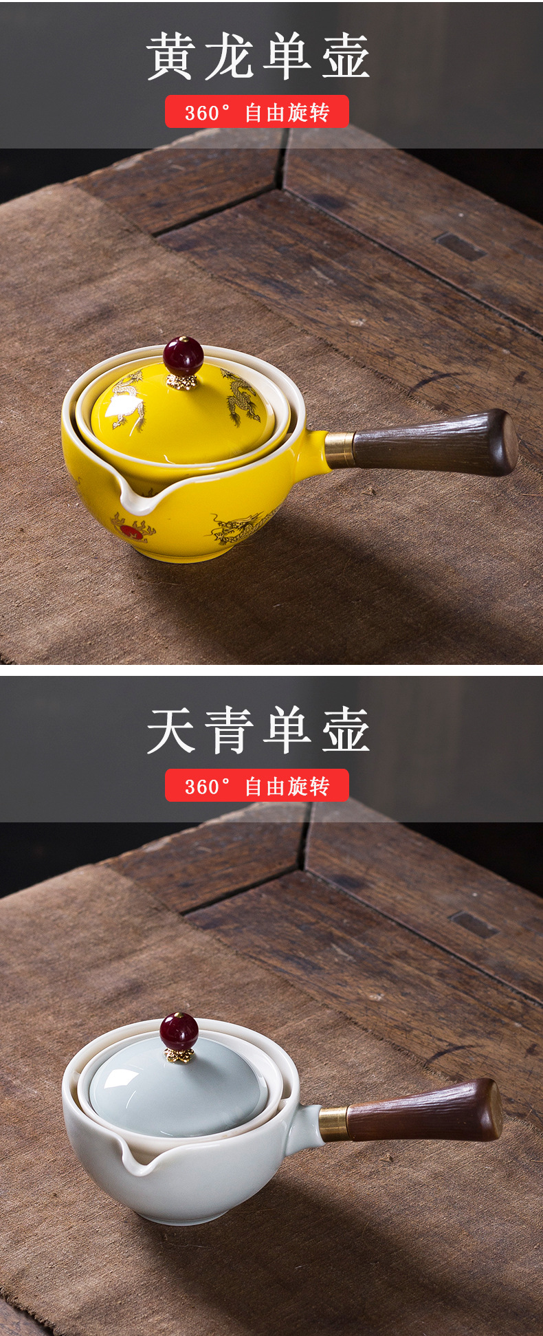 - Ấm pha trà gốm sứ Kung Fu bộ dụng cụ pha trà cho người lười tự động nhỏ dụng cụ pha trà gia dụng ấm một bên tay cầm văn phòng kiểu Trung Quốc