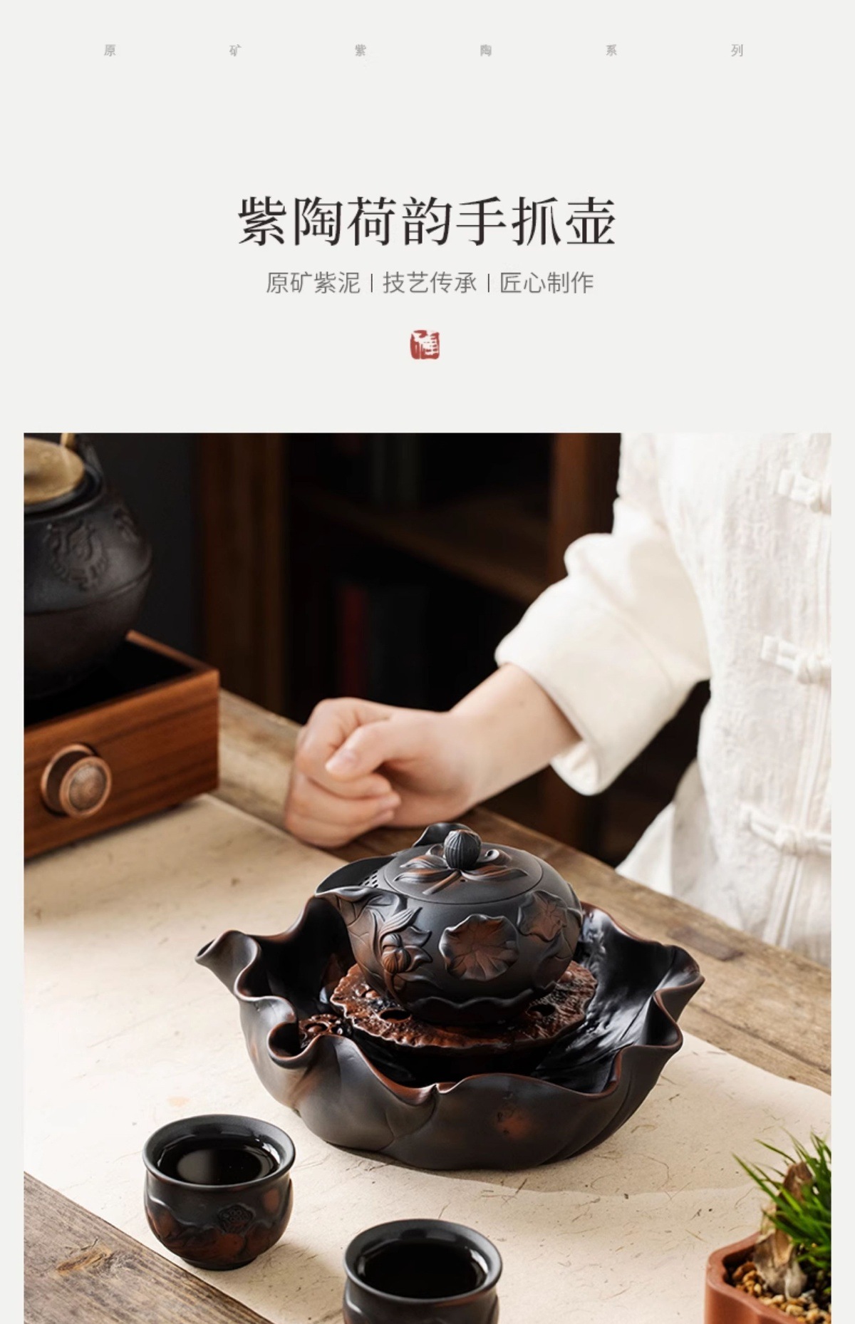 Ấm pha trà gốm tím, ấm một tay cầm, ấm pha trà gốm sứ, ấm pha trà gia dụng không nóng dung tích lớn, dụng cụ pha trà Kung Fu