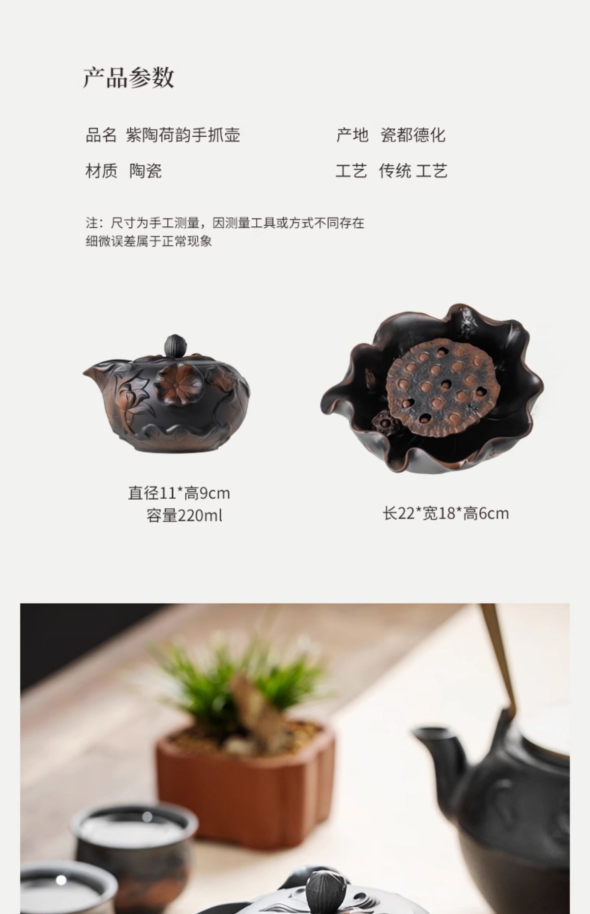- Ấm pha trà gốm tím, ấm một tay cầm, ấm pha trà gốm sứ, ấm pha trà gia dụng không nóng dung tích lớn, dụng cụ pha trà Kung Fu