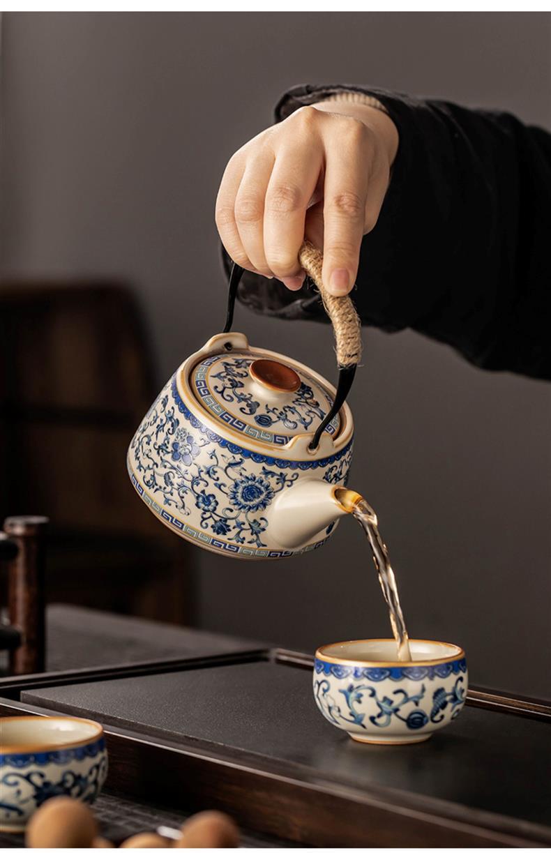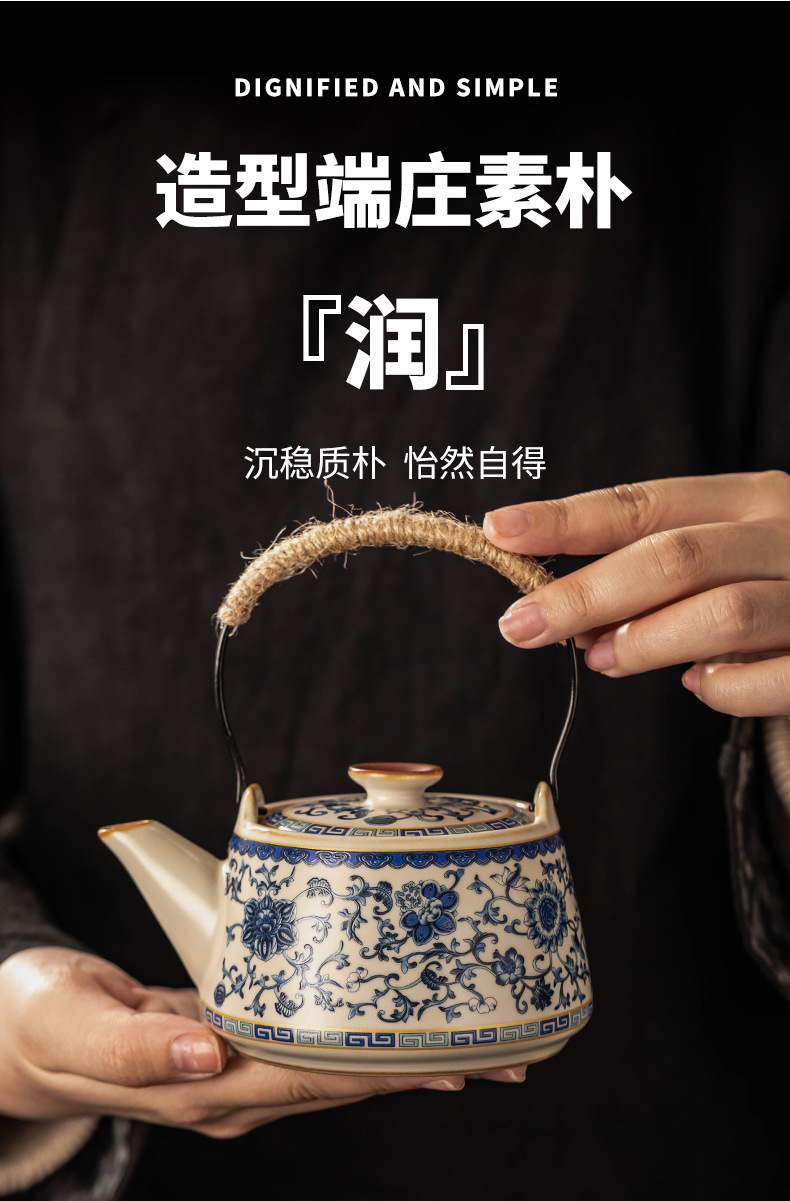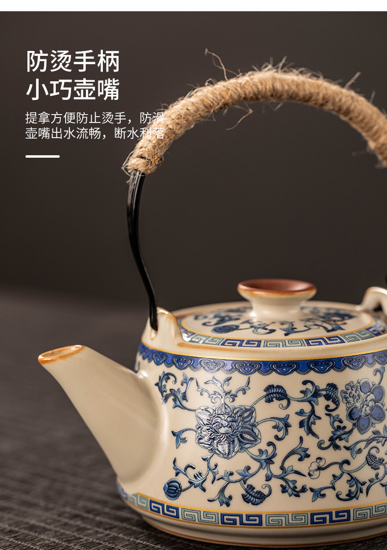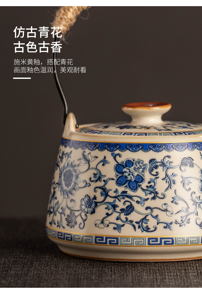 - Ấm pha trà Kung Fu gốm sứ cổ điển màu be xanh và trắng ấm trà văn phòng bộ bán buôn