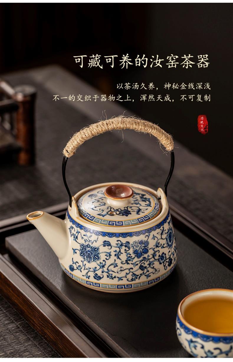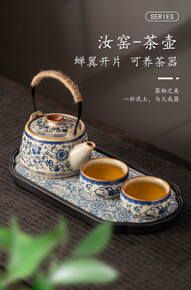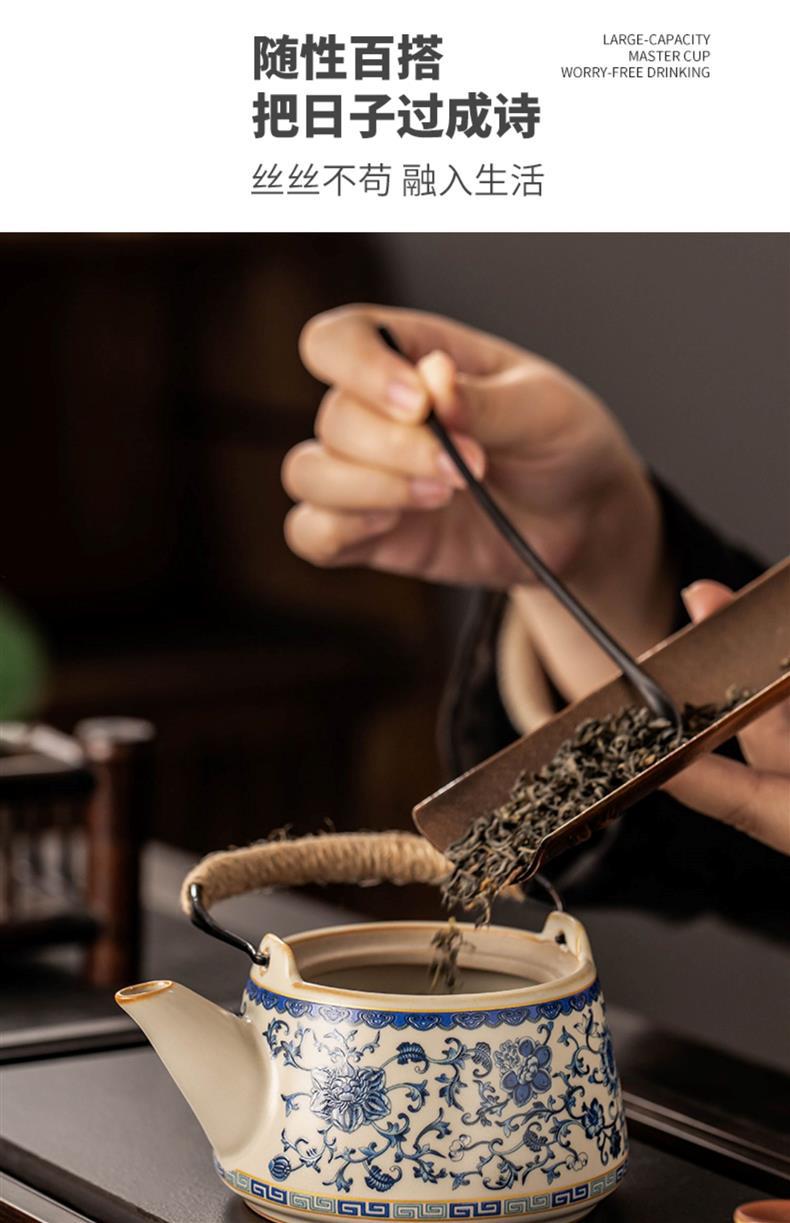 - Ấm pha trà Kung Fu gốm sứ cổ điển màu be xanh và trắng ấm trà văn phòng bộ bán buôn