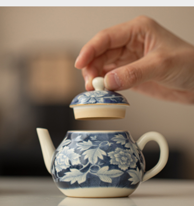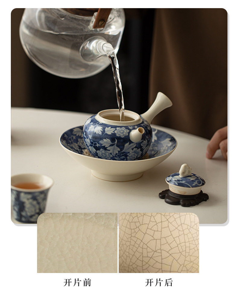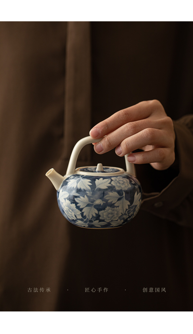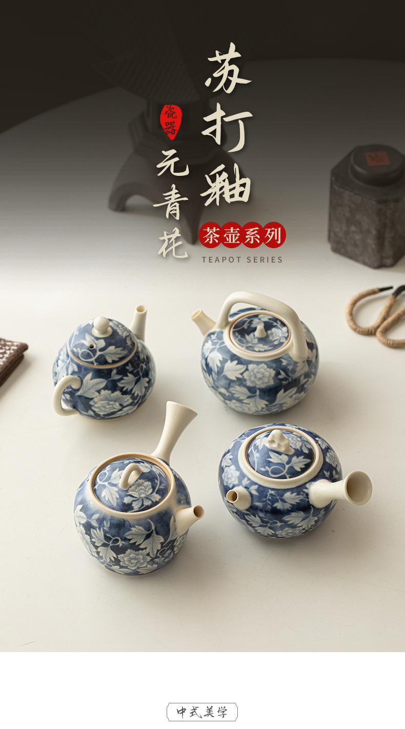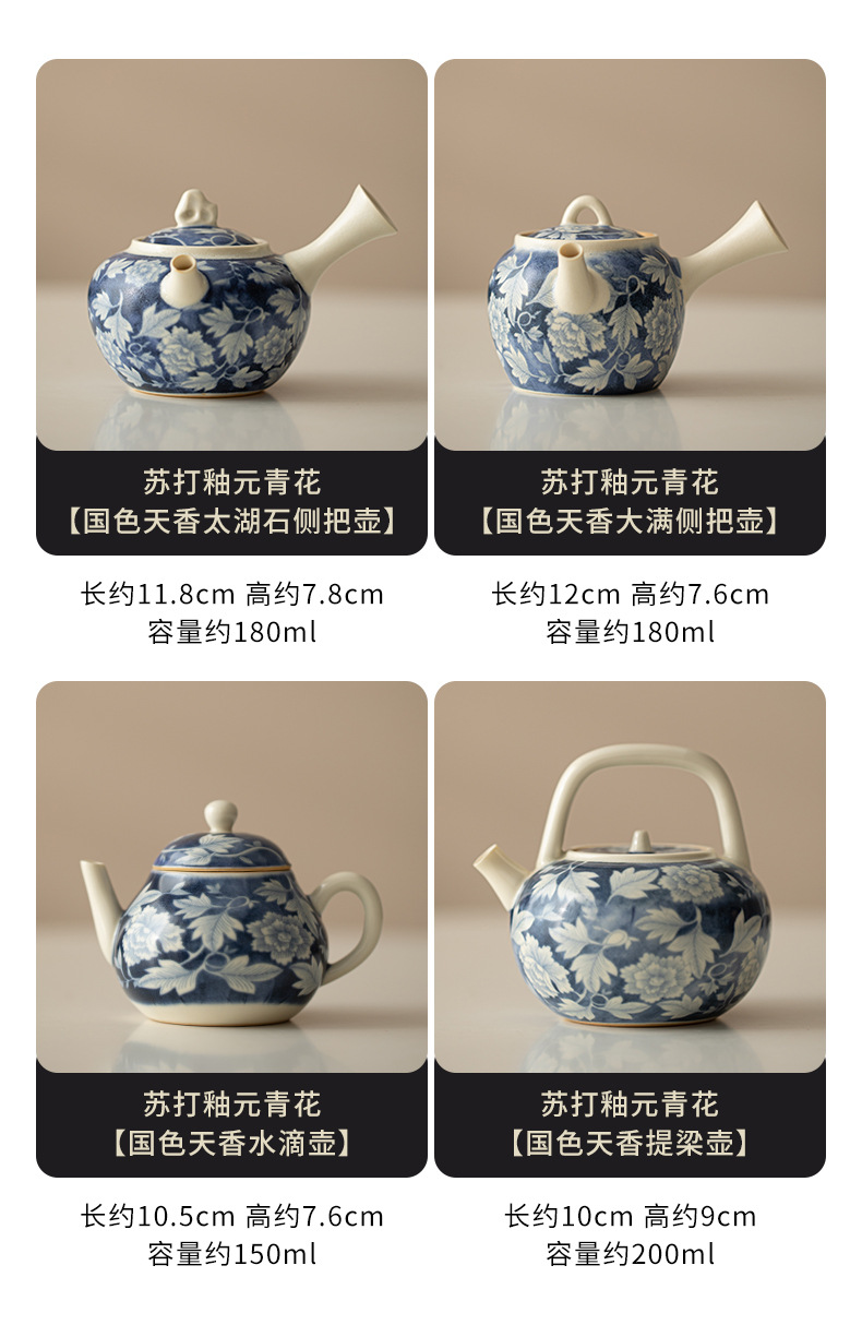 Ấm pha trà màu xanh và trắng tráng men soda, ấm đơn bằng sứ, ấm tay cầm, ấm tay cầm, ấm giọt nước, bộ trà Kung Fu